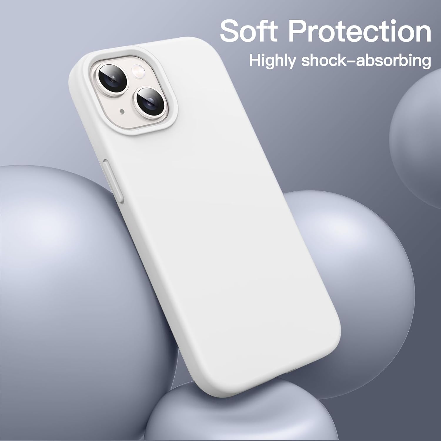 Силиконов калъф JETech за iPhone 14, 6.1 инча, калъф за мобилен телефон с копринено меко покритие, удароустойчив защитен калъф с микрофибърна подплата, бял