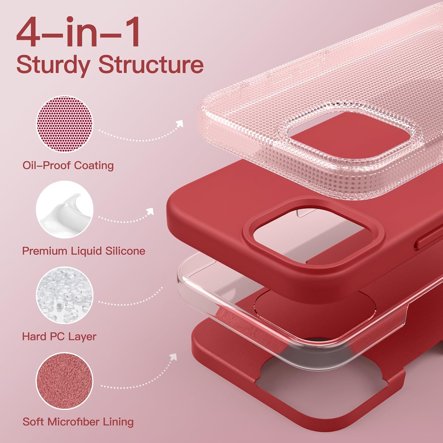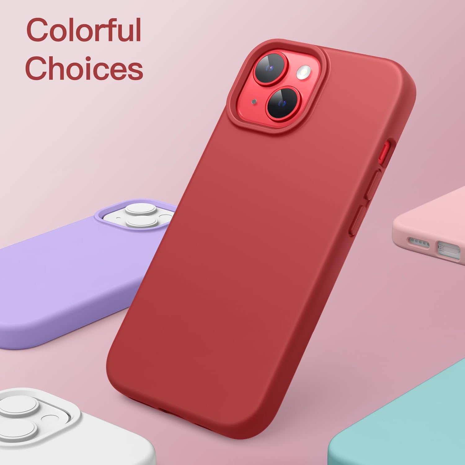 Силиконов калъф JETech за iPhone 14, 6.1 инча, калъф за мобилен телефон с копринено меко покритие, удароустойчив защитен калъф с микрофибърна подплата, червен