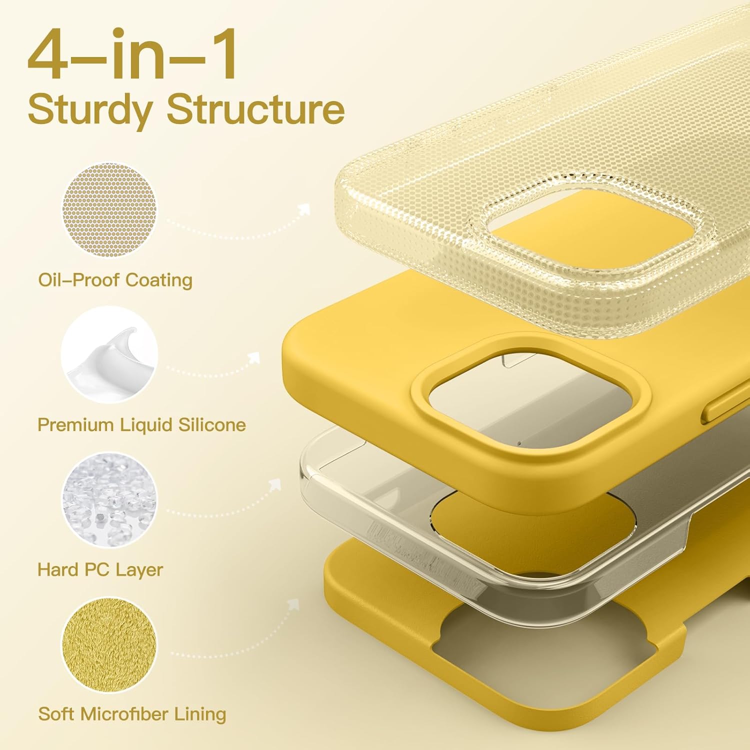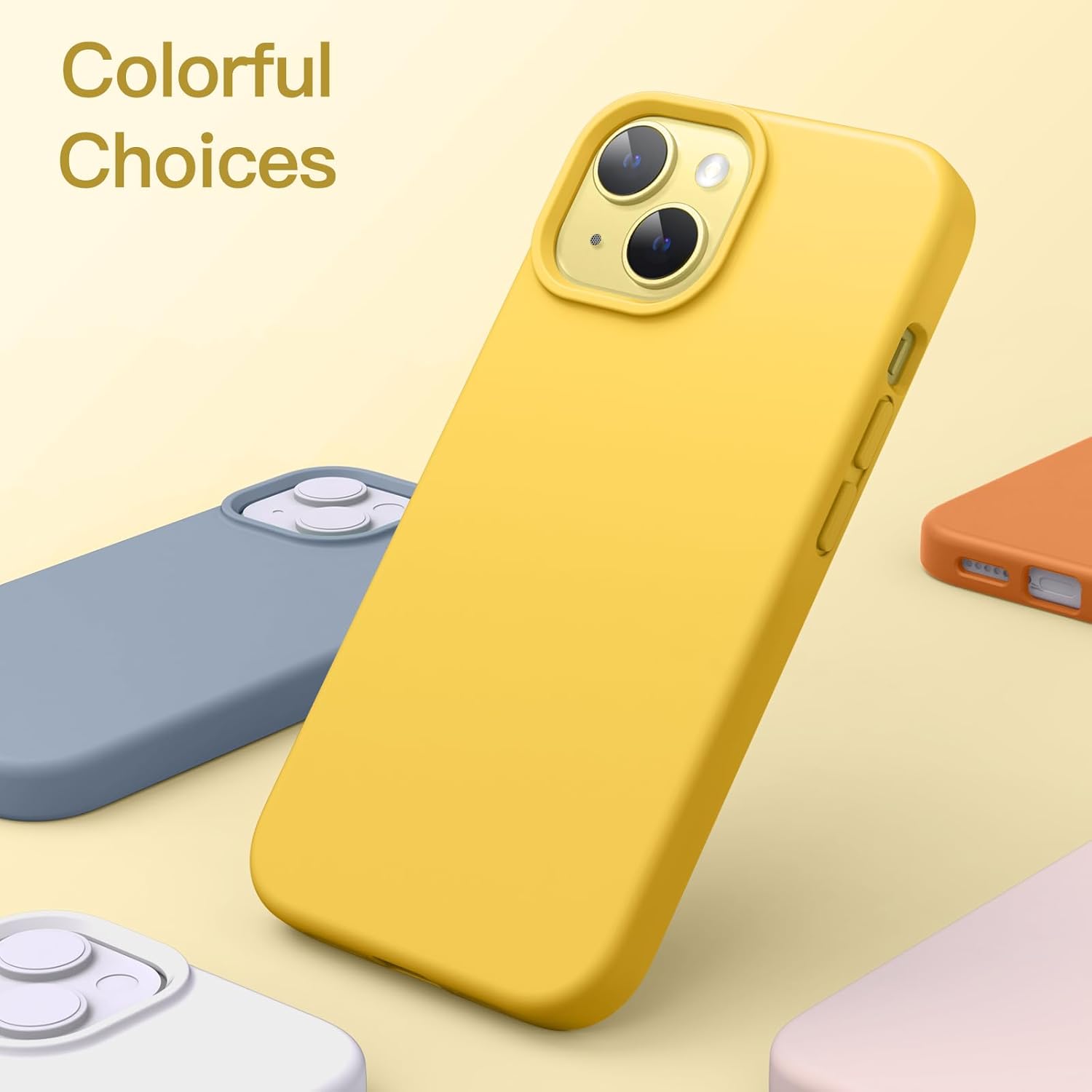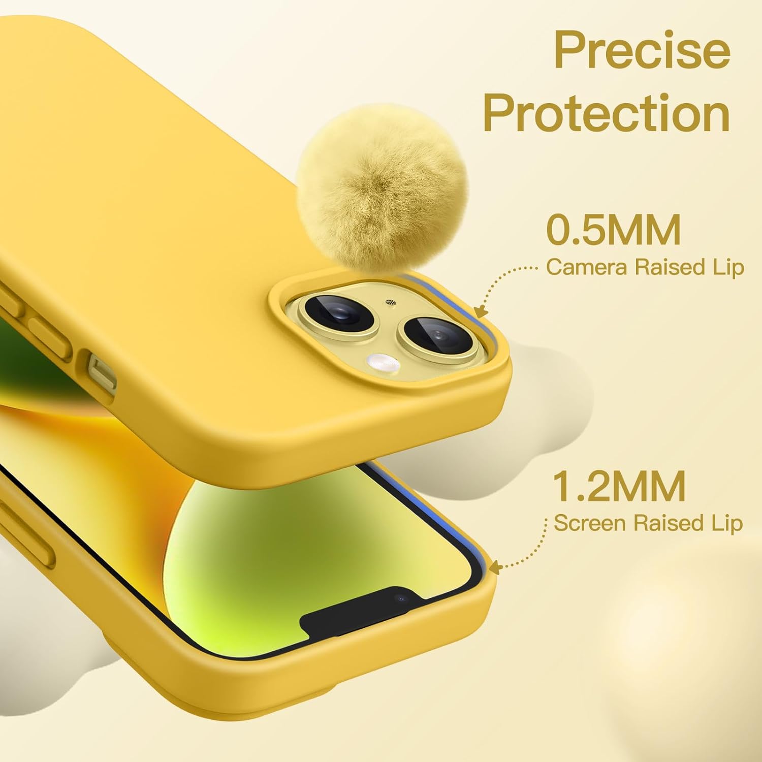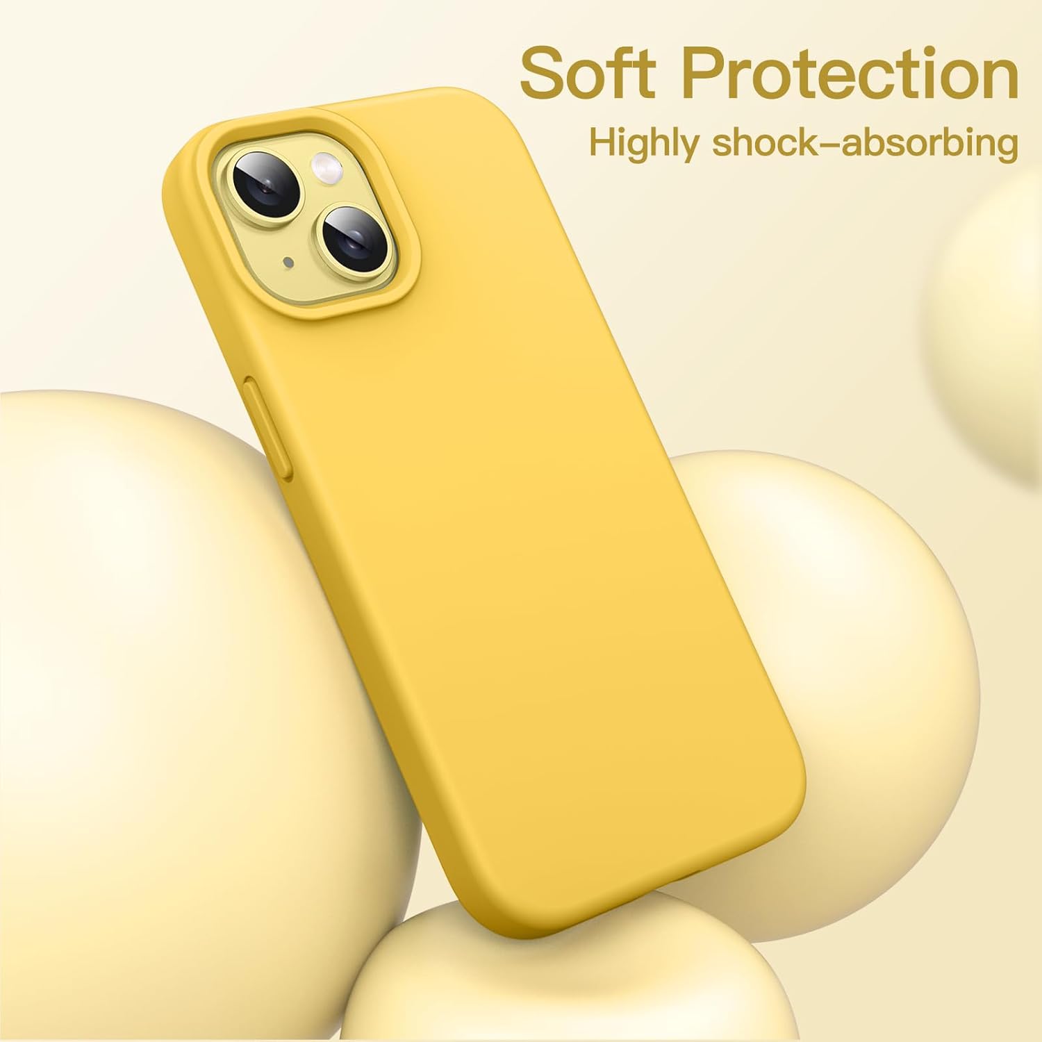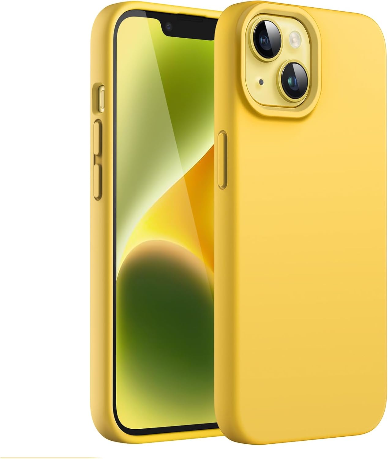 Силиконов калъф JETech за iPhone 14, 6.1 инча, калъф за мобилен телефон с копринено меко покритие, удароустойчив защитен калъф с микрофибърна подплата, жълт