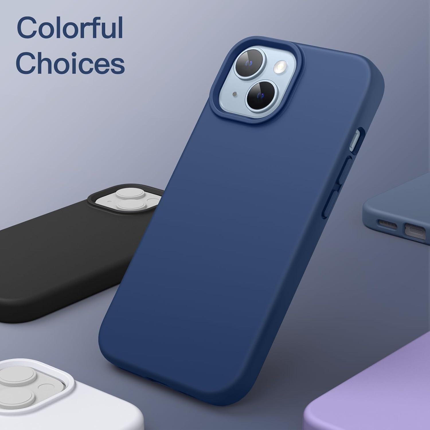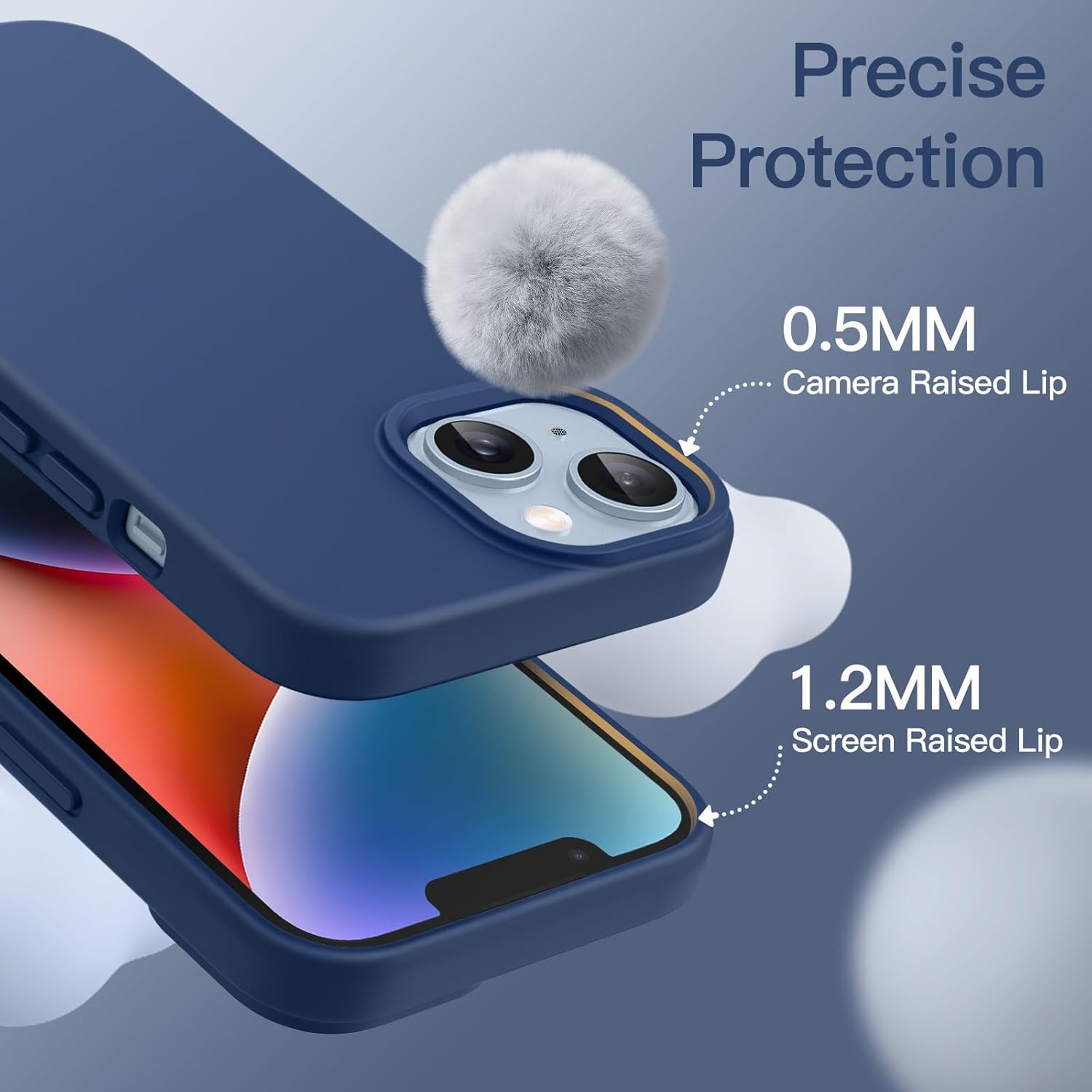 Силиконов калъф JETech за iPhone 14, 6.1 инча, калъф за мобилен телефон с копринено меко покритие, удароустойчив защитен калъф с микрофибърна подплата, кобалтово син