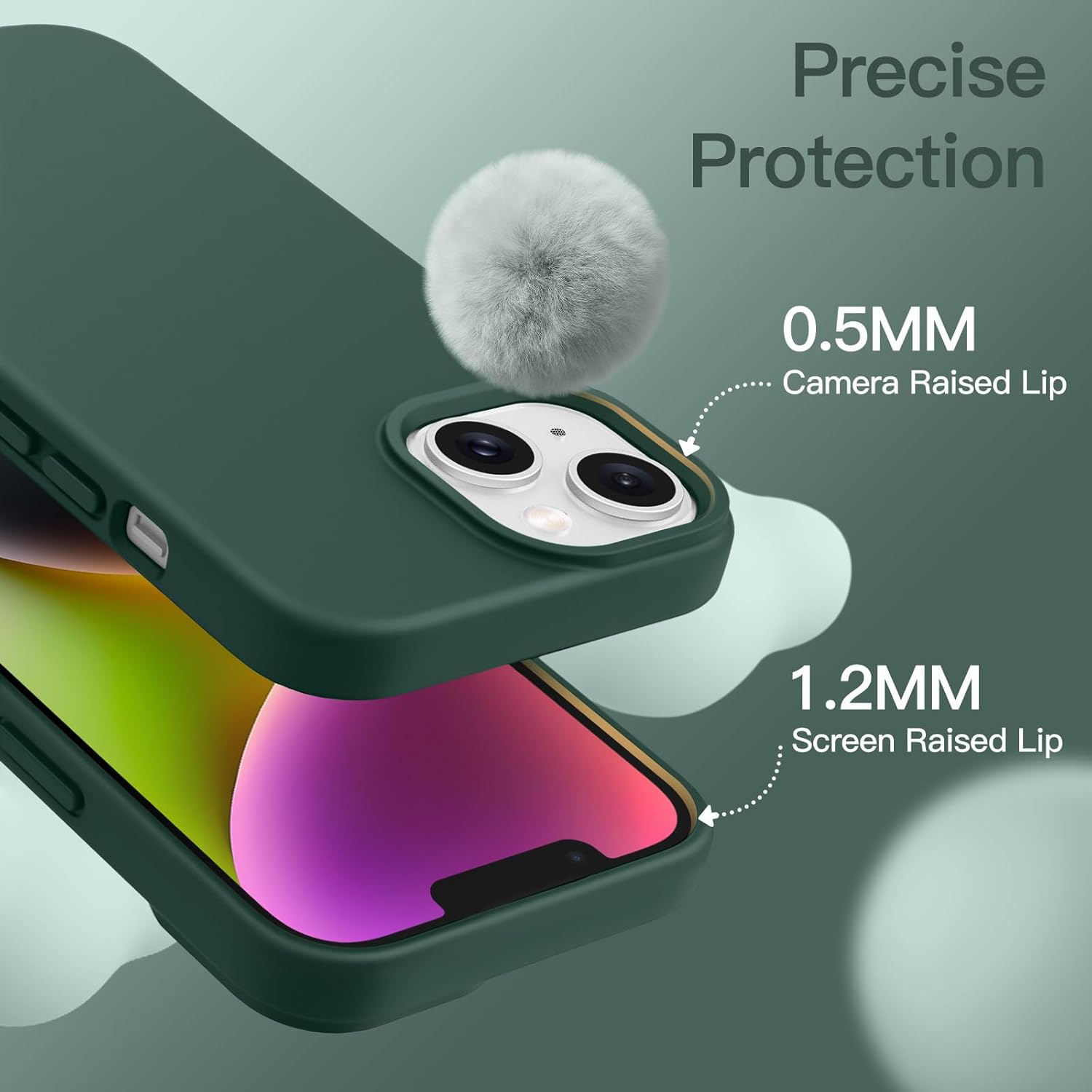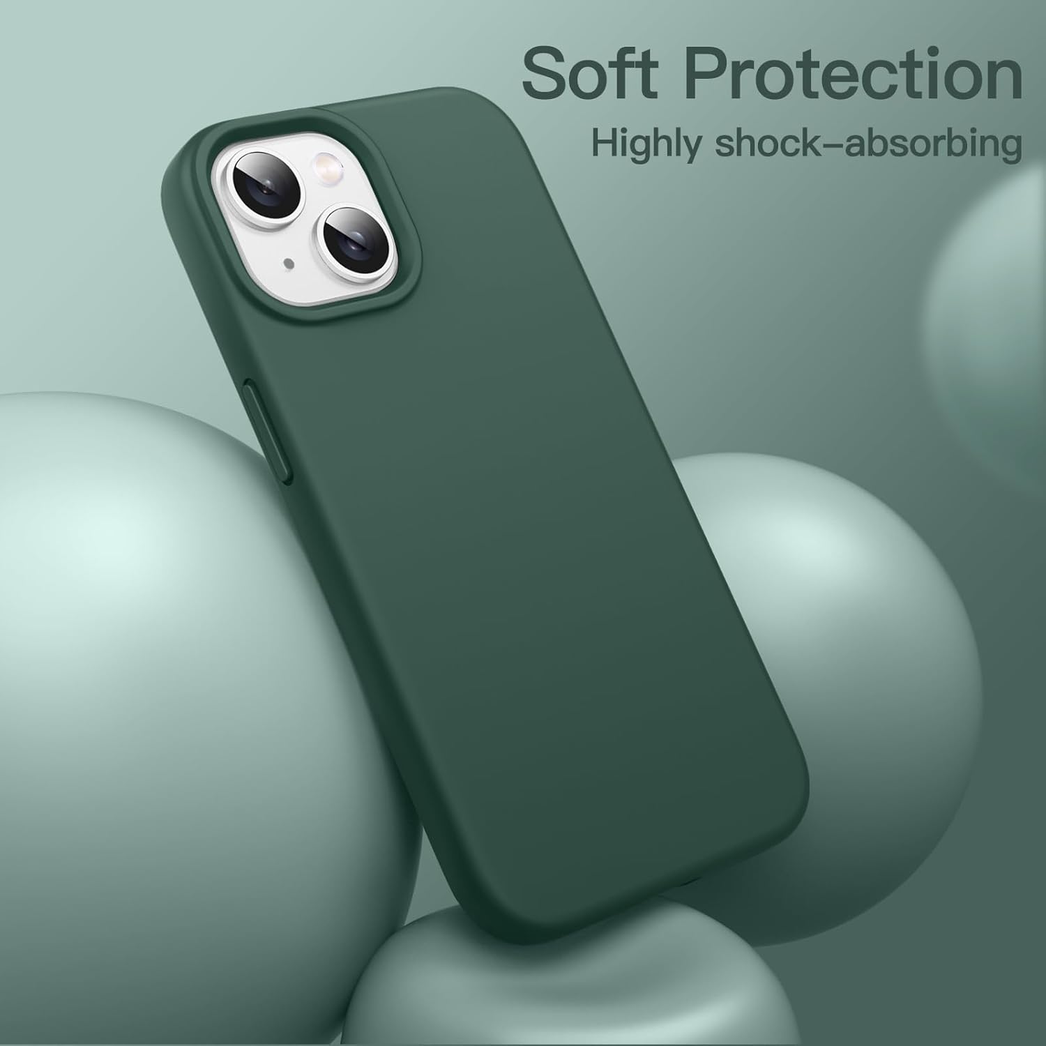 Силиконов калъф JETech за iPhone 14, 6.1 инча, калъф за мобилен телефон с копринено меко покритие, удароустойчив защитен калъф с микрофибърна подплата, нощно зелен