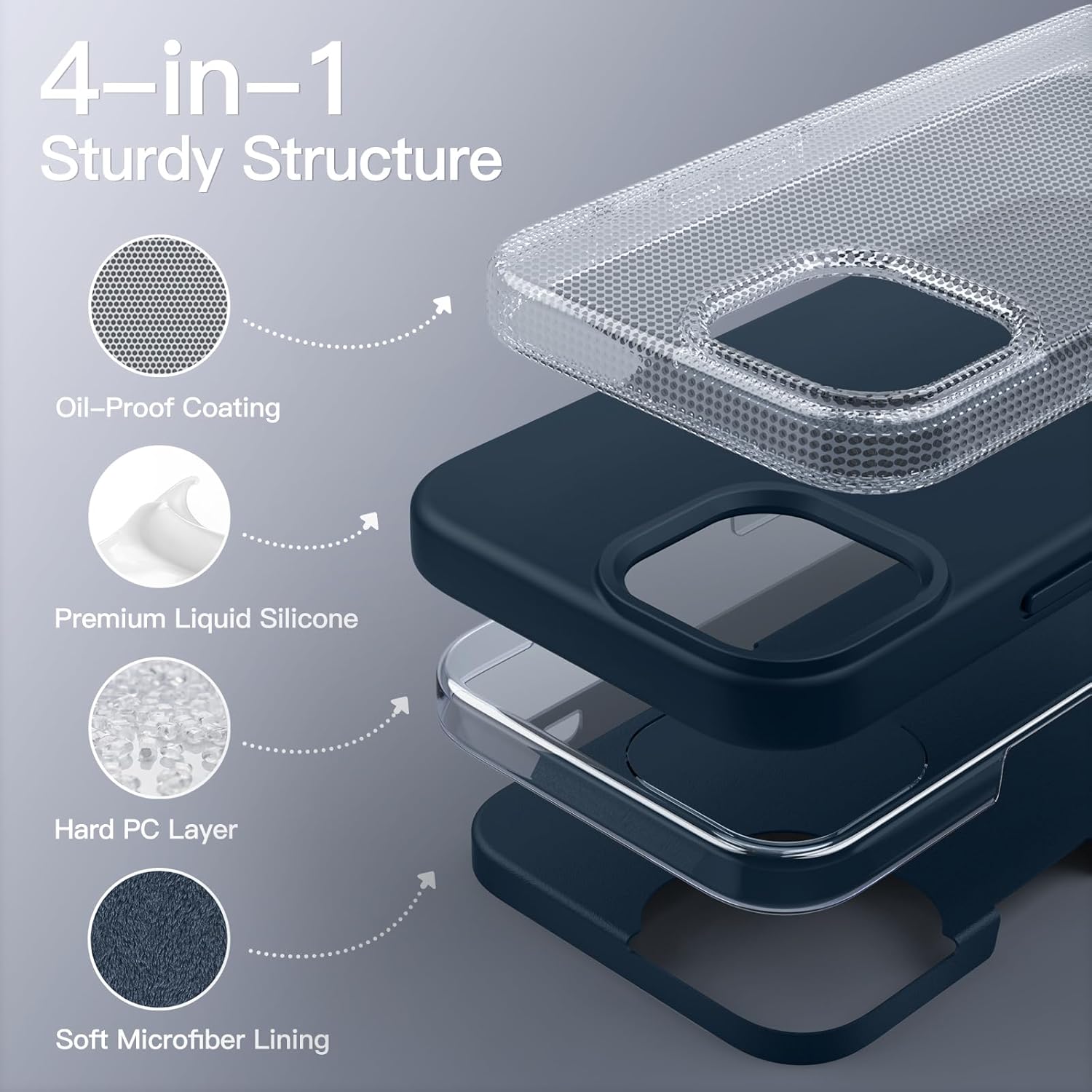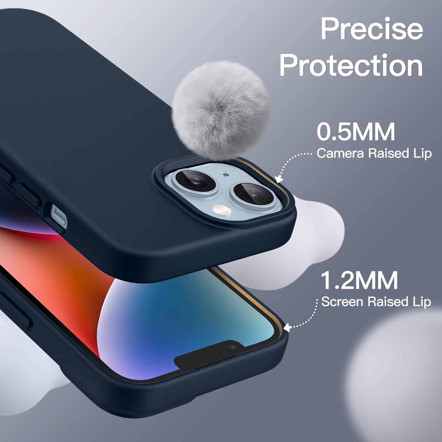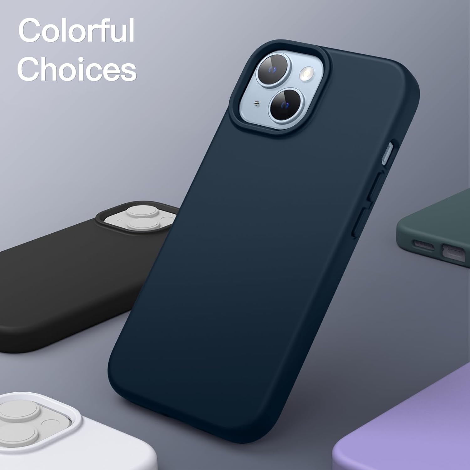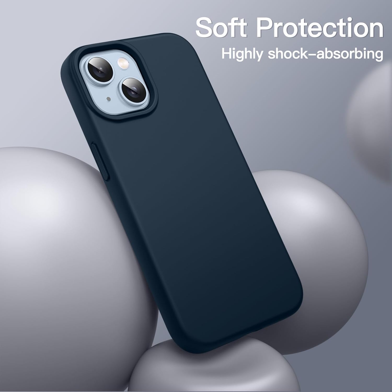 Силиконов калъф JETech за iPhone 14, 6.1 инча, калъф за мобилен телефон с копринено меко покритие, удароустойчив защитен калъф с микрофибърна подплата, тъмносин