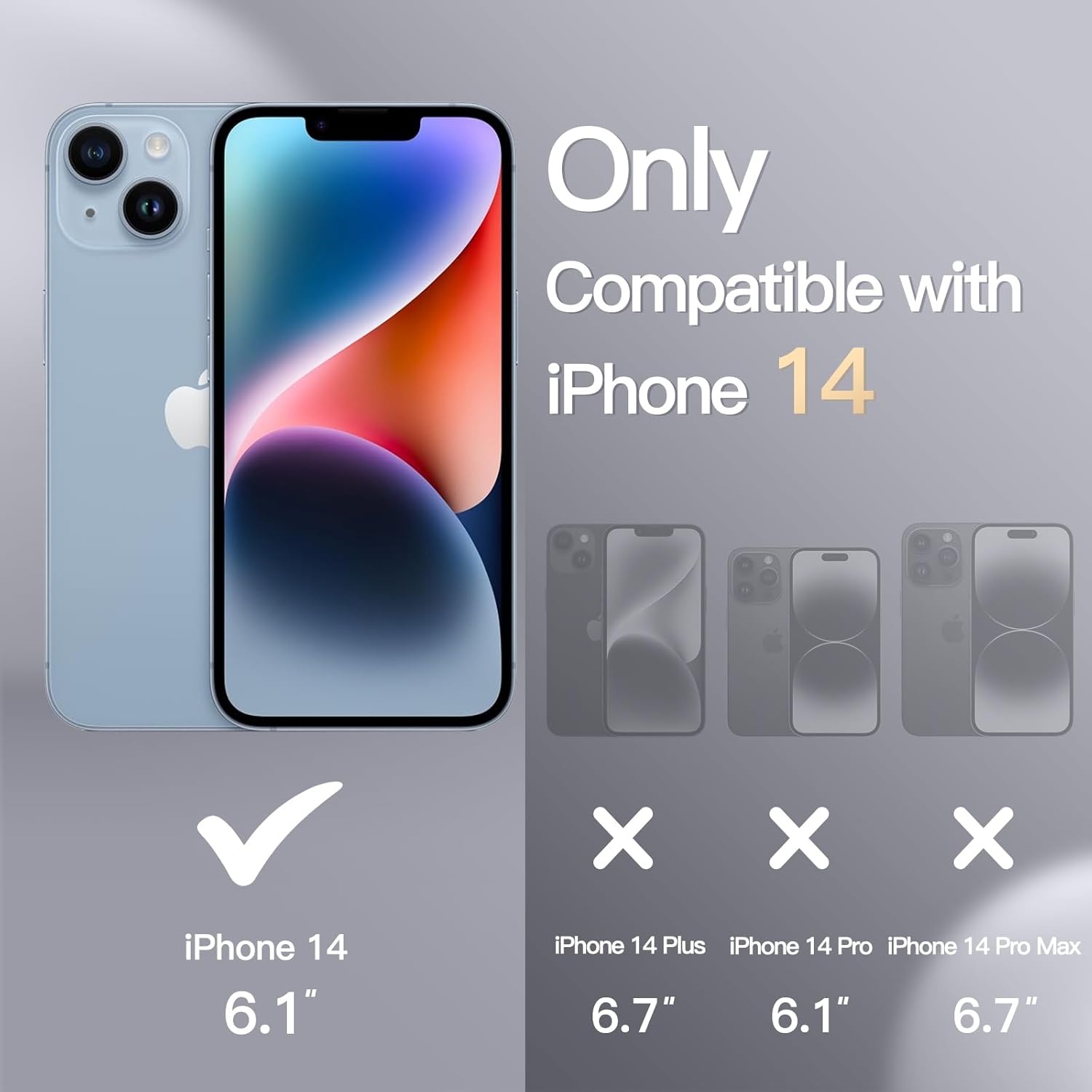 • Съвместимост: Специално проектиран за iPhone 14 (6.1 инча). Осигурява цялостна защита за вашето устройство. Поддържа безжично зареждане. Моля, обърнете внимание: Не е за iPhone 14 Plus/iPhone 14 Pro/iPhone 14 Pro Max.