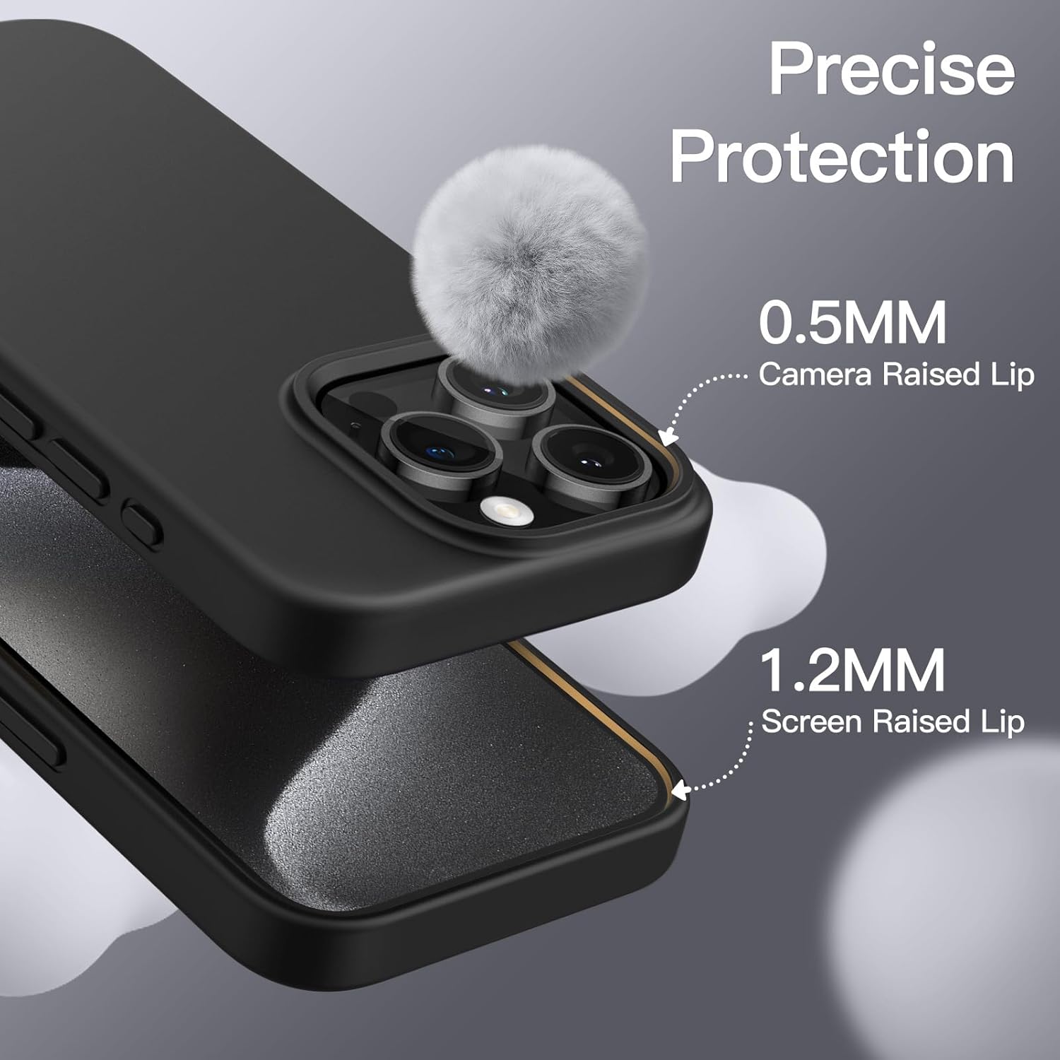 Силиконов калъф JETech за iPhone 15 Pro 6.1 инча, калъф за мобилен телефон за цялото тяло с копринено меко покритие, удароустойчив защитен калъф (черен)