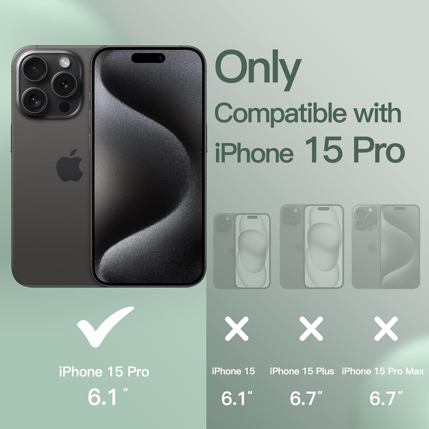 • Съвместимост: Специално проектиран за iPhone 15 Pro 6.1 инча. Моля, обърнете внимание: Не е за iPhone 15/15 Plus/15 Pro Max. Осигурява цялостна защита за вашето устройство. Поддържа безжично зареждане.