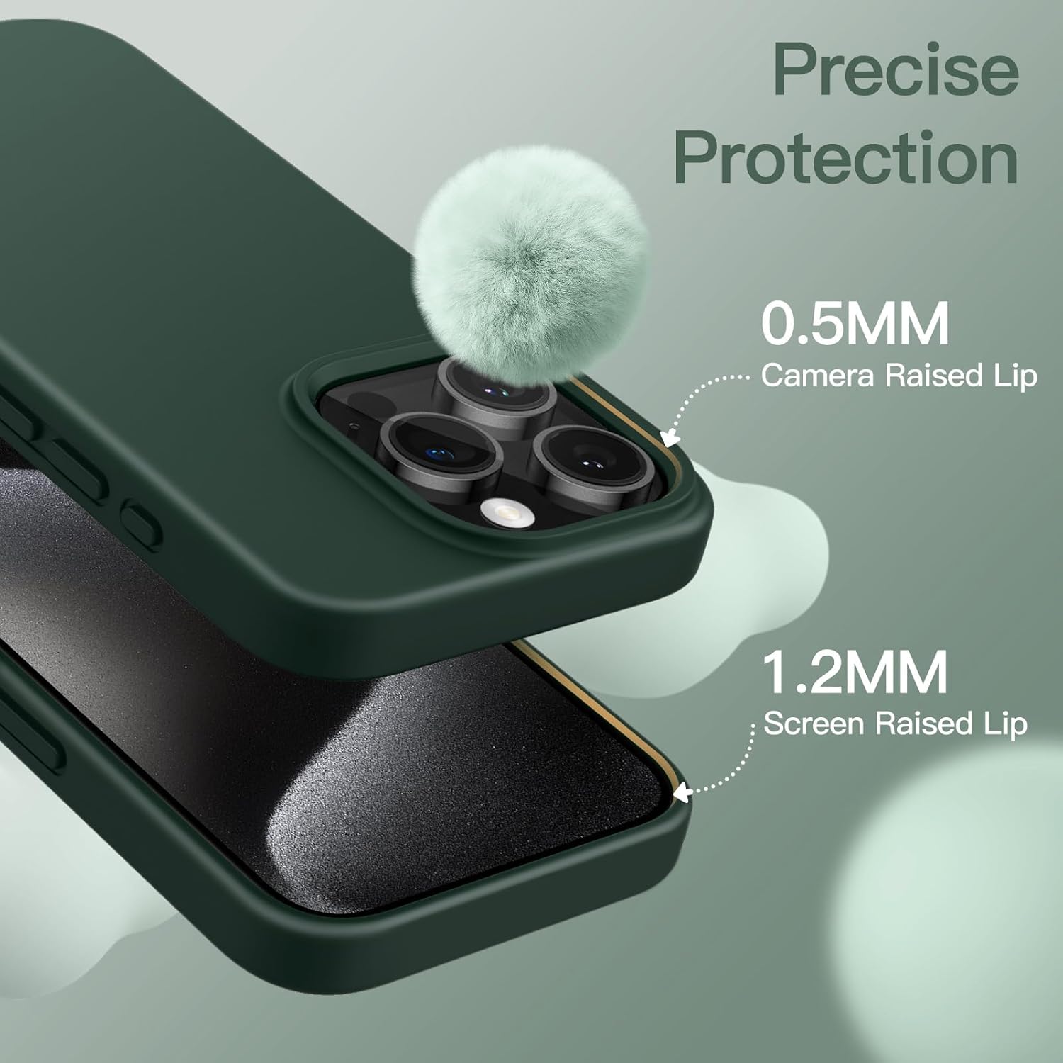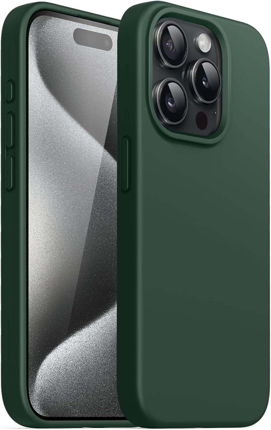 Силиконов калъф JETech за iPhone 15 Pro 6.1 инча, калъф за мобилен телефон за цялото тяло с копринено меко покритие, удароустойчив защитен калъф (полунощно зелен)