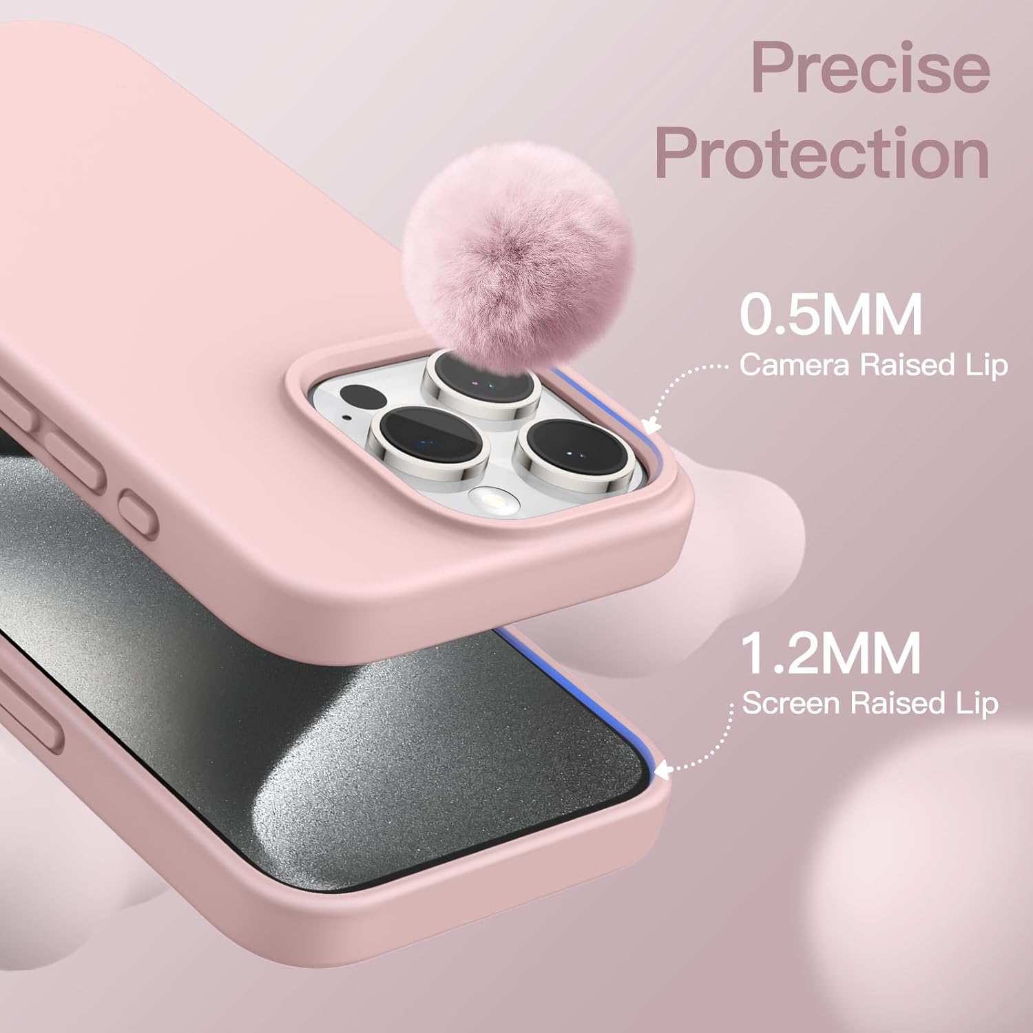 Силиконов калъф JETech за iPhone 15 Pro 6.1 инча, калъф за мобилен телефон за цялото тяло с копринено меко покритие, удароустойчив защитен калъф (розов)