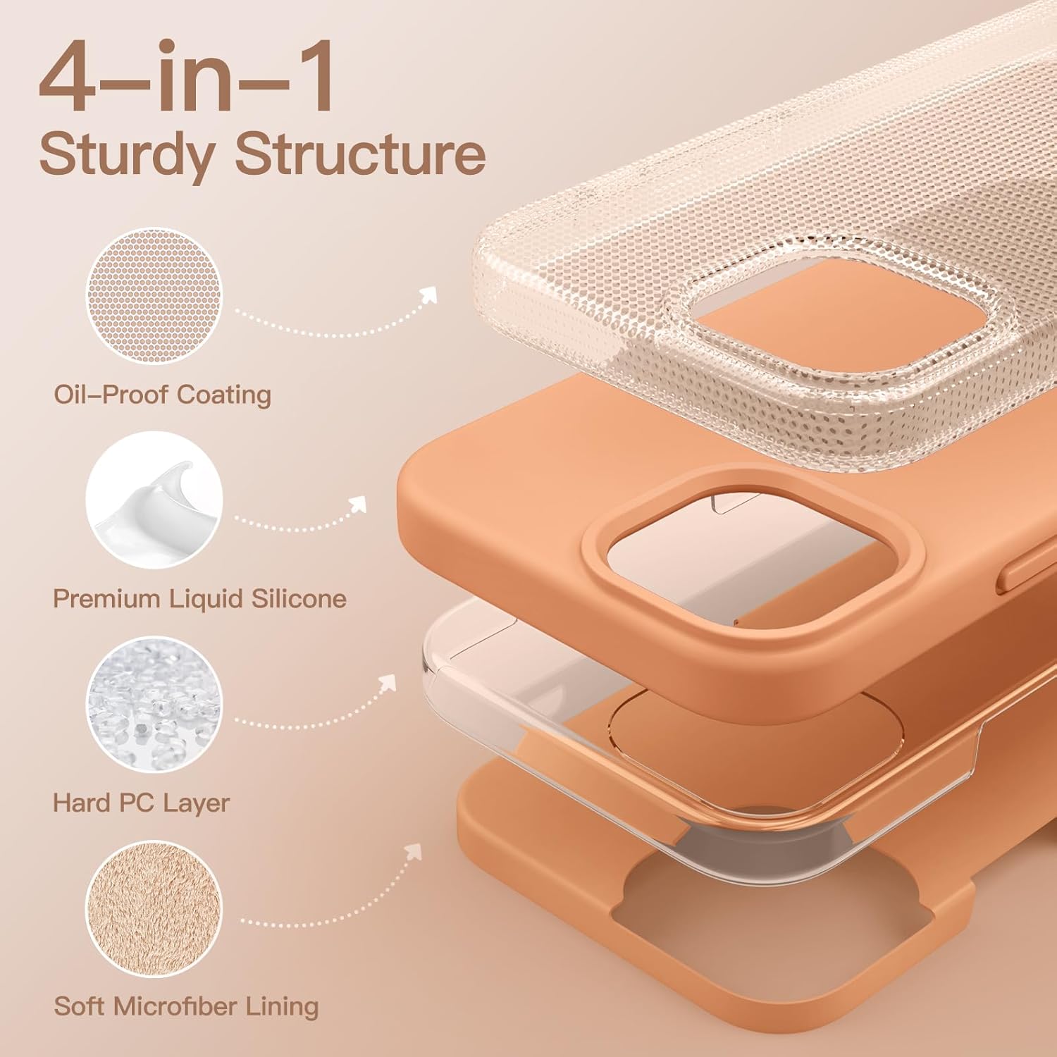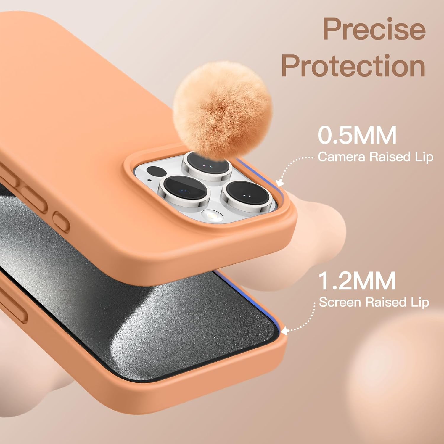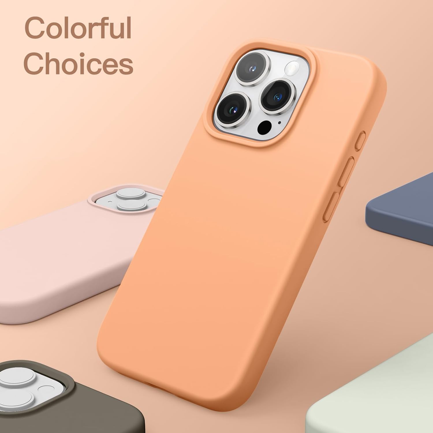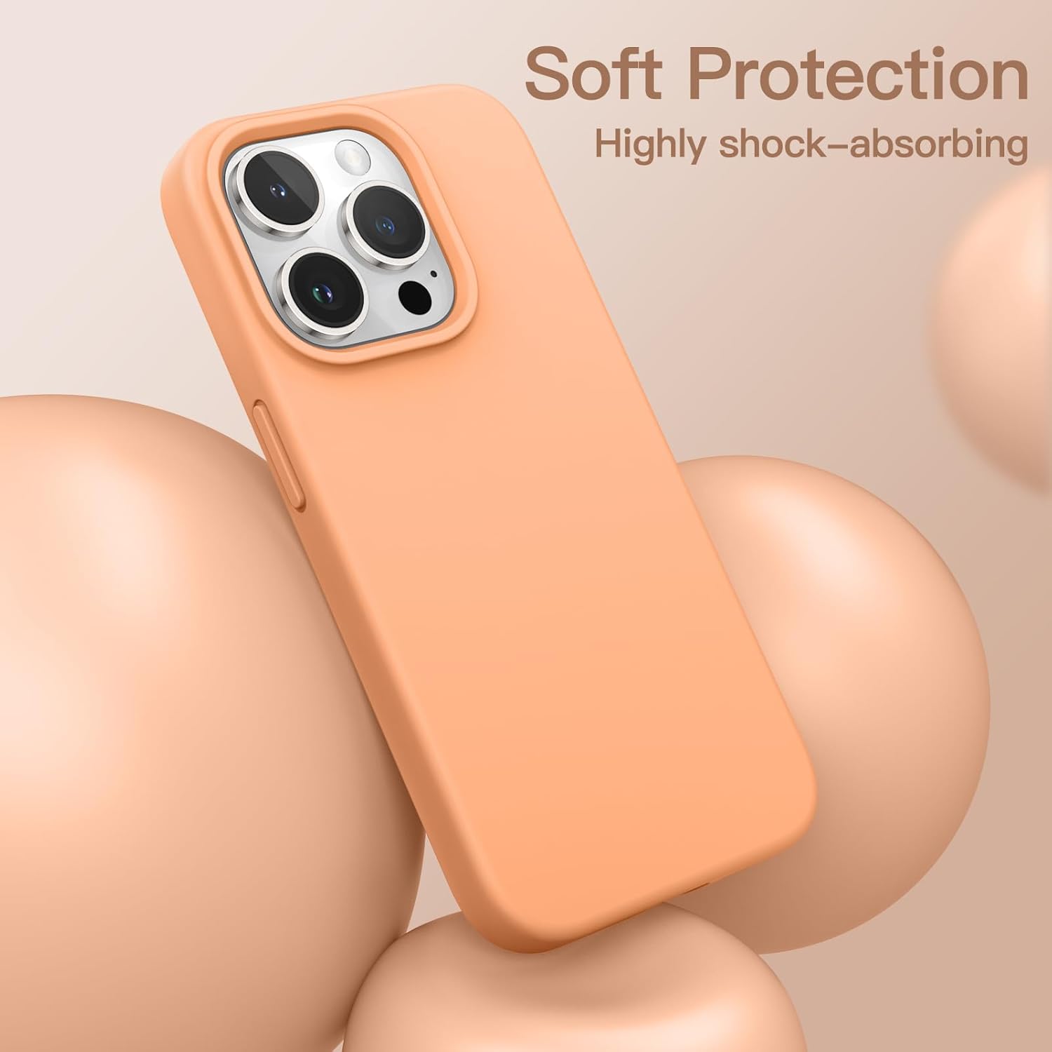 Силиконов калъф JETech за iPhone 15 Pro 6.1 инча, калъф за мобилен телефон за цялото тяло с копринено меко покритие, удароустойчив защитен калъф (сорбе оранжев)