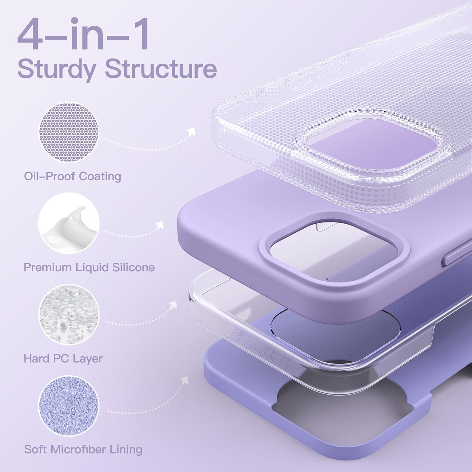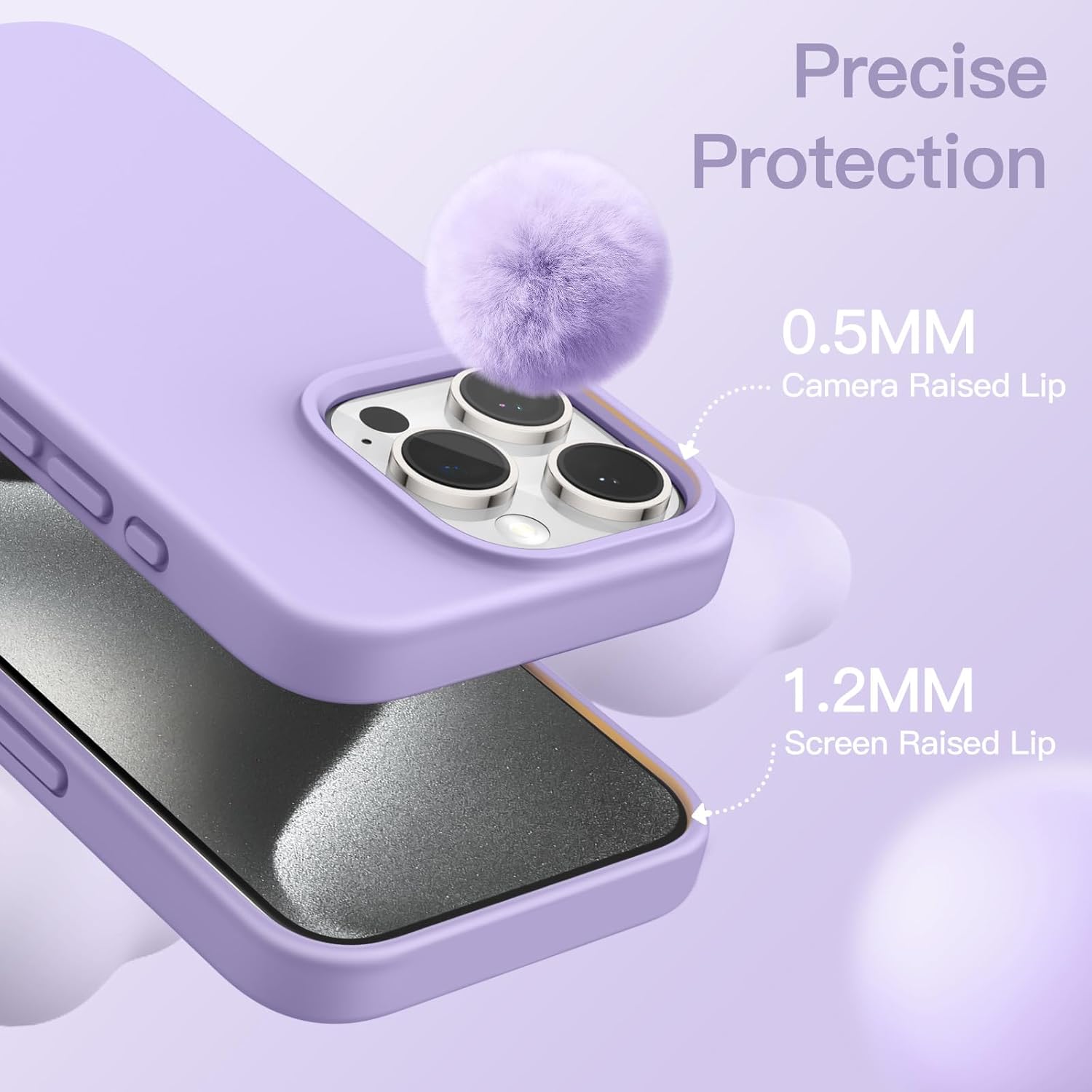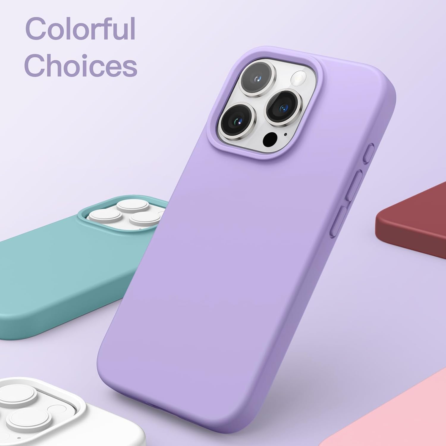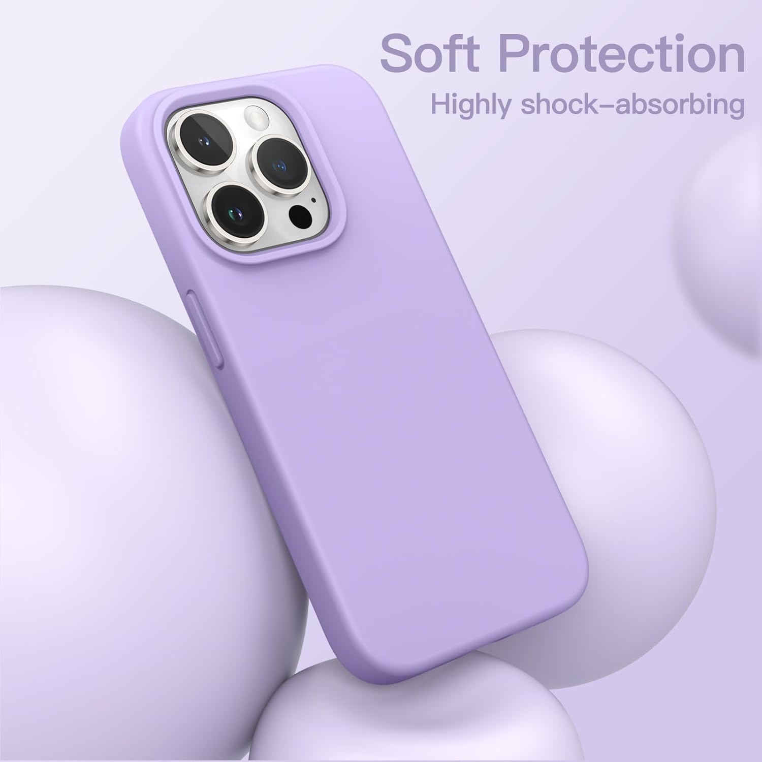 Силиконов калъф JETech за iPhone 15 Pro 6.1 инча, калъф за мобилен телефон за цялото тяло с копринено меко покритие, удароустойчив защитен калъф (светло лилав)