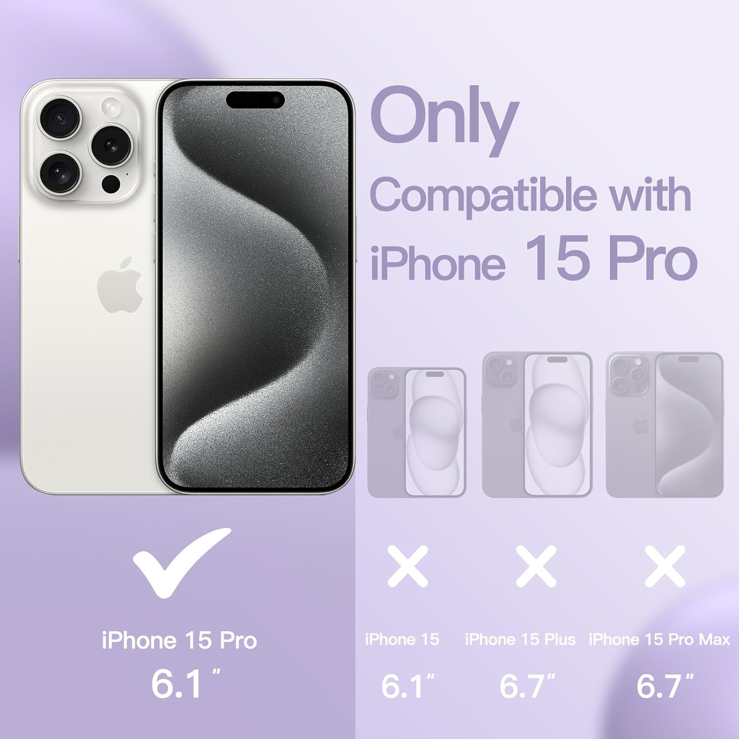 • Съвместимост: Специално проектиран за iPhone 15 Pro 6.1 инча. Моля, обърнете внимание: Не е за iPhone 15/15 Plus/15 Pro Max. Осигурява цялостна защита за вашето устройство. Поддържа безжично зареждане.