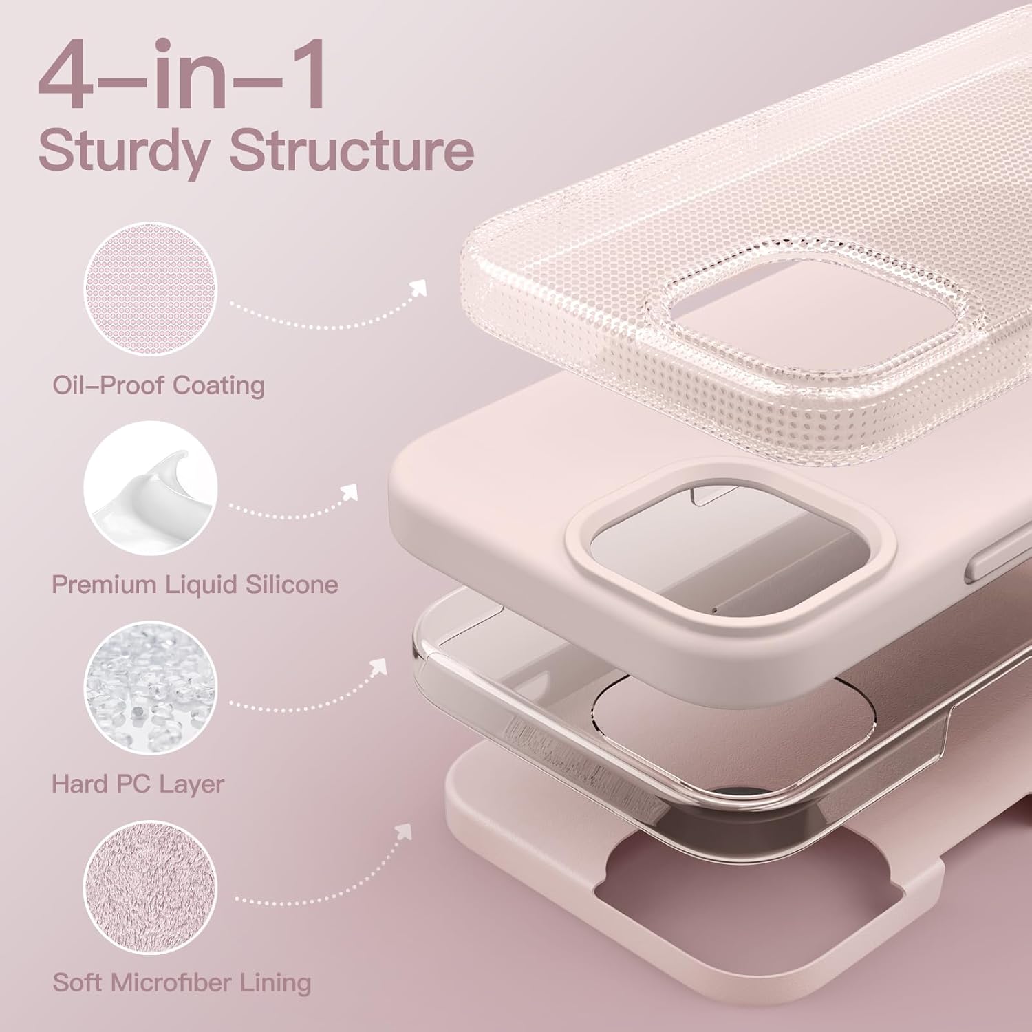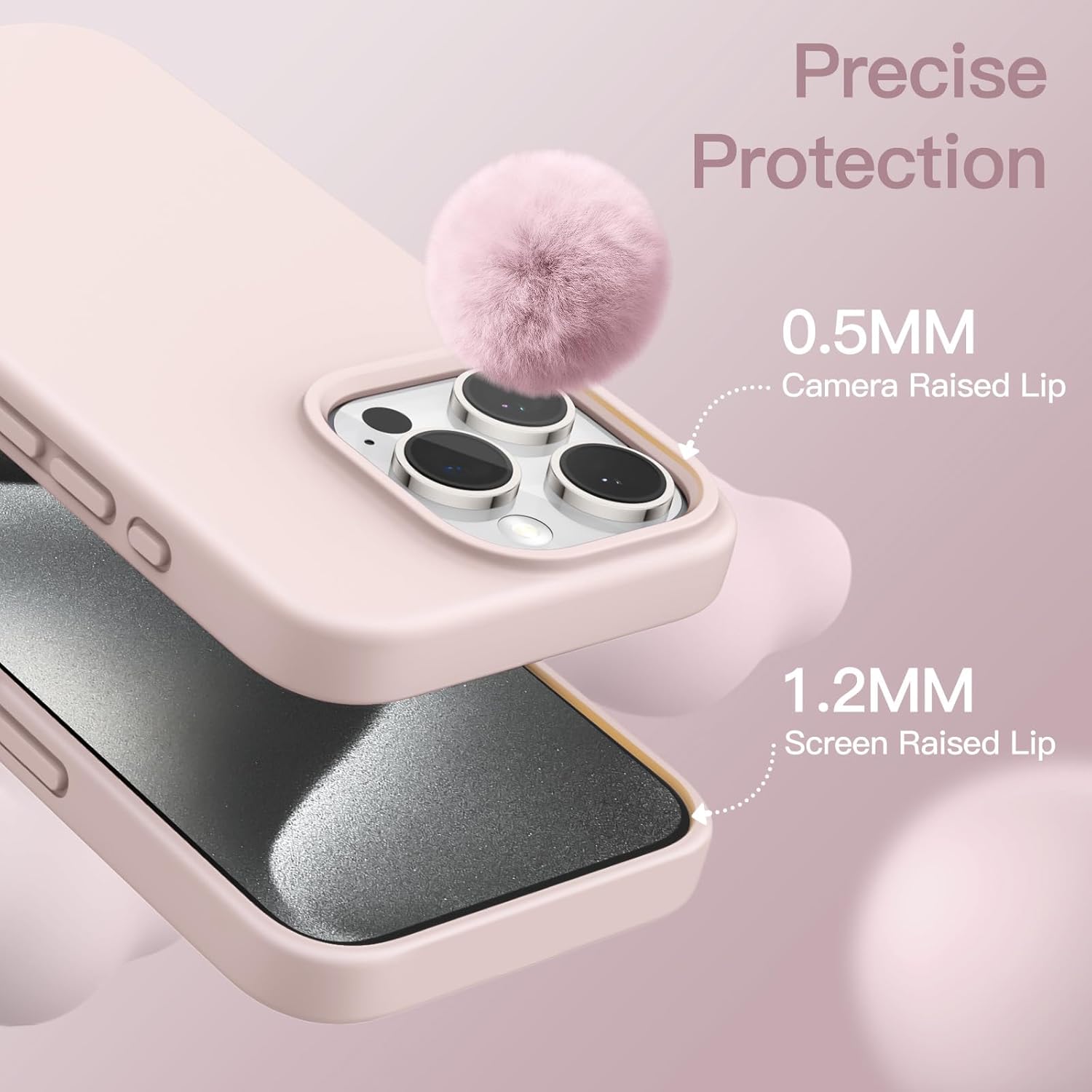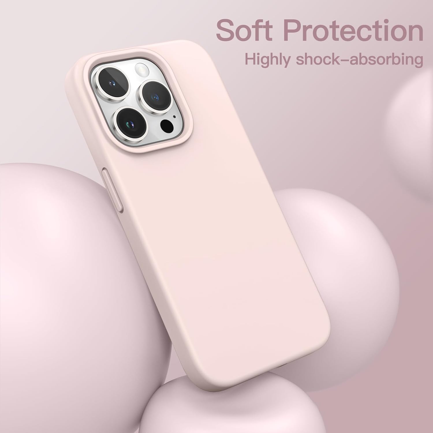 Силиконов калъф JETech за iPhone 15 Pro 6.1 инча, калъф за мобилен телефон за цялото тяло с копринено меко покритие, удароустойчив защитен калъф (светло розов)