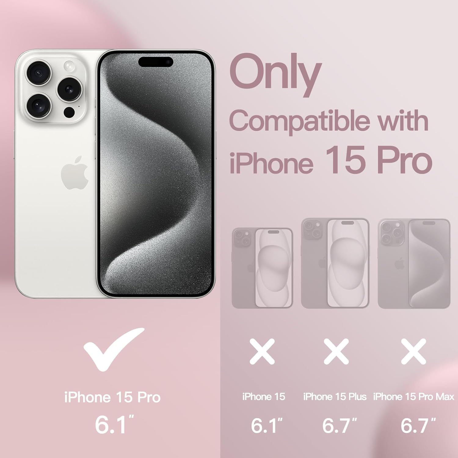 • Съвместимост: Специално проектиран за iPhone 15 Pro 6.1 инча. Моля, обърнете внимание: Не е за iPhone 15/15 Plus/15 Pro Max. Осигурява цялостна защита за вашето устройство. Поддържа безжично зареждане.