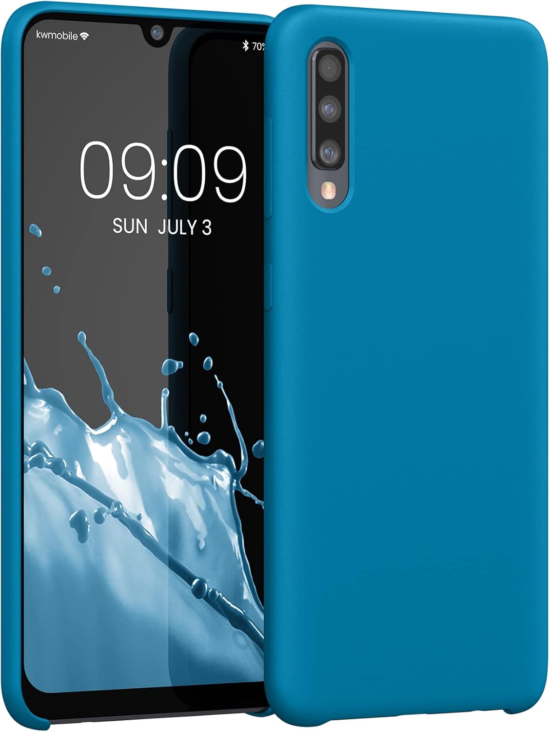 Силиконов калъф kwmobile, съвместим с Samsung Galaxy A50 - Калъф за мобилен телефон - Мека повърхност за мобилен телефон - Безжично зареждане - Карибско синьо