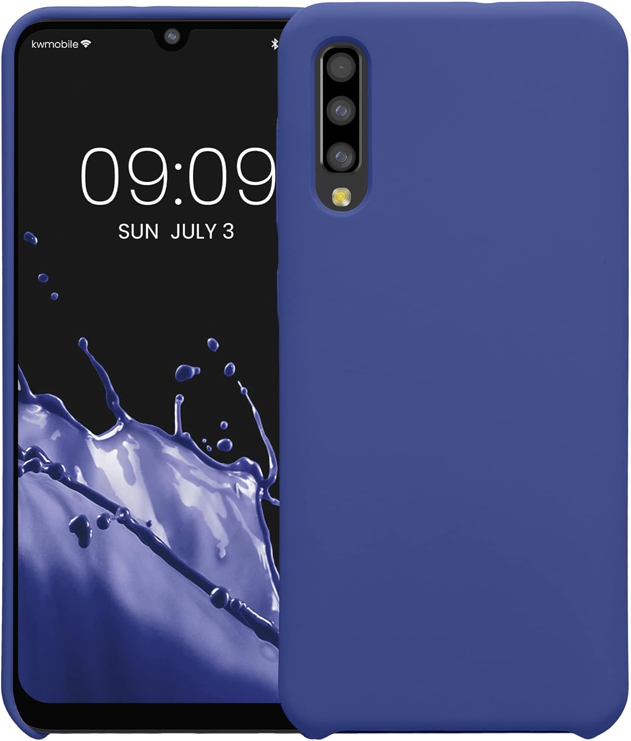 Силиконов калъф kwmobile, съвместим с Samsung Galaxy A50 - мека повърхност - безжично зареждане - синьо-лилав