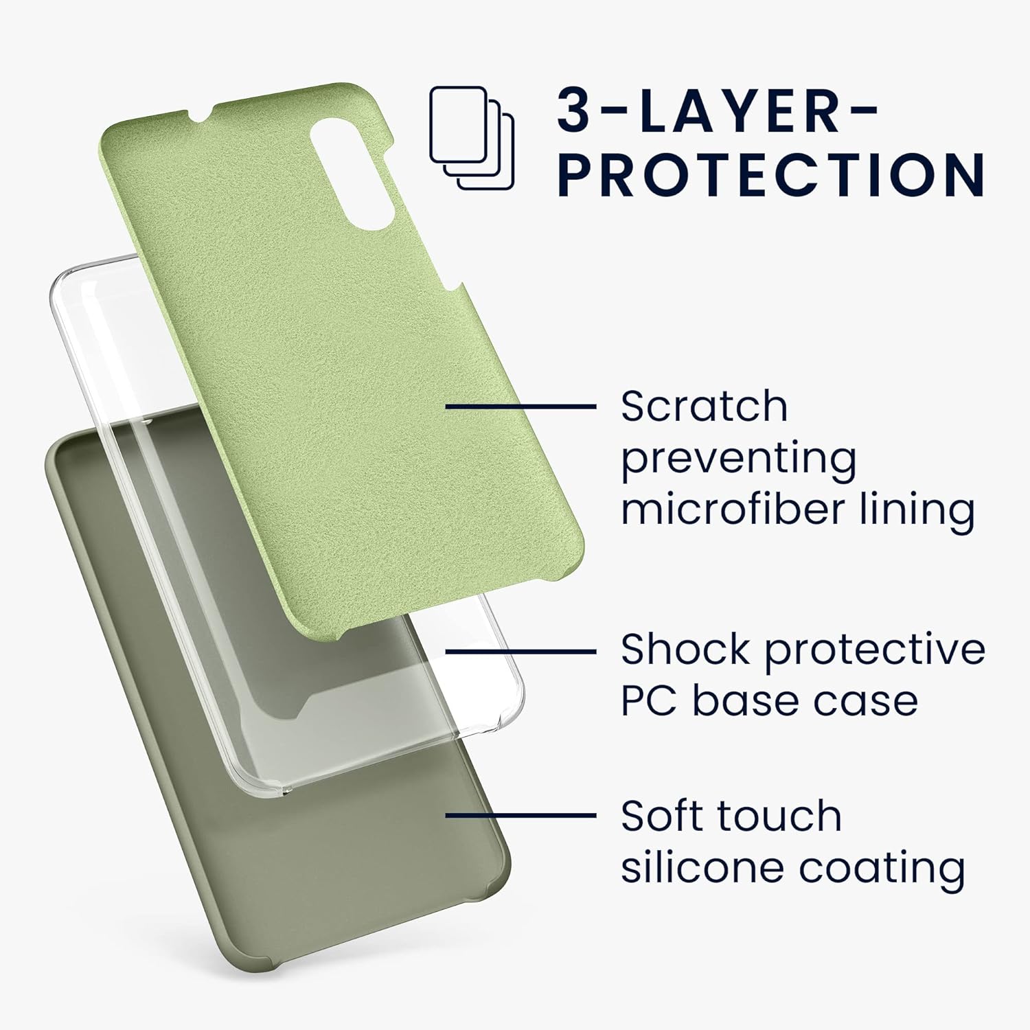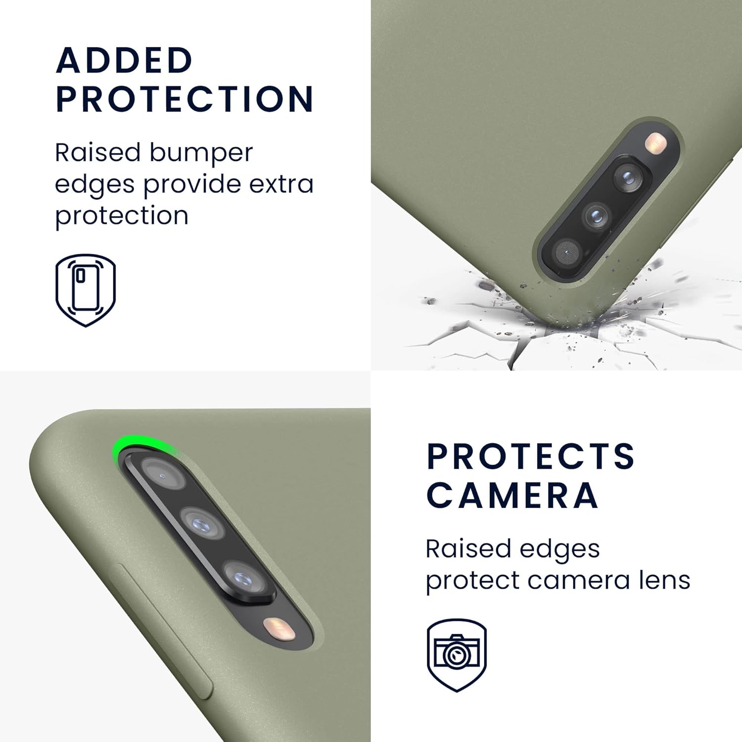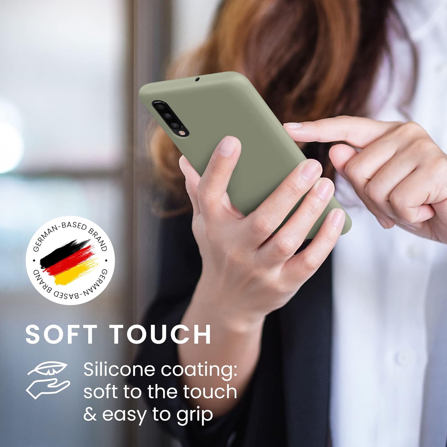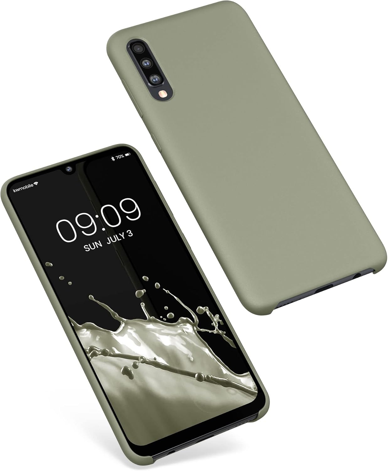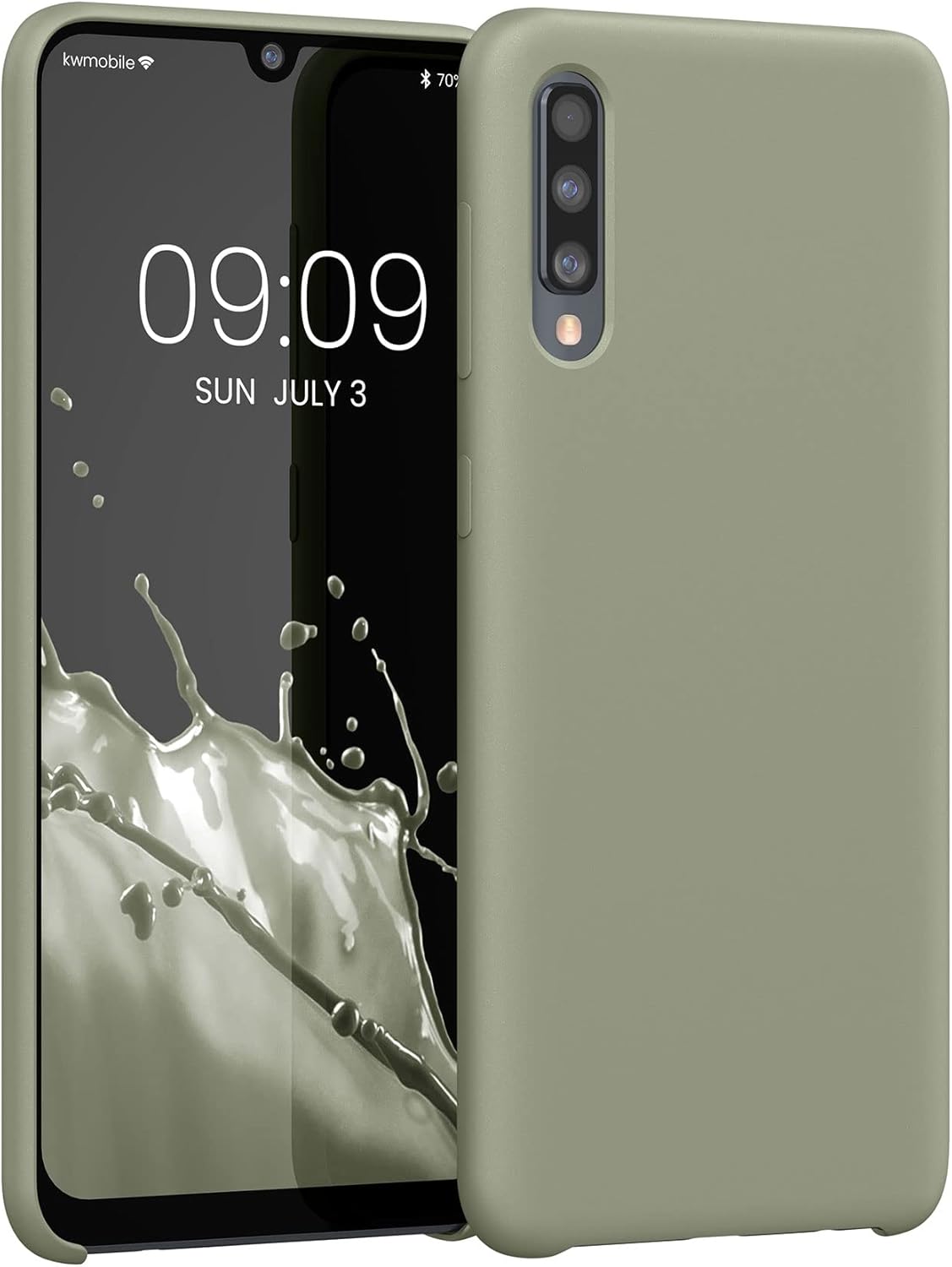 Силиконов калъф kwmobile, съвместим с Samsung Galaxy A50 - мека повърхност - безжично зареждане - сиво-зелен