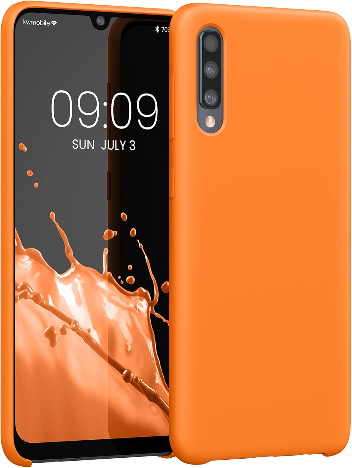 Силиконов калъф kwmobile, съвместим с Samsung Galaxy A50 - мека повърхност - безжично зареждане - цвят плодов портокал