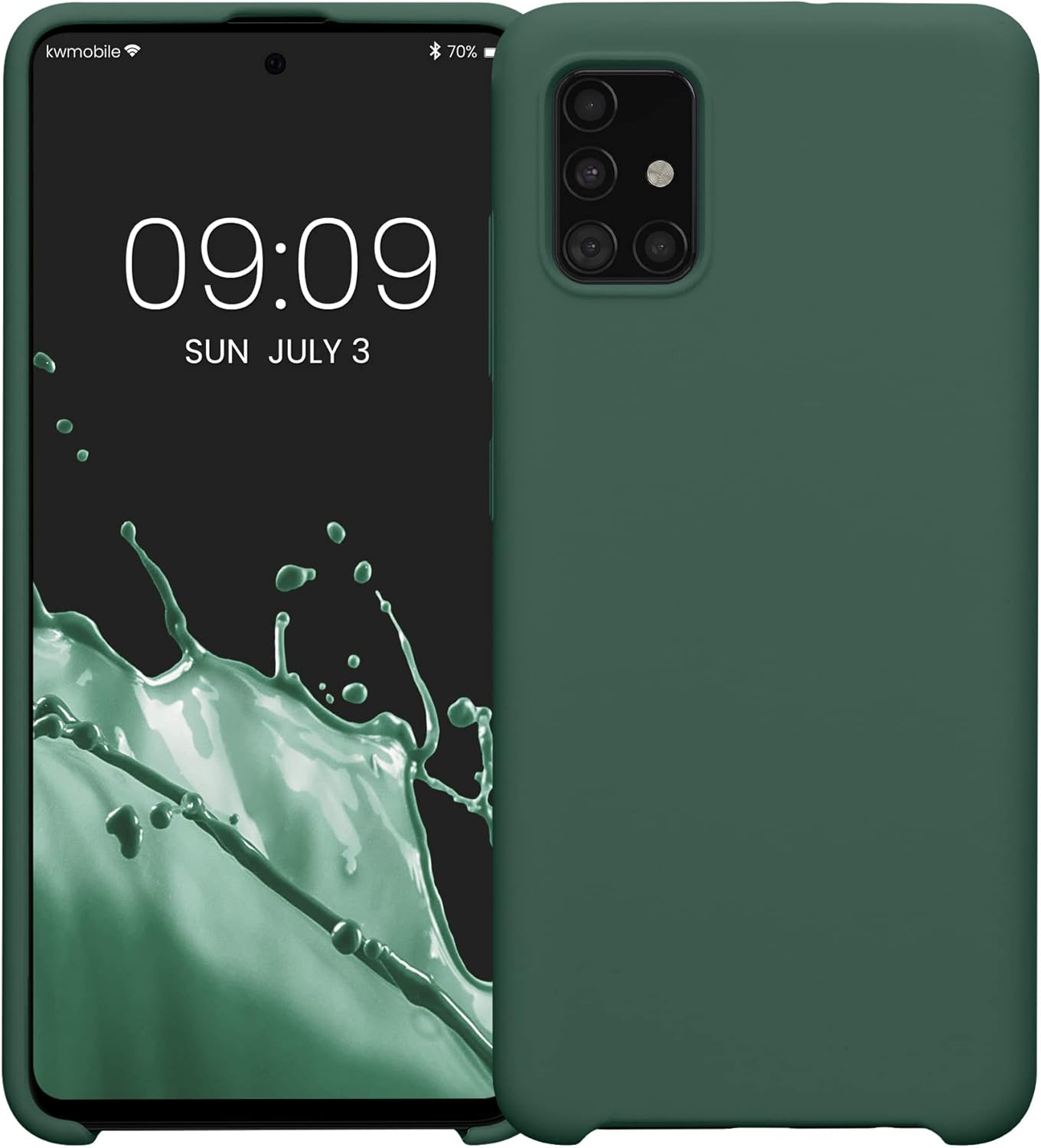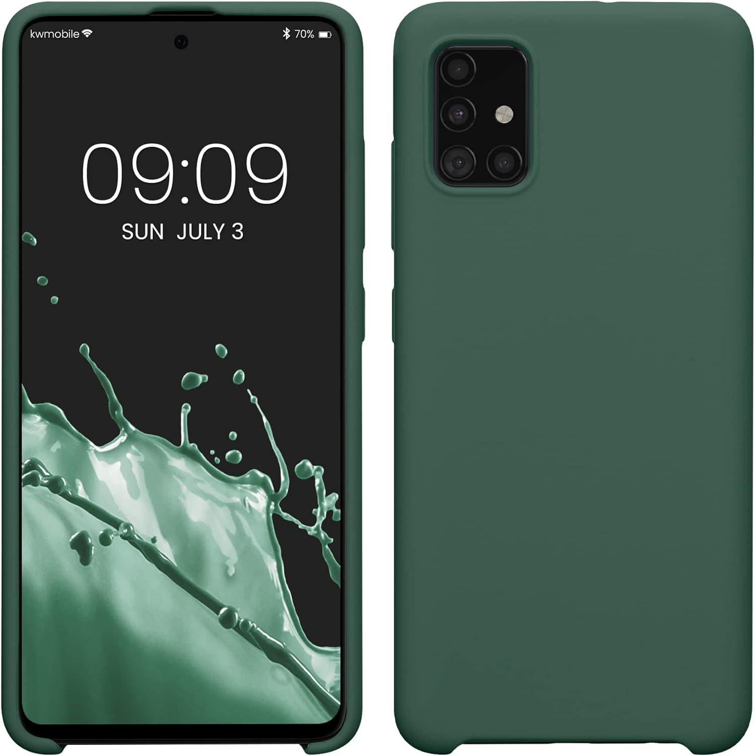 Силиконов калъф kwmobile, съвместим с Samsung Galaxy A51 - мека повърхност - безжично зареждане - тъмнозелен