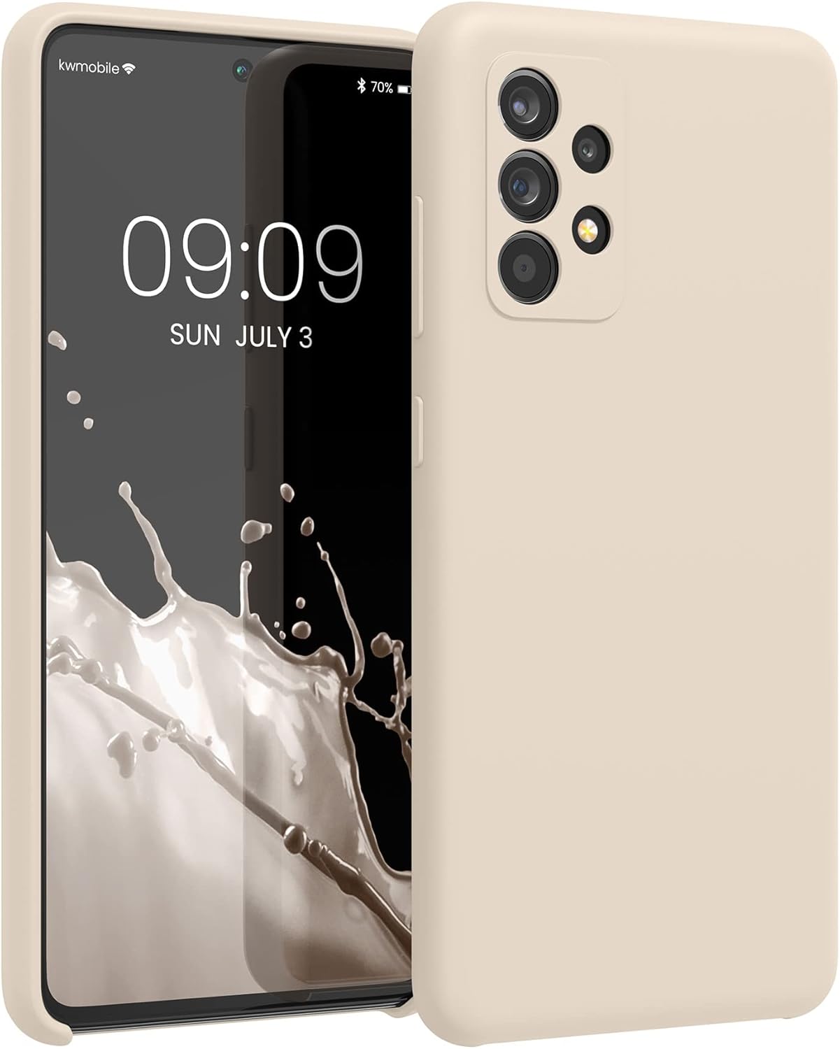 Силиконов калъф kwmobile, съвместим с Samsung Galaxy A52 / A52 5G / A52s 5G, с мека повърхност, безжично зареждане, матово кремаво