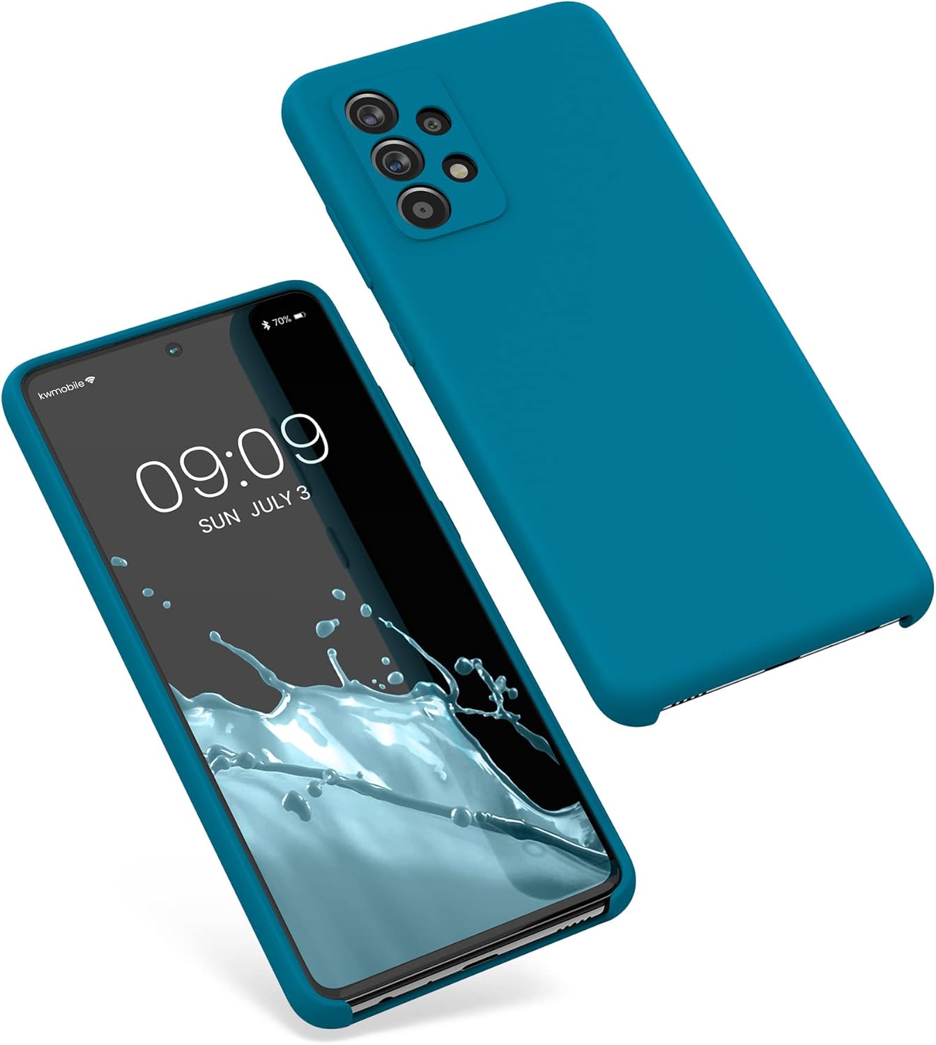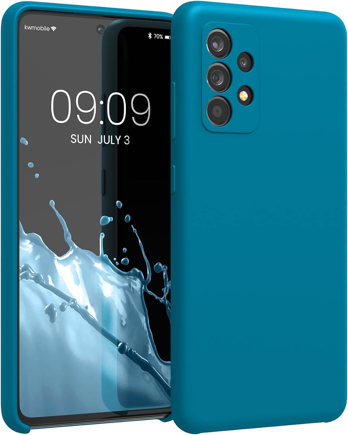 Силиконов калъф kwmobile, съвместим с Samsung Galaxy A52 / A52 5G / A52s 5G, с мека повърхност и безжично зареждане, карибско синьо
