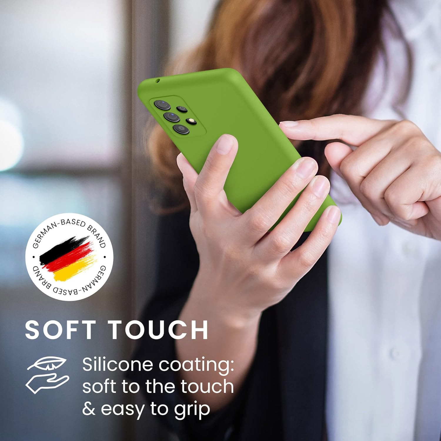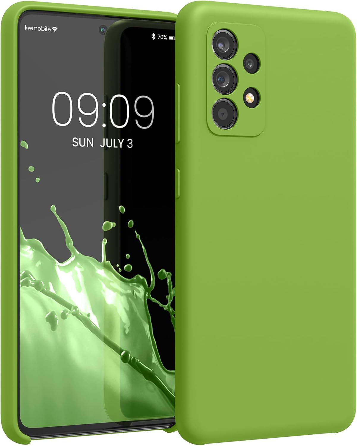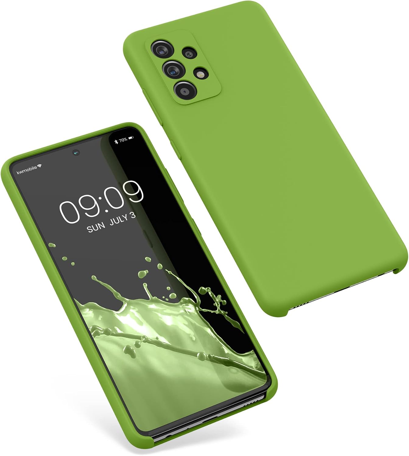 Силиконов калъф kwmobile, съвместим с Samsung Galaxy A52 / A52 5G / A52s 5G, с мека повърхност и безжично зареждане, цвят зелен пипер