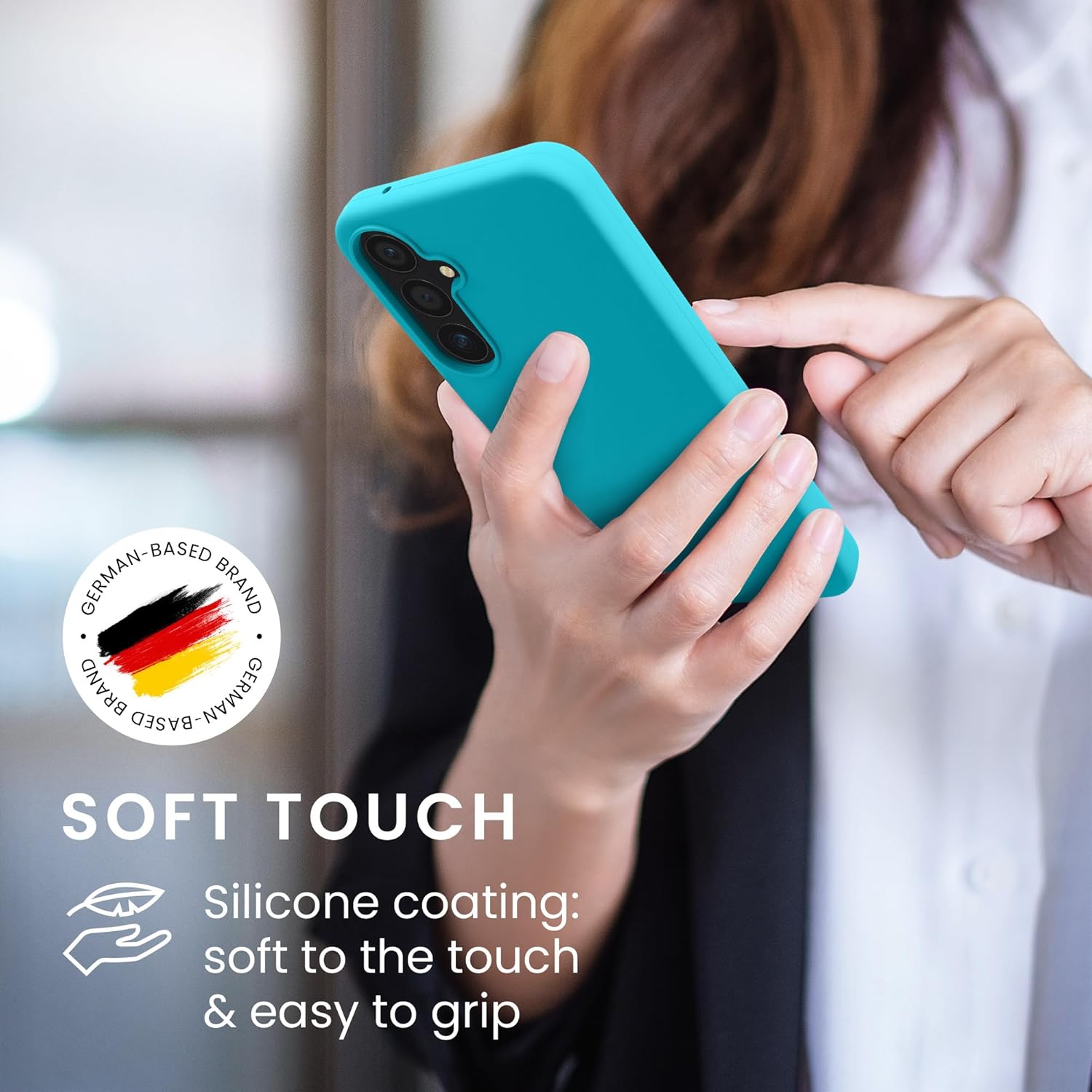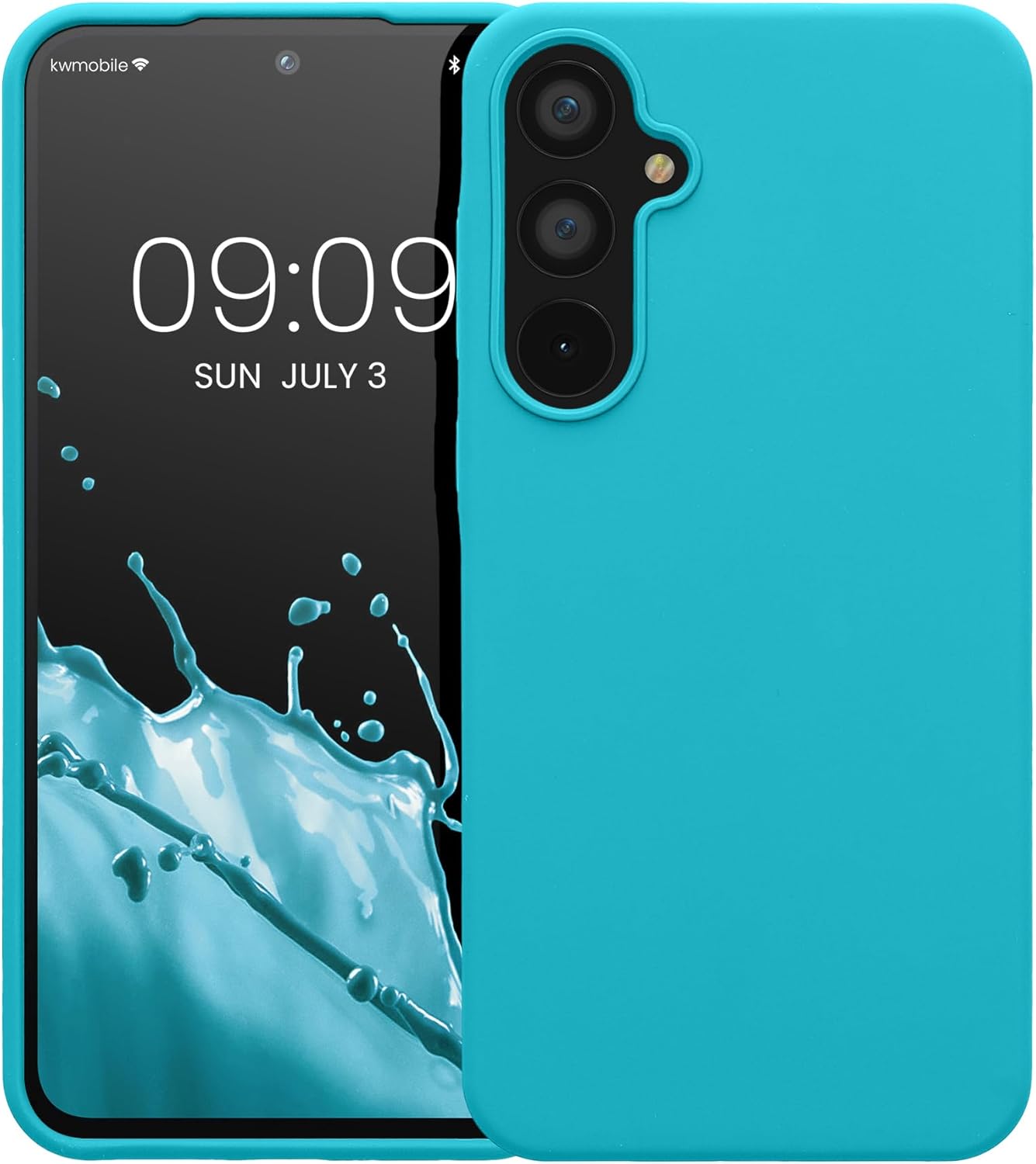 Силиконов калъф kwmobile, съвместим с Samsung Galaxy A55 5G - Soft Surface Case - Безжично зареждане - Cool Glacier