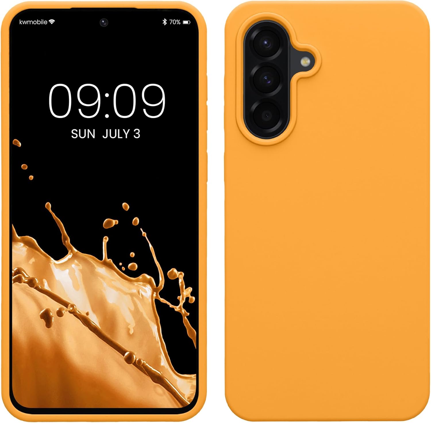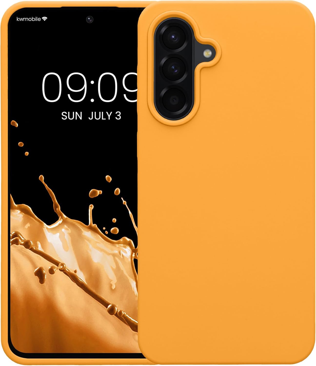 Силиконов калъф kwmobile, съвместим с Samsung Galaxy A56 5G - черен, с цвят на плодов портокал
