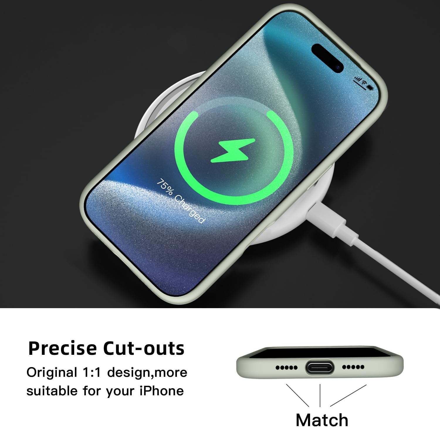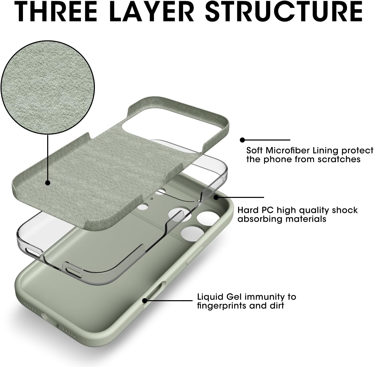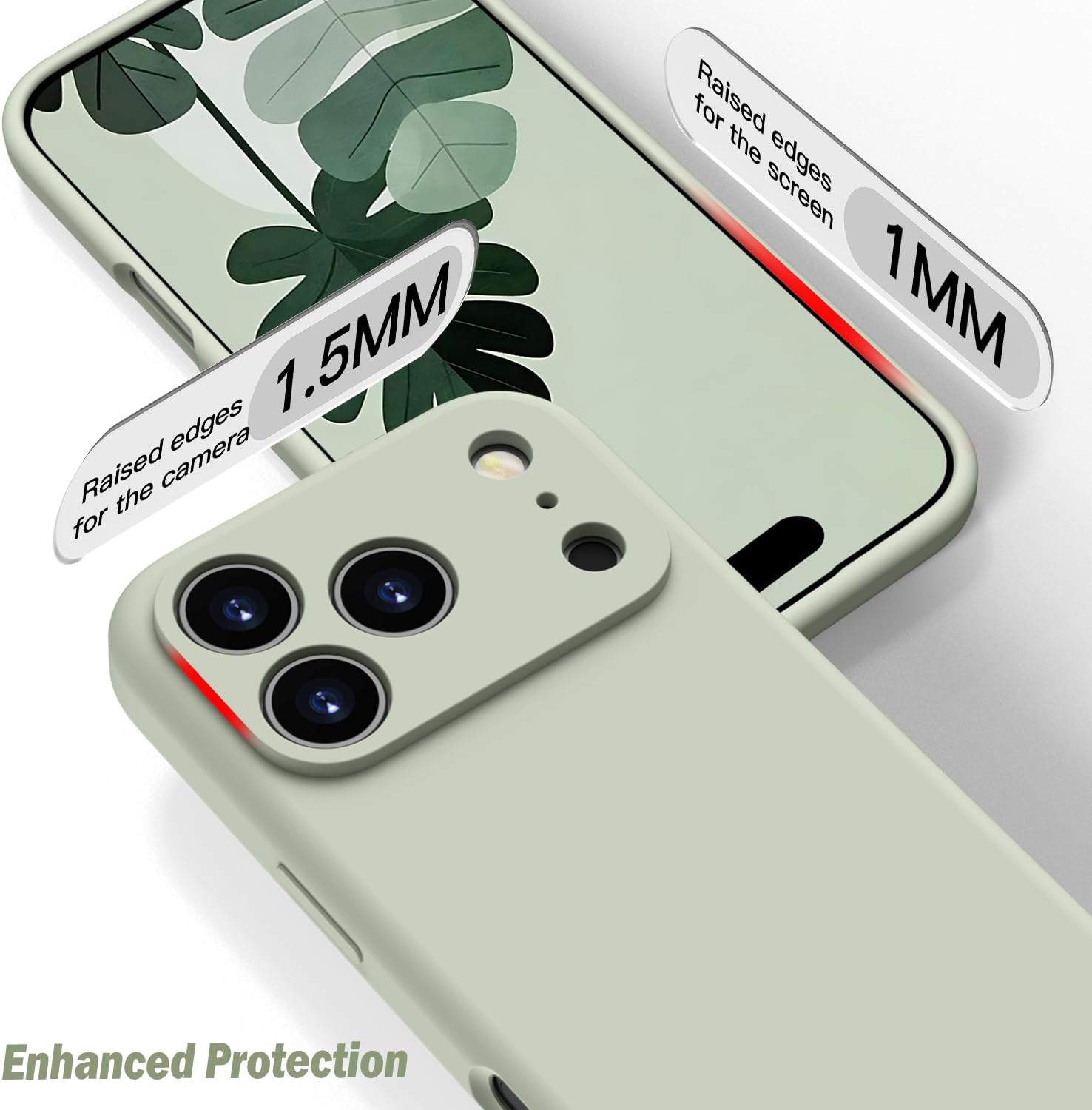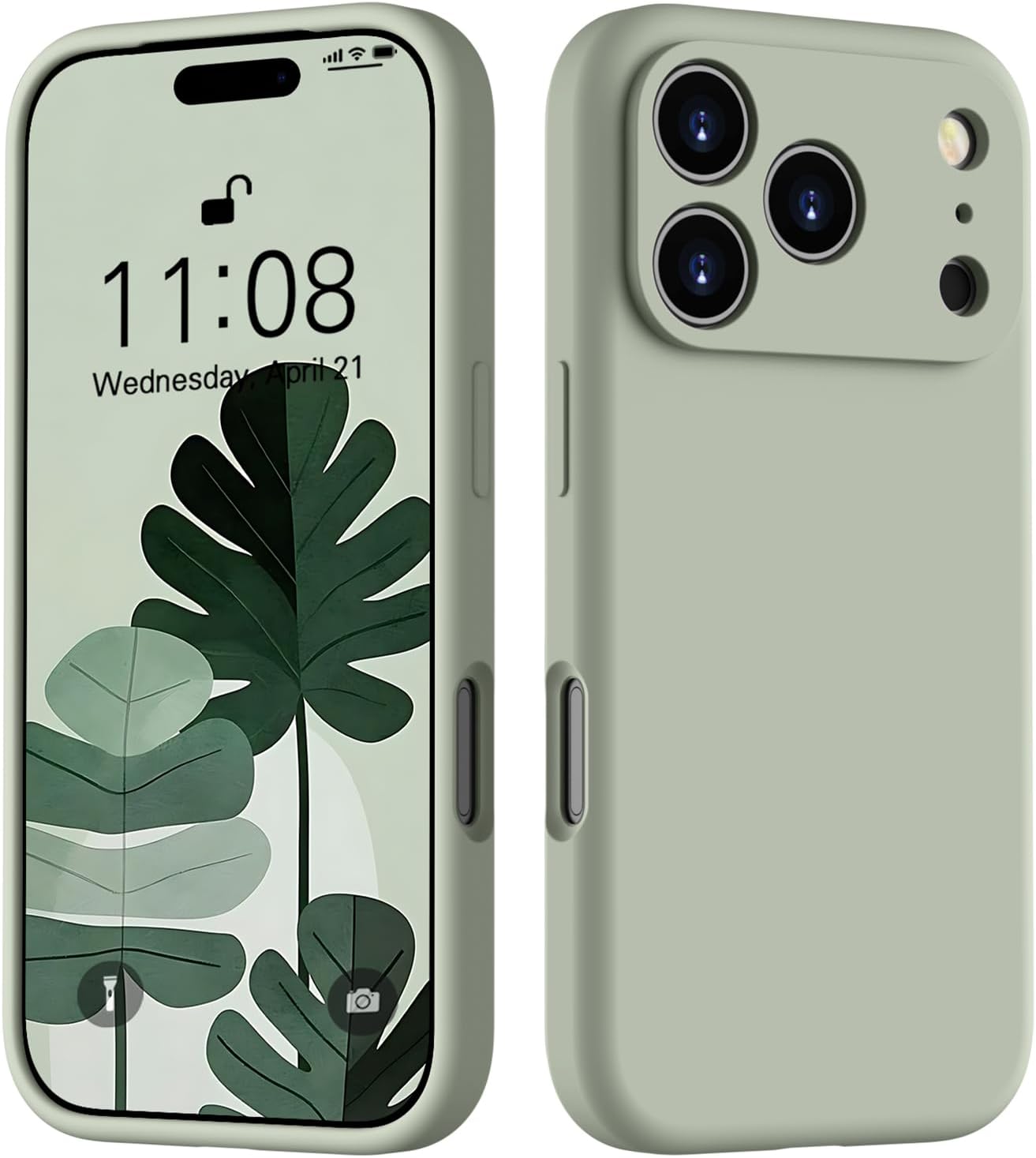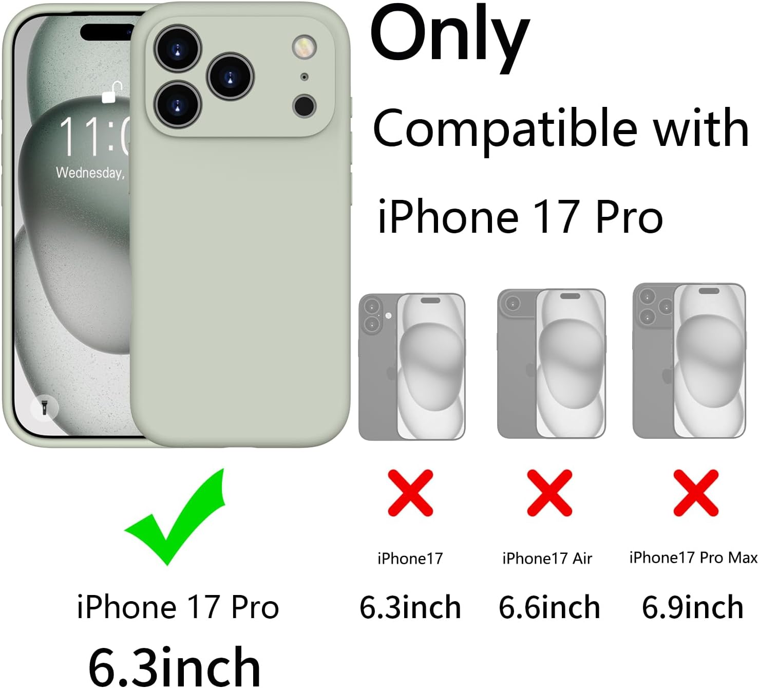 Силиконов калъф с течен HGH за iPhone 17 Pro, Калъф за мобилен телефон за iPhone 17 Pro, Тънък 3-слоен калъф за защита от падане с мека микрофибърна подплата, Матов калъф, 6,3 инча, Агаве зелено
