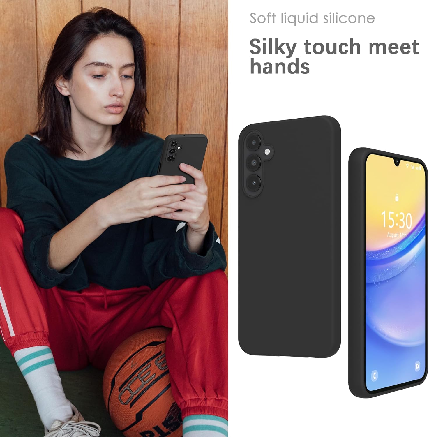 Силиконов калъф YATWIN за Samsung Galaxy A15, мек на допир, удароустойчив, прахоустойчив, защитен калъф за цялото тяло, черен