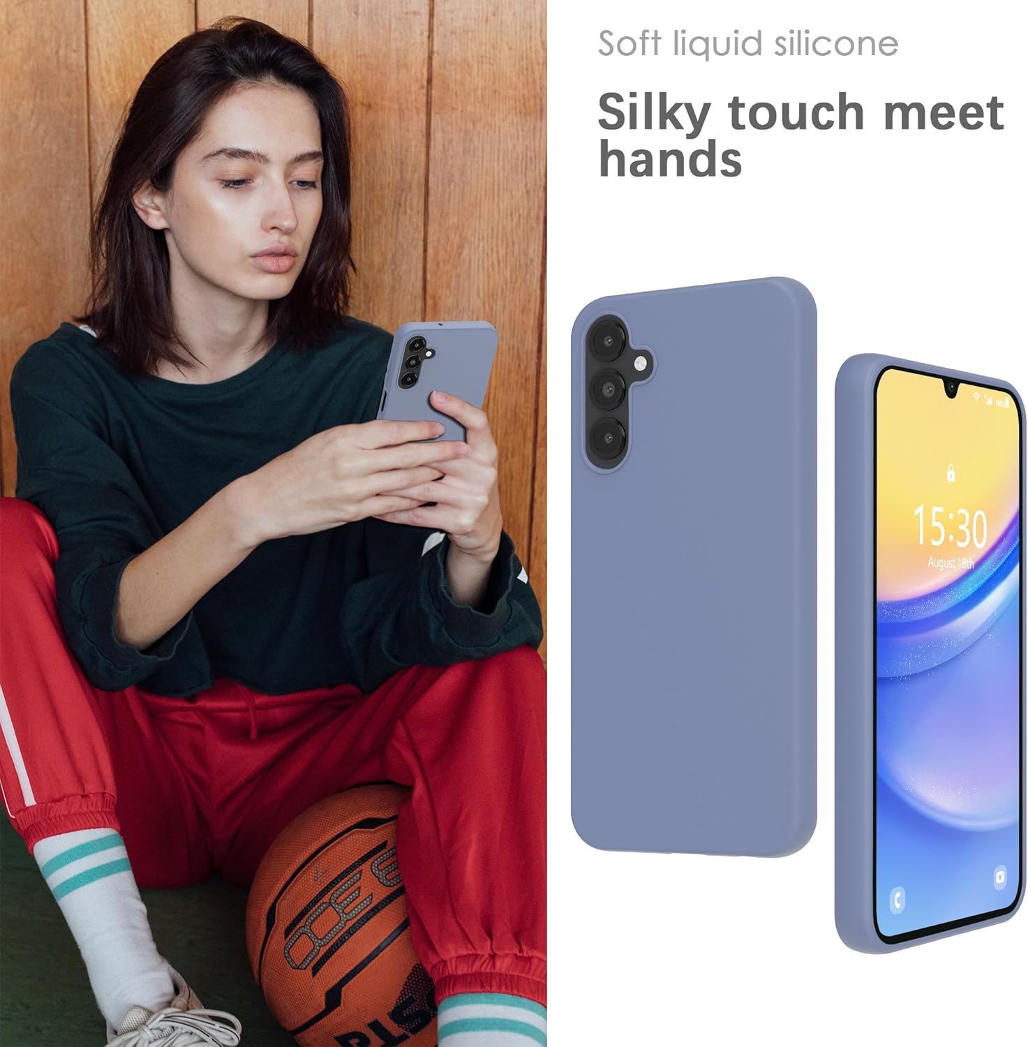 Силиконов калъф YATWIN за Samsung Galaxy A15, Soft Touch, Удароустойчив, Прахоустойчив, Защитен калъф за цялото тяло, Лавандулово сив