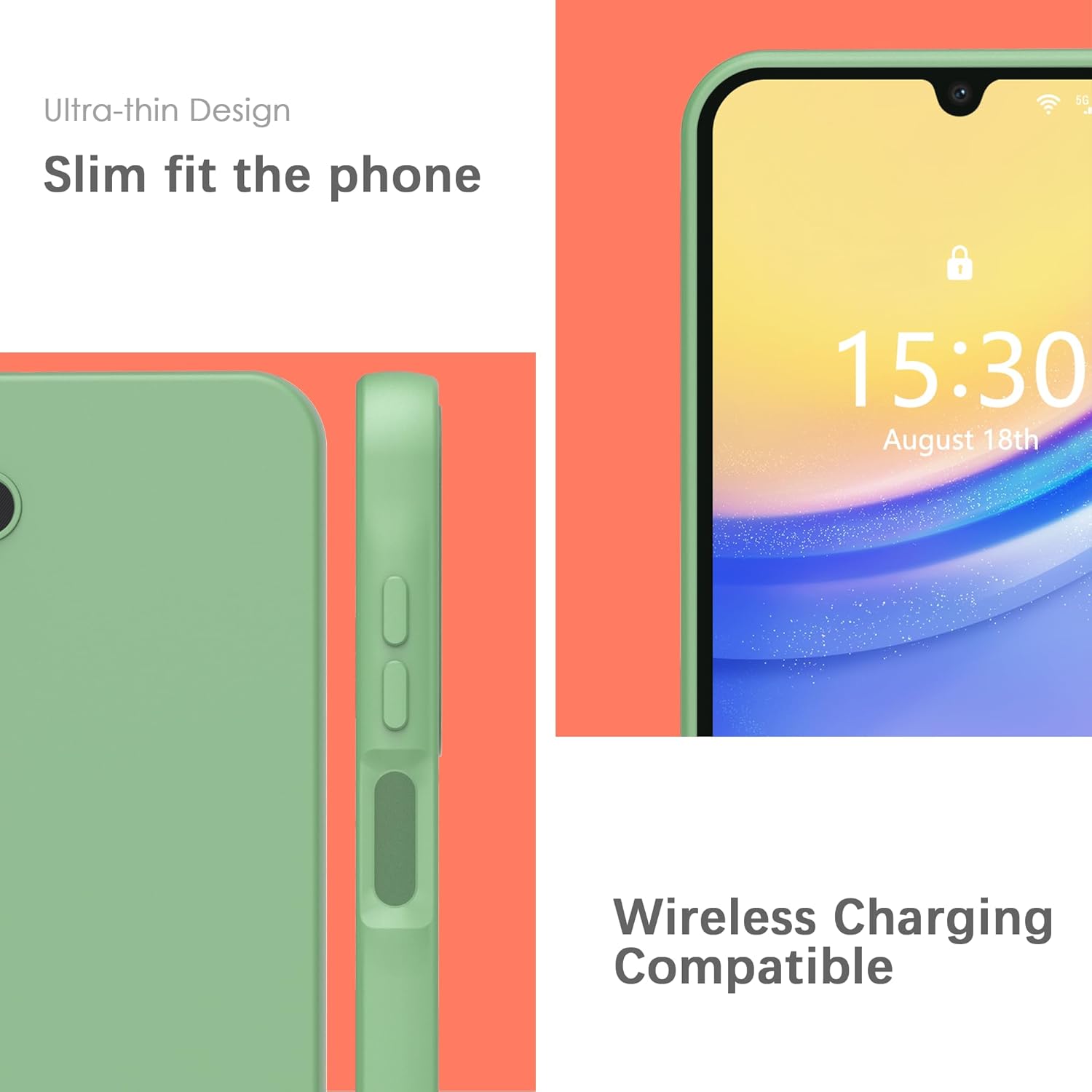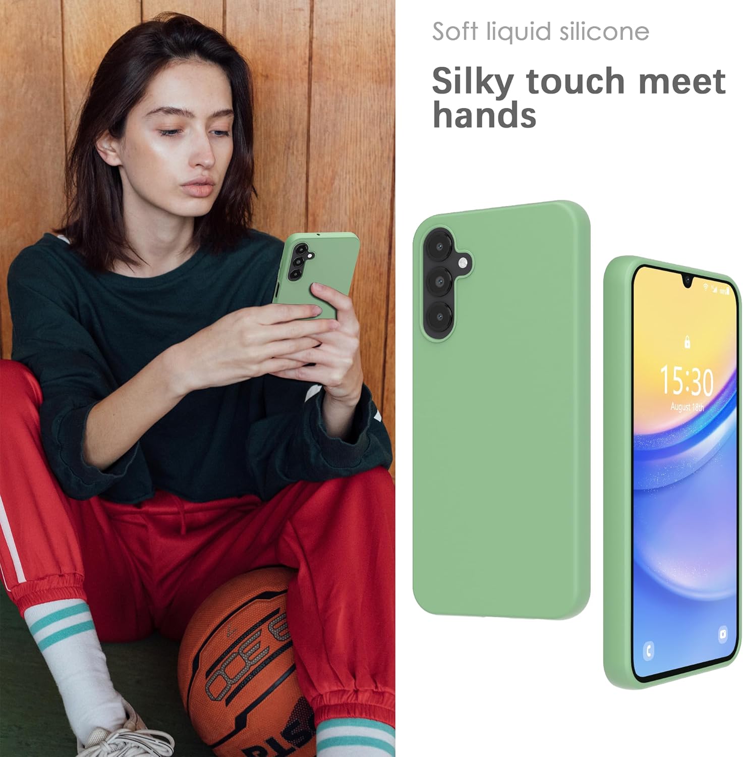 Силиконов калъф YATWIN за Samsung Galaxy A15, Soft Touch, Удароустойчив, Прахоустойчив, Защитен калъф за цялото тяло, Ментово зелен