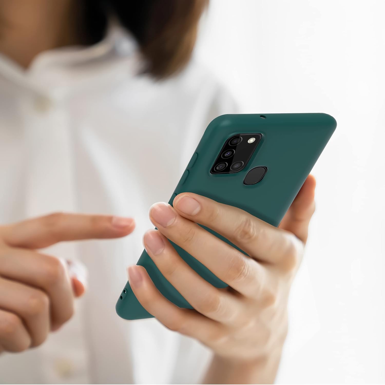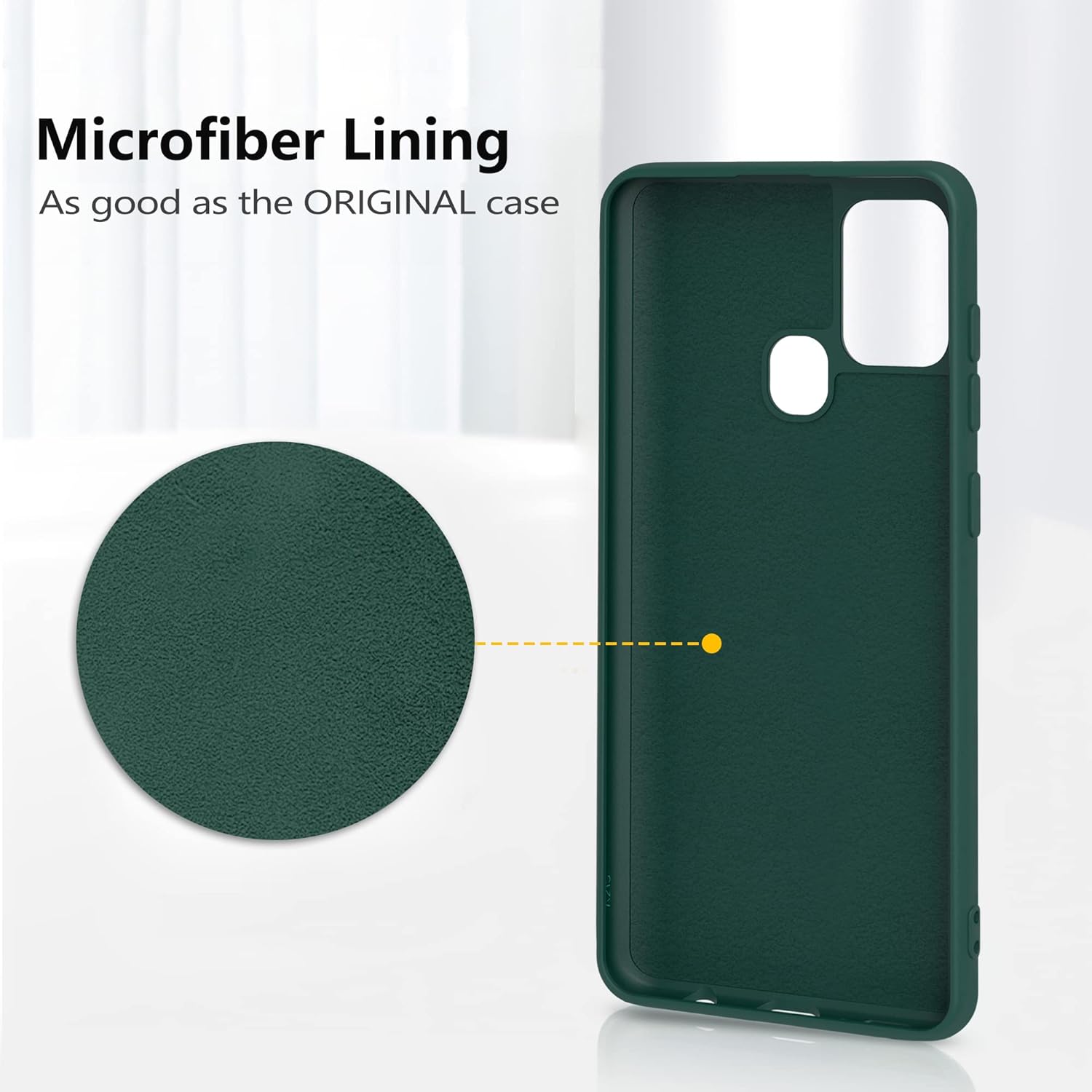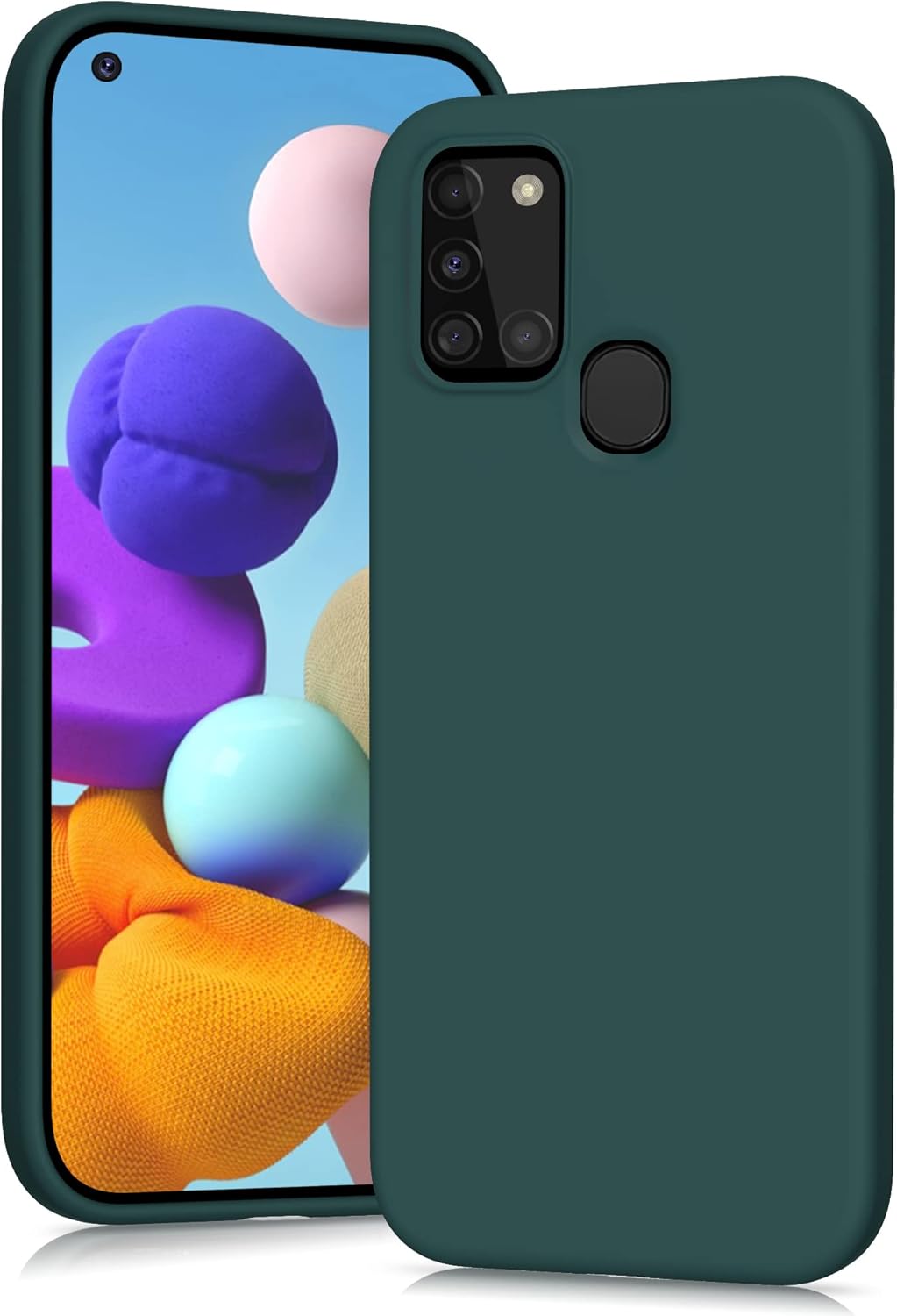 Силиконов калъф YATWIN за Samsung Galaxy A21s, Soft Touch, Удароустойчив, Прахоустойчив, Защитен калъф за цялото тяло, Тъмнозелен