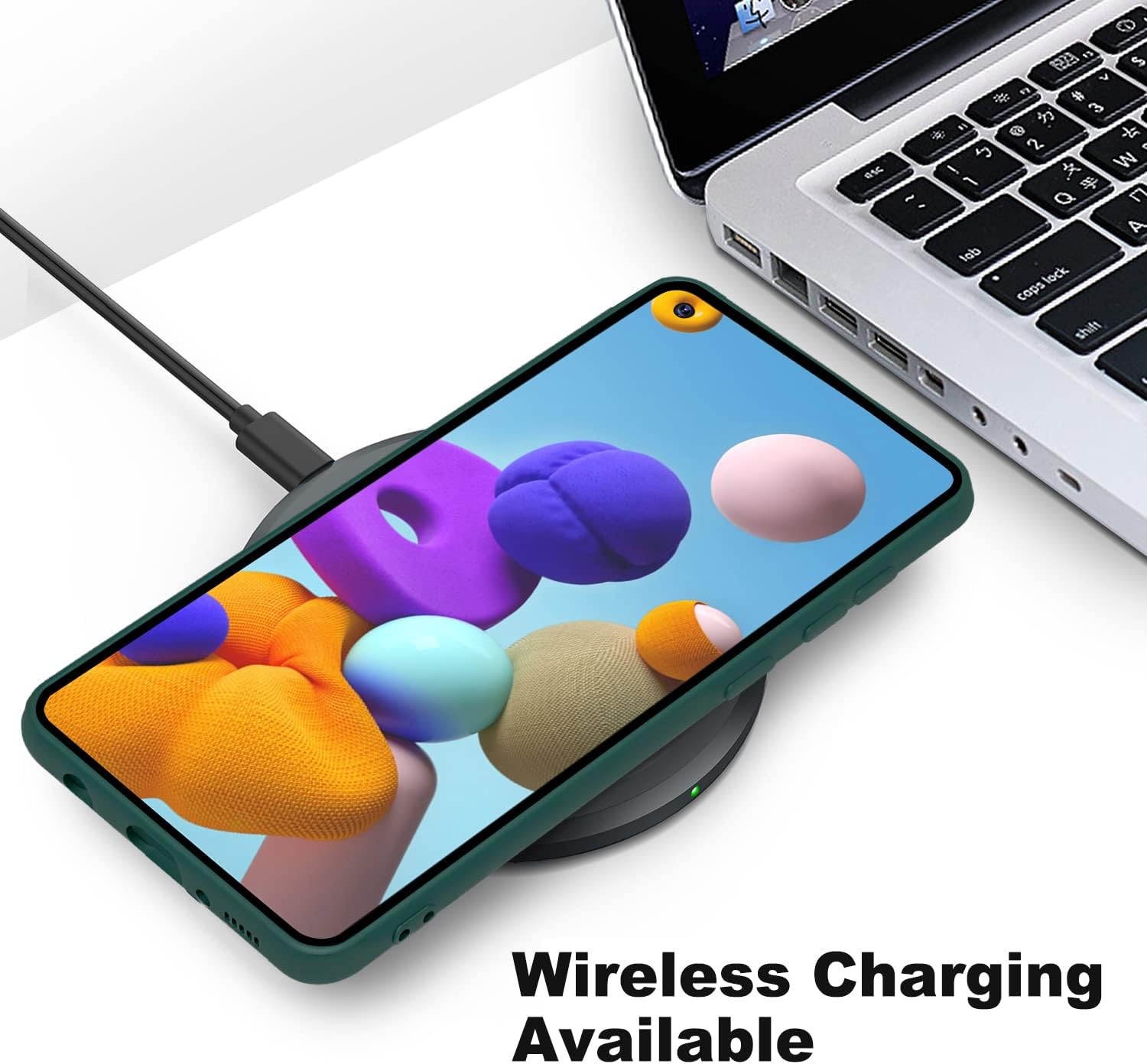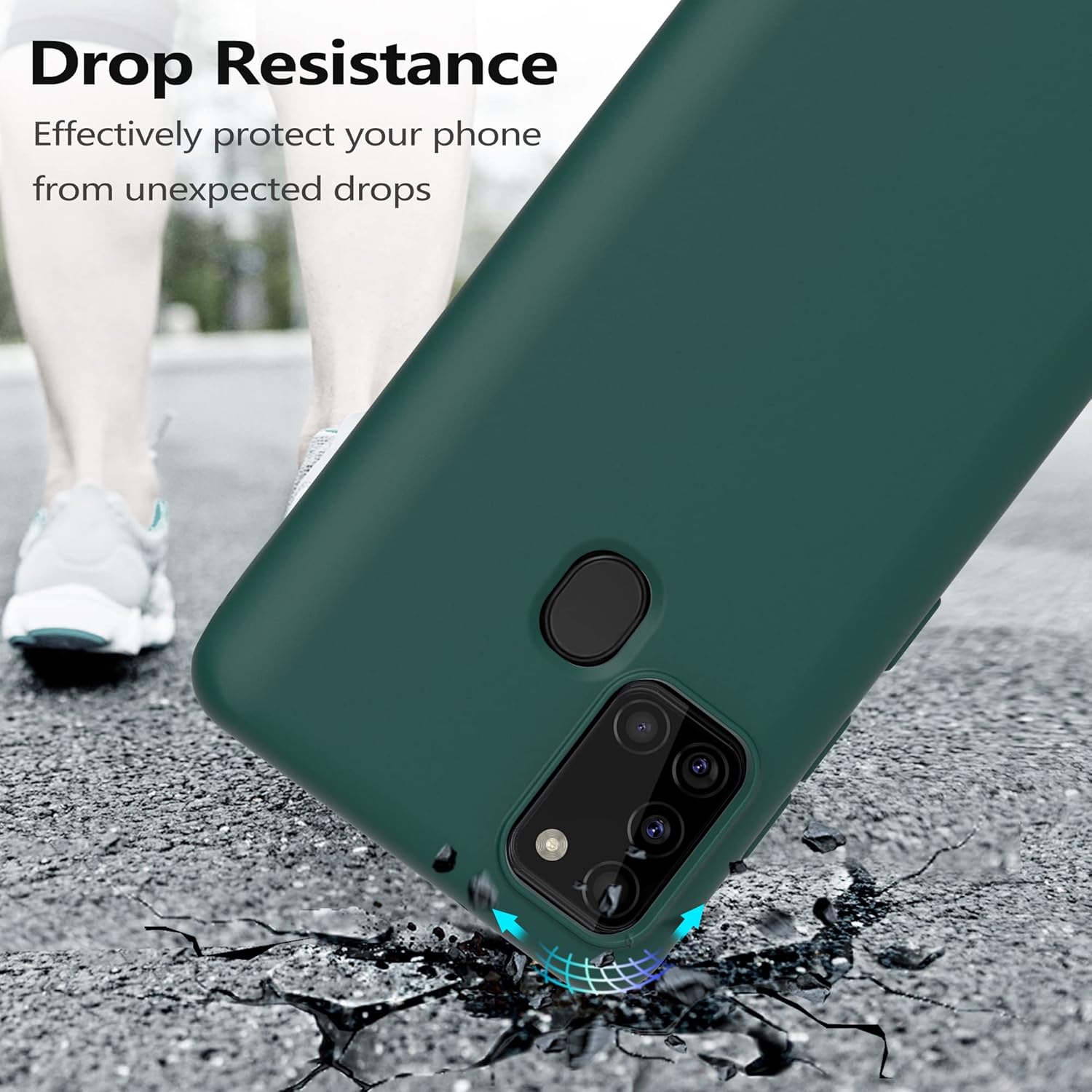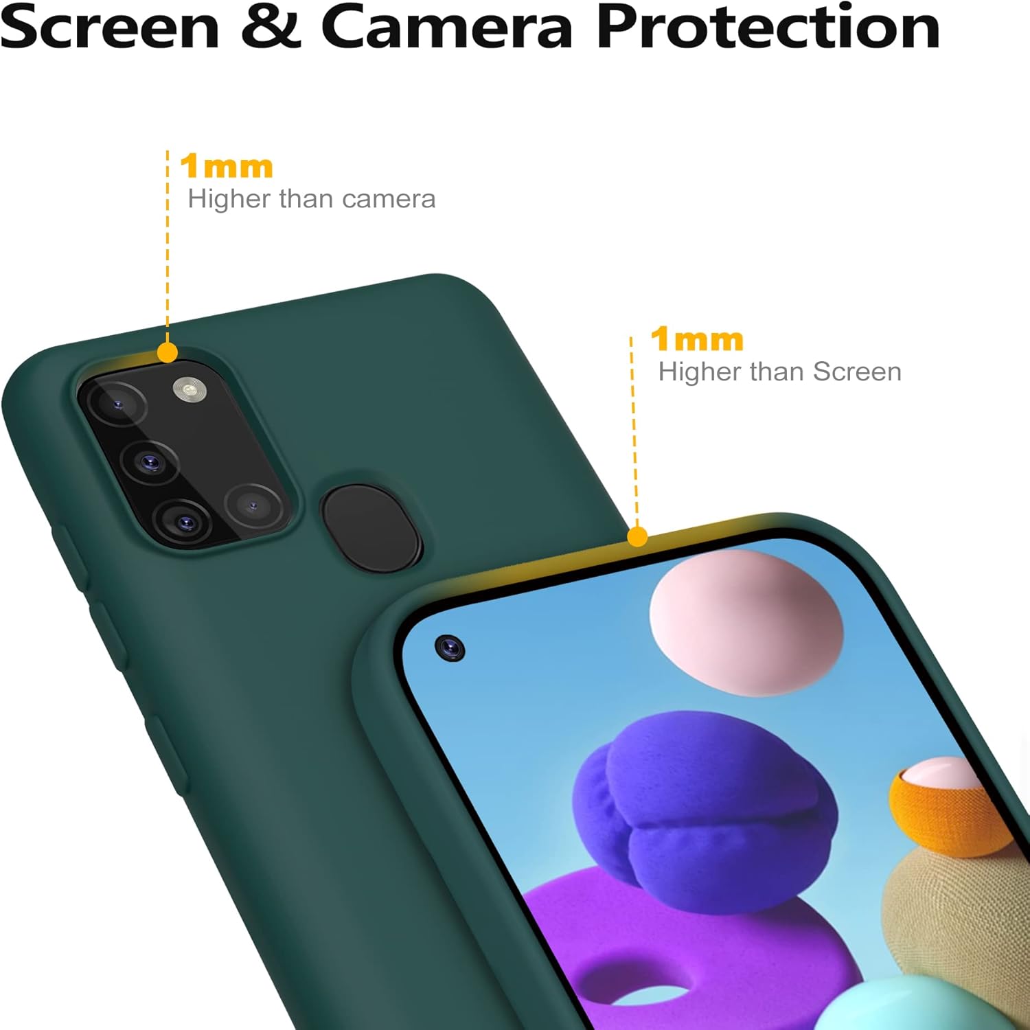 Силиконов калъф YATWIN за Samsung Galaxy A21s, Soft Touch, Удароустойчив, Прахоустойчив, Защитен калъф за цялото тяло, Тъмнозелен