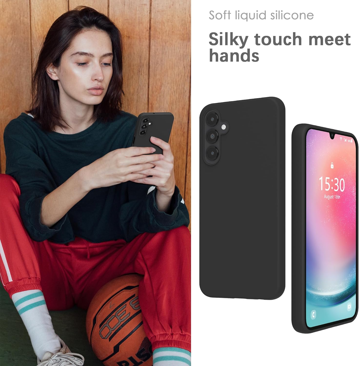 Силиконов калъф YATWIN за Samsung Galaxy A24 4G, Soft Touch, Удароустойчив, Прахоустойчив, Защитен калъф за цялото тяло, Черен