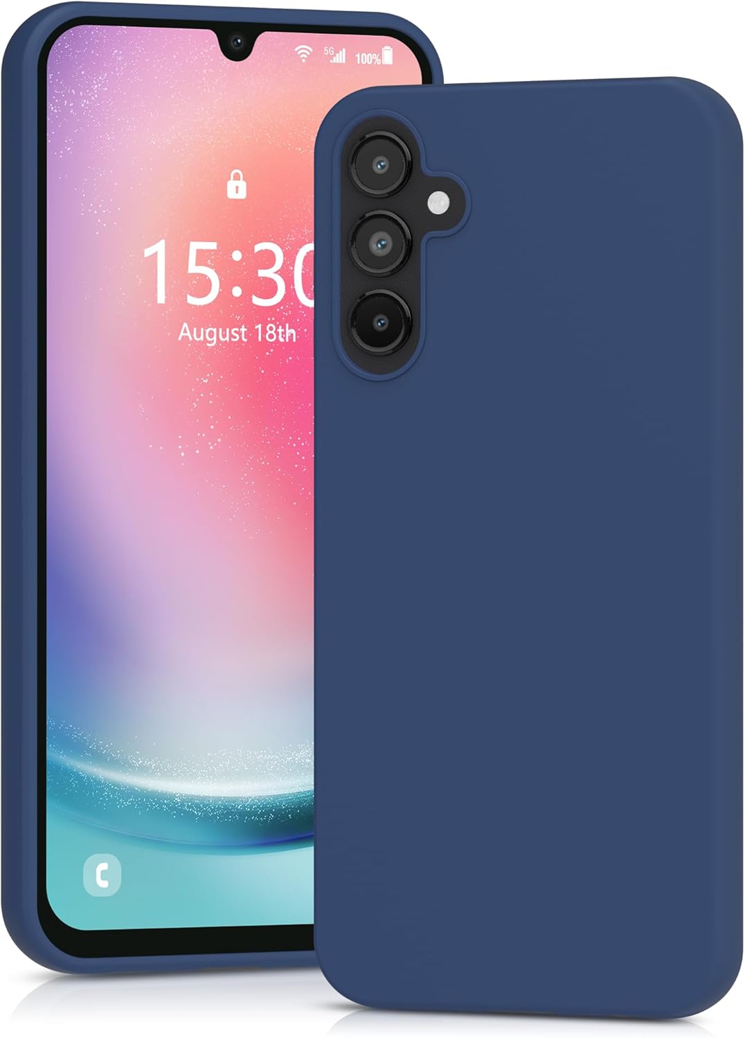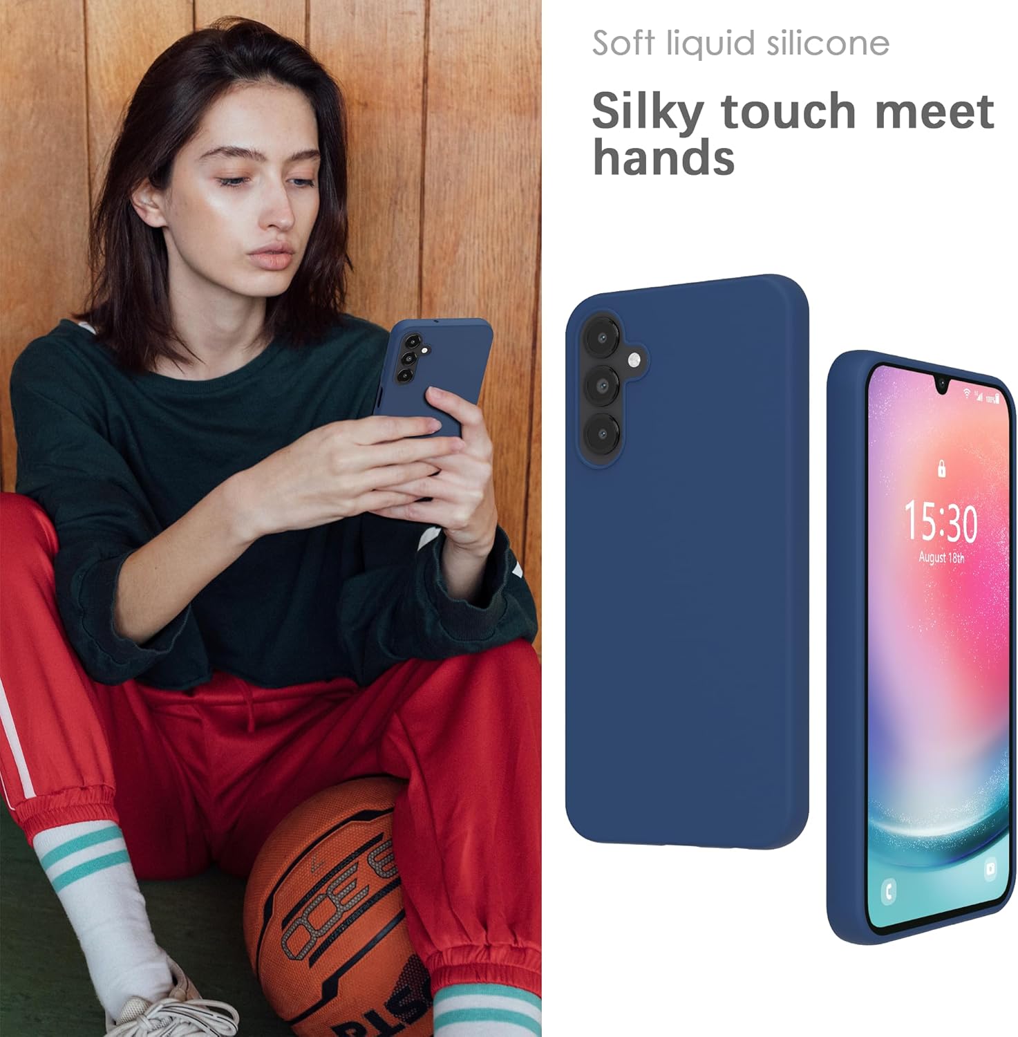 Силиконов калъф YATWIN за Samsung Galaxy A24 4G, Soft Touch, Удароустойчив, Прахоустойчив, Защитен калъф за цялото тяло, Син