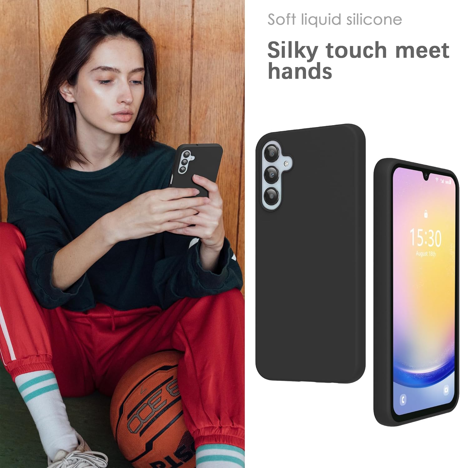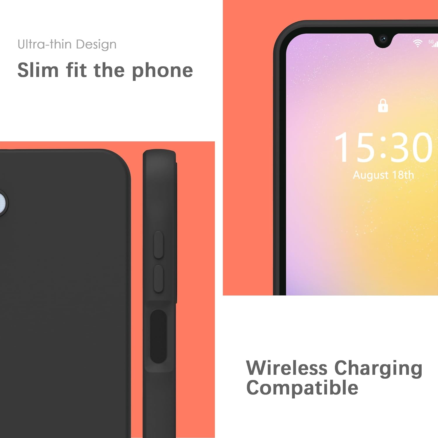 Силиконов калъф YATWIN за Samsung Galaxy A25 5G, Soft Touch, Удароустойчив, Прахоустойчив, Защитен калъф за цялото тяло, Черен