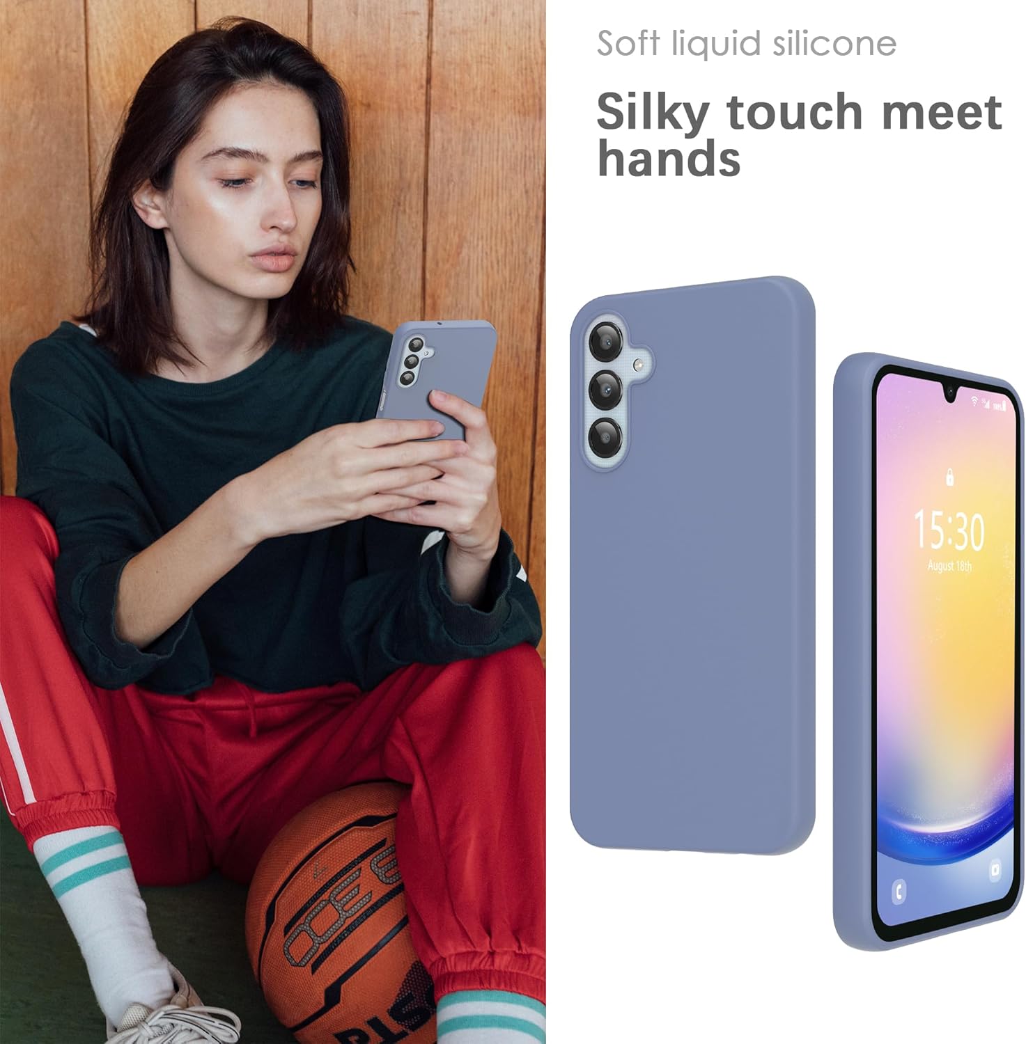 Силиконов калъф YATWIN за Samsung Galaxy A25 5G, Soft Touch, Удароустойчив, Прахоустойчив, Защитен калъф за цялото тяло, Лавандулово сив