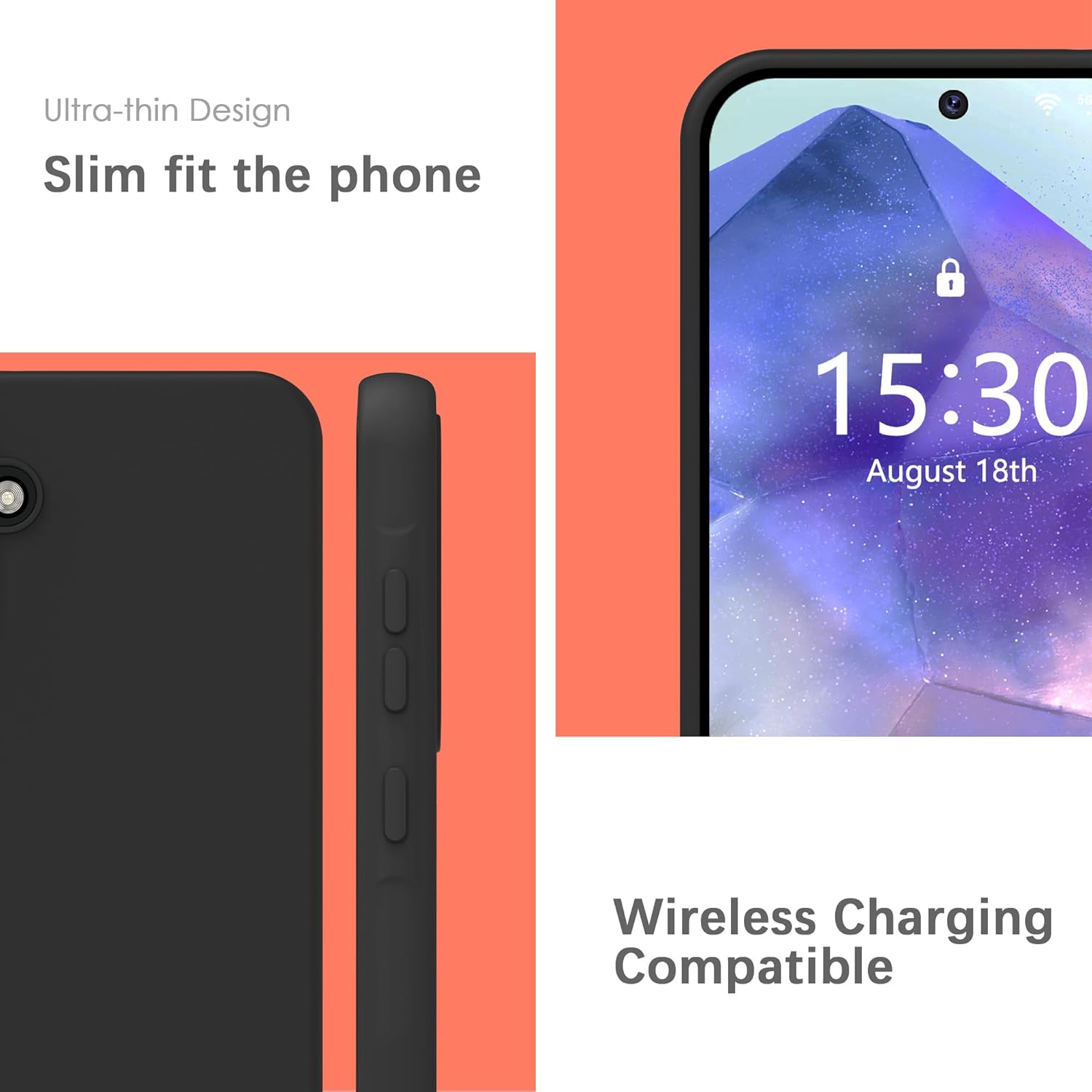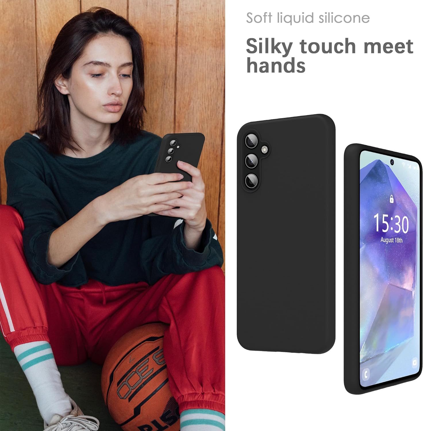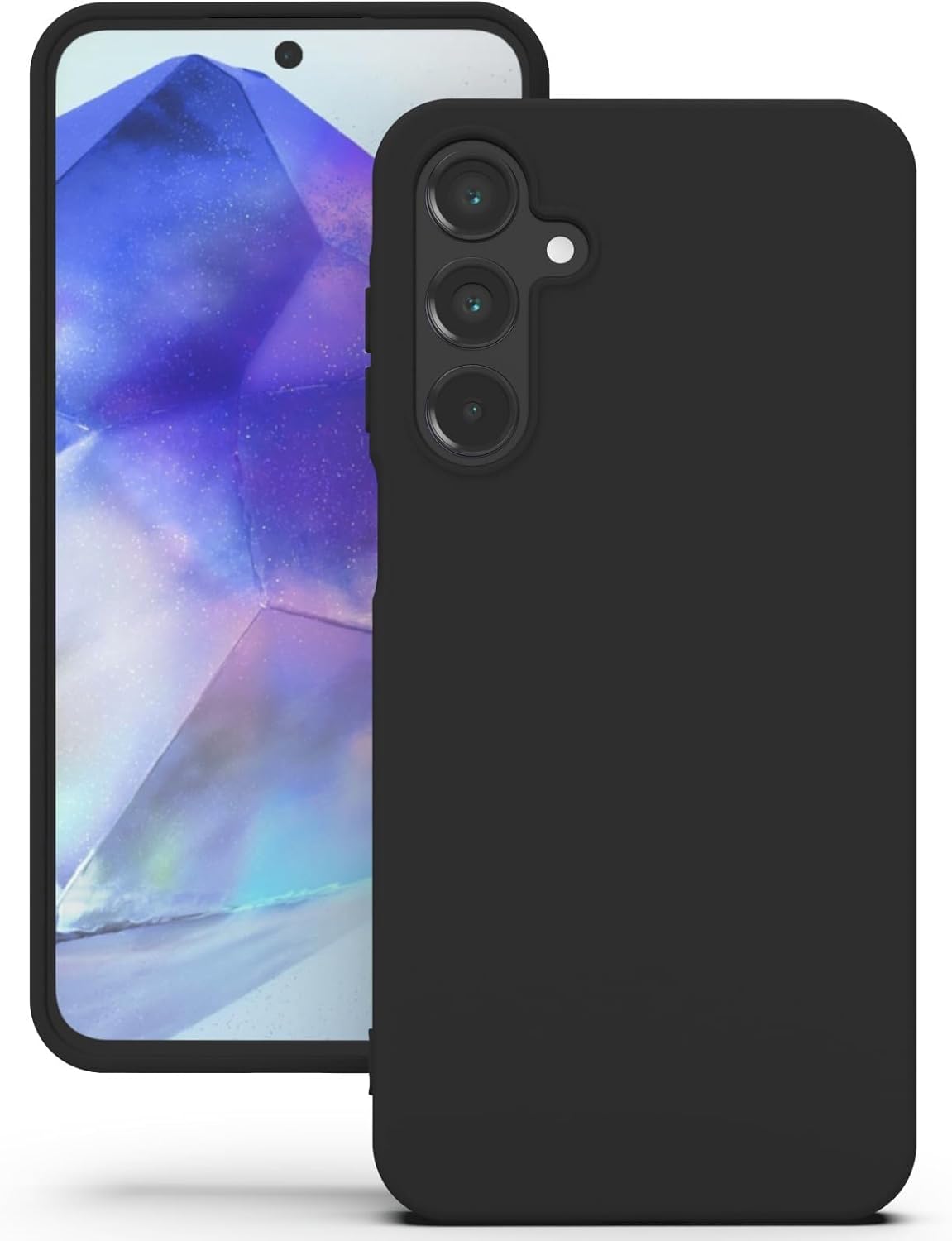 Силиконов калъф YATWIN за Samsung Galaxy A55 5G, Soft Touch, Удароустойчив, Прахоустойчив, Защитен калъф за цялото тяло, Черен