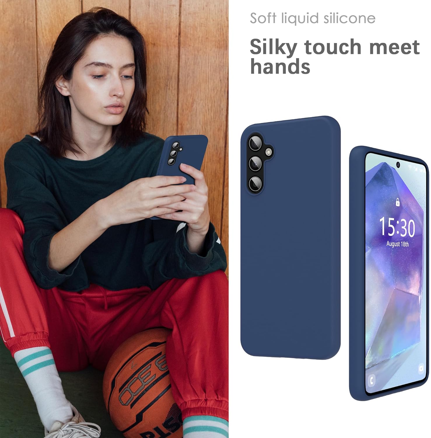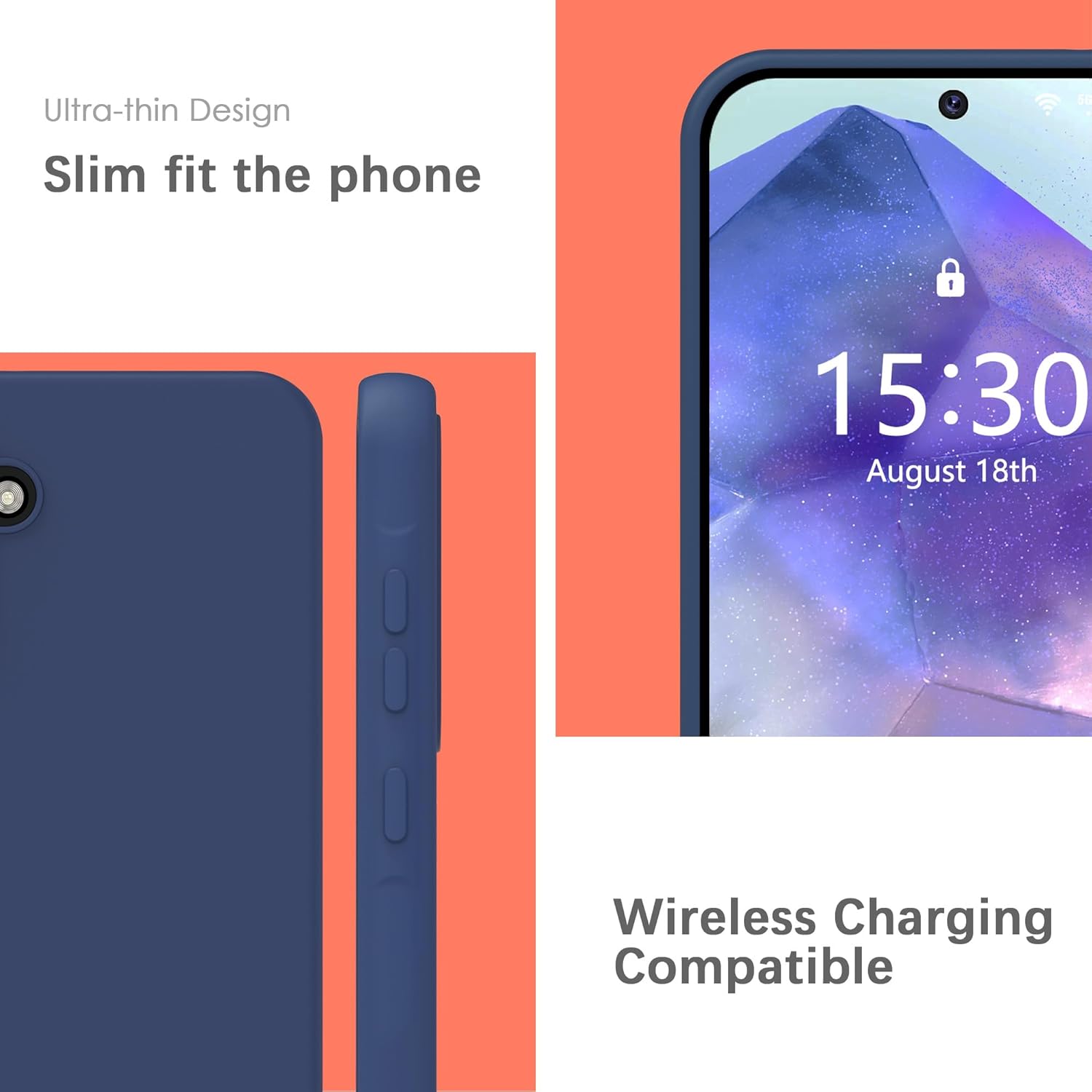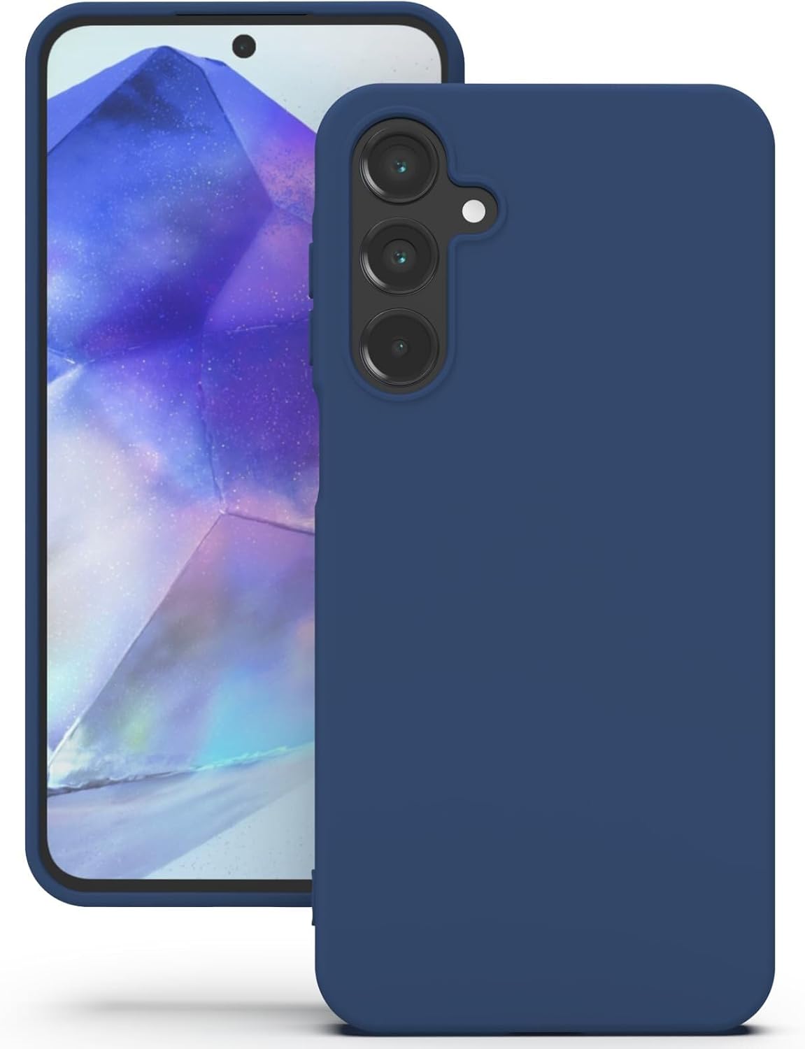 Силиконов калъф YATWIN за Samsung Galaxy A55 5G, Soft Touch, Удароустойчив, Прахоустойчив, Защитен калъф за цялото тяло, Син