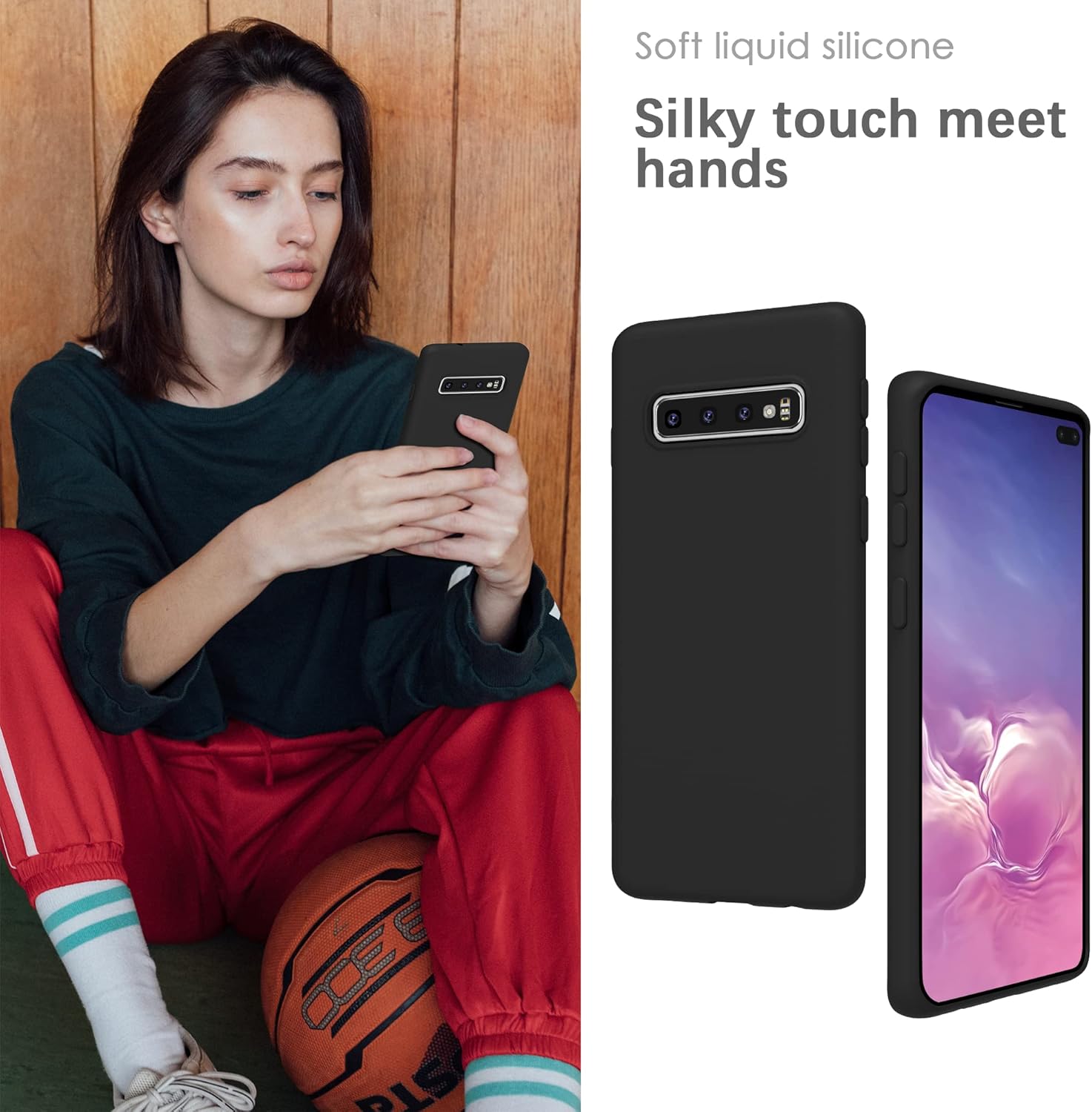 Силиконов калъф YATWIN за Samsung Galaxy S10 Plus, мек на допир, удароустойчив, прахоустойчив, защитен калъф за цялото тяло, черен