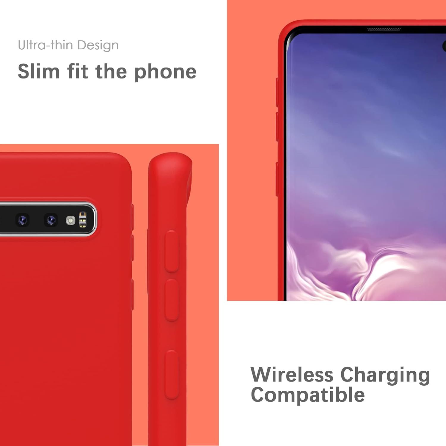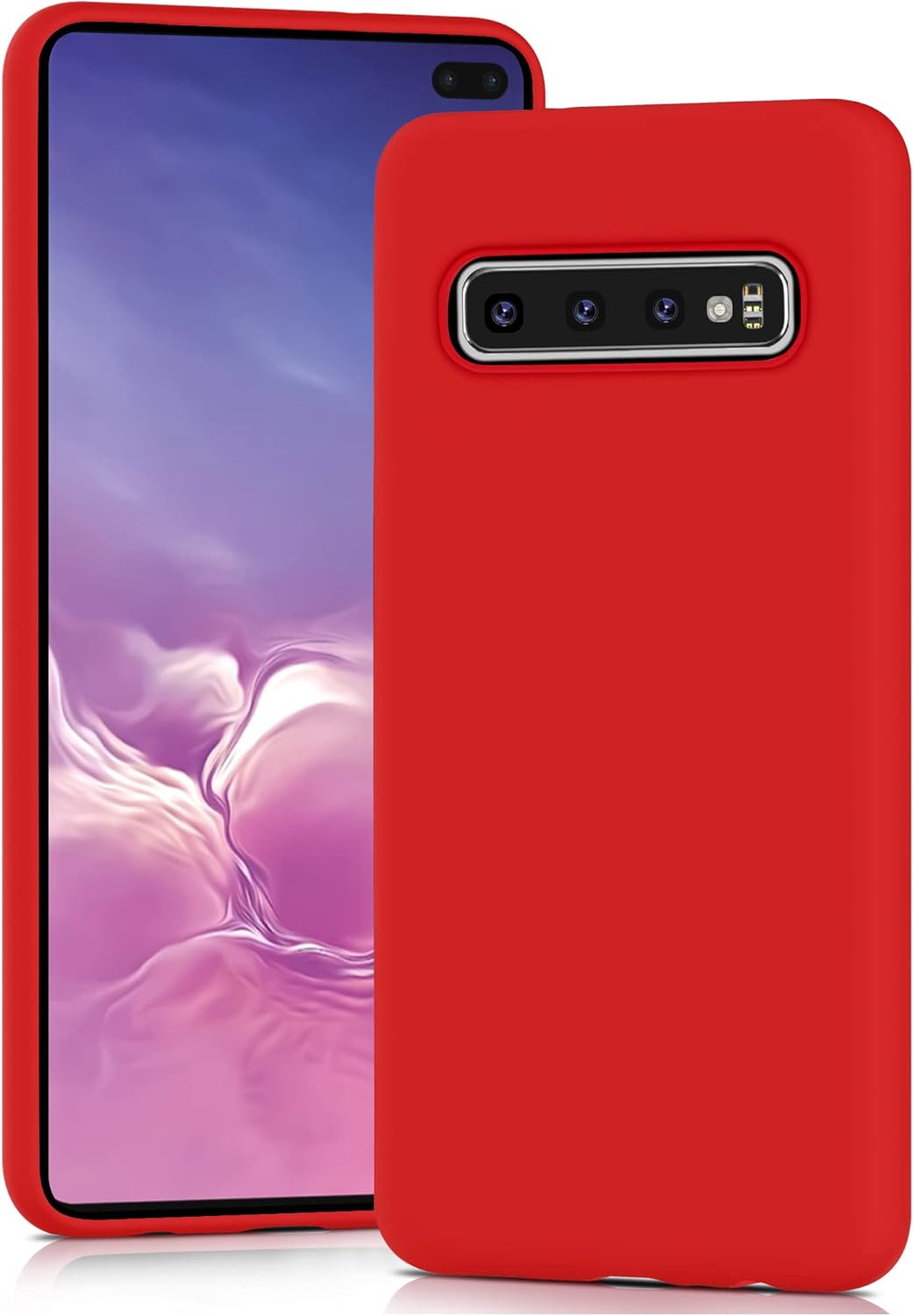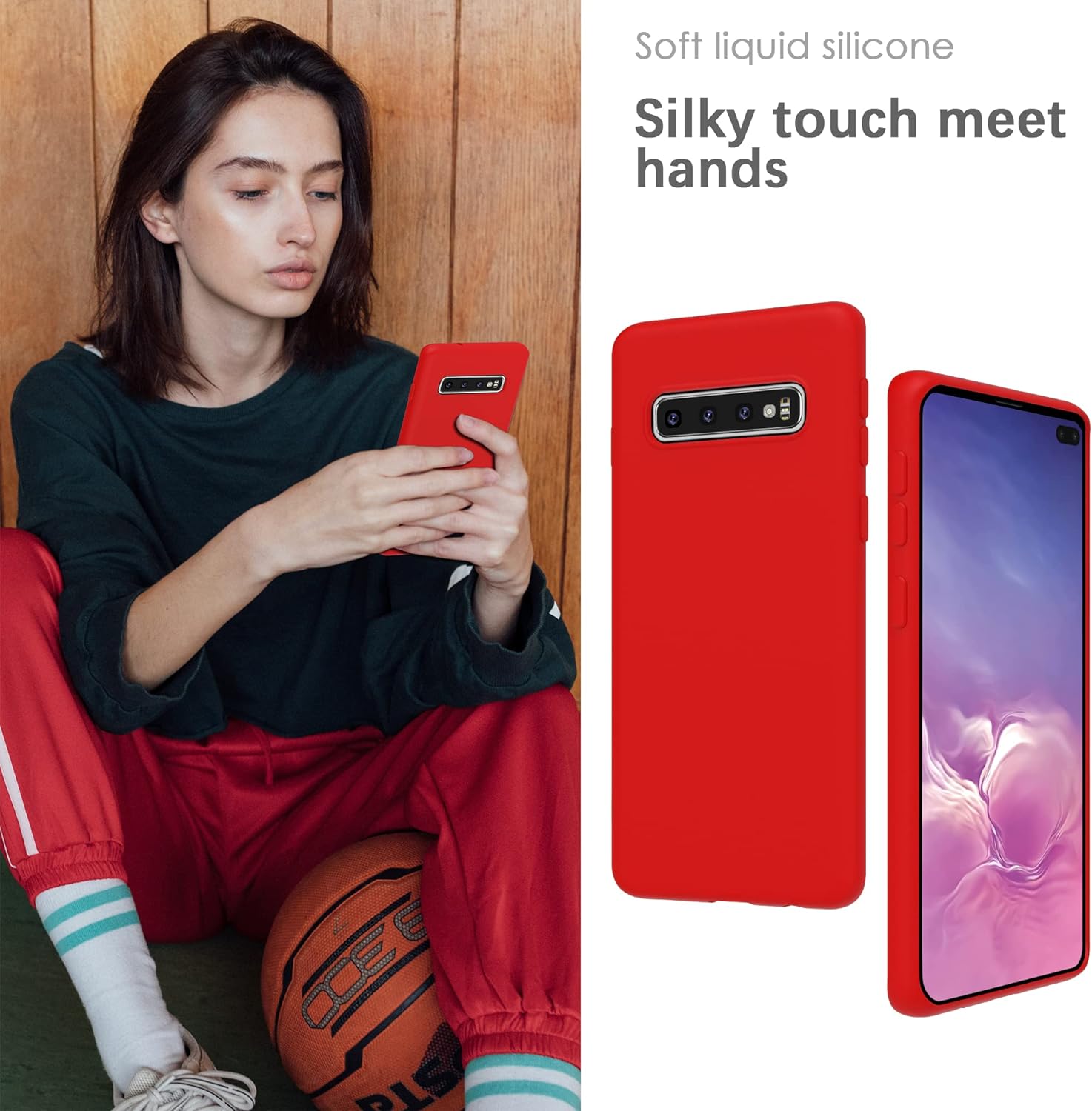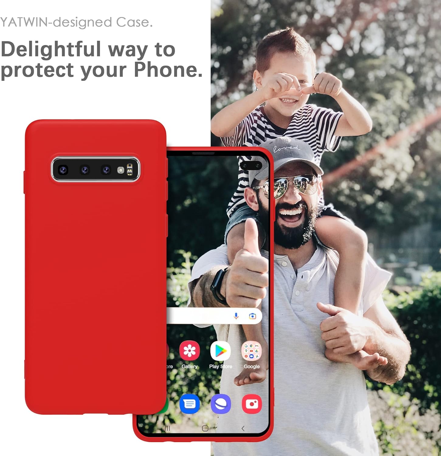 Силиконов калъф YATWIN за Samsung Galaxy S10 Plus, мек на допир, удароустойчив, прахоустойчив, защитен калъф за цялото тяло, червен