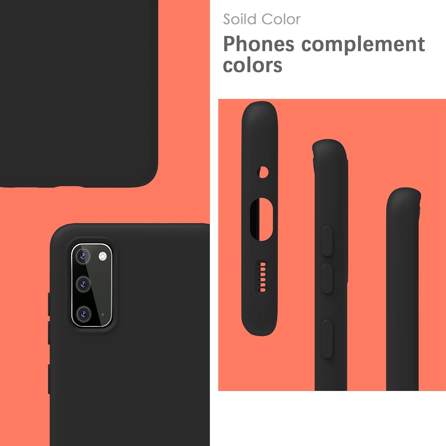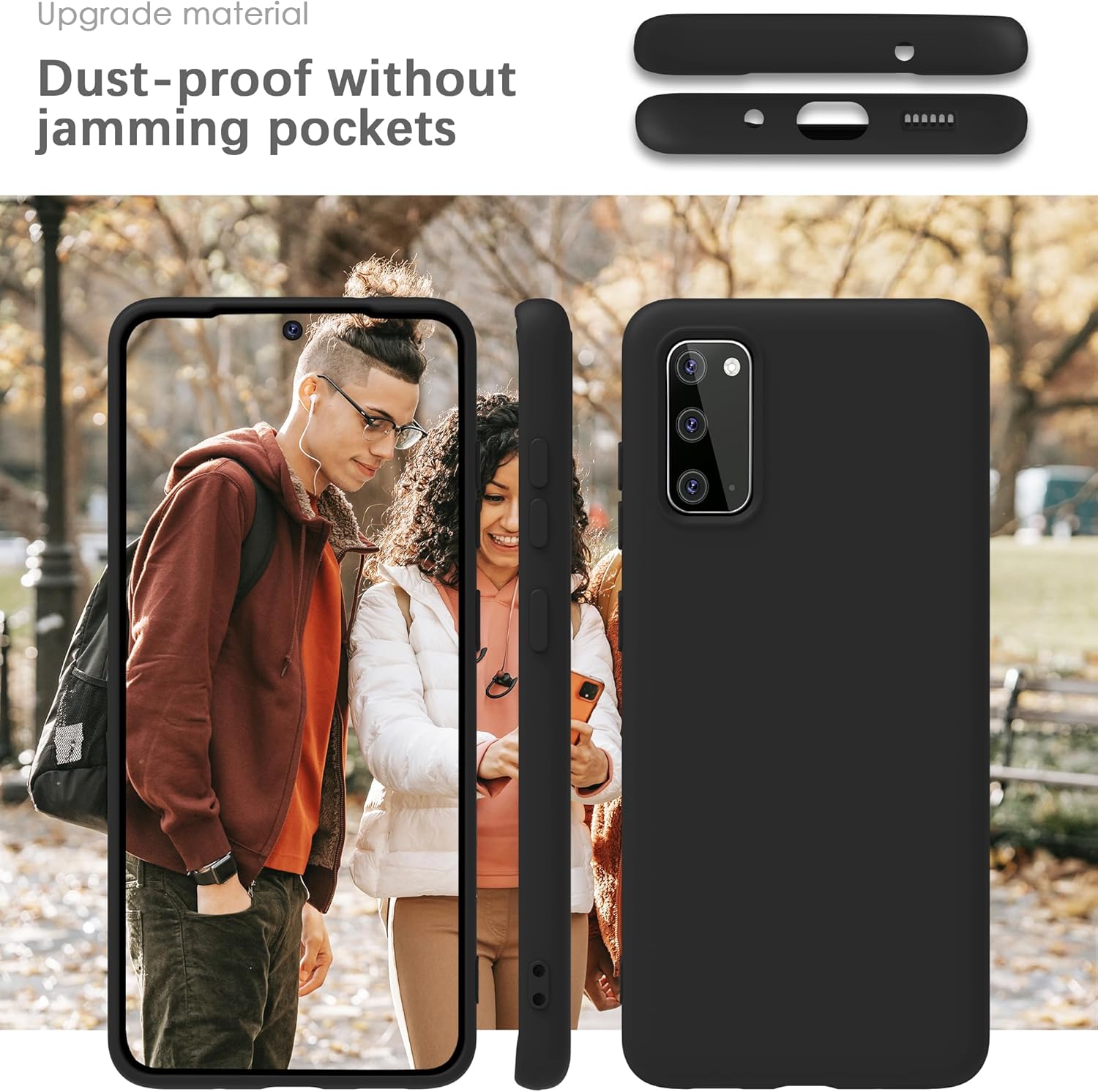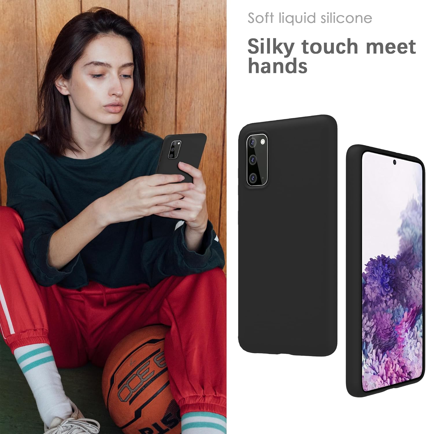 Силиконов калъф YATWIN за Samsung Galaxy S20, мек на допир, удароустойчив, прахоустойчив, защитен калъф за цялото тяло, черен
