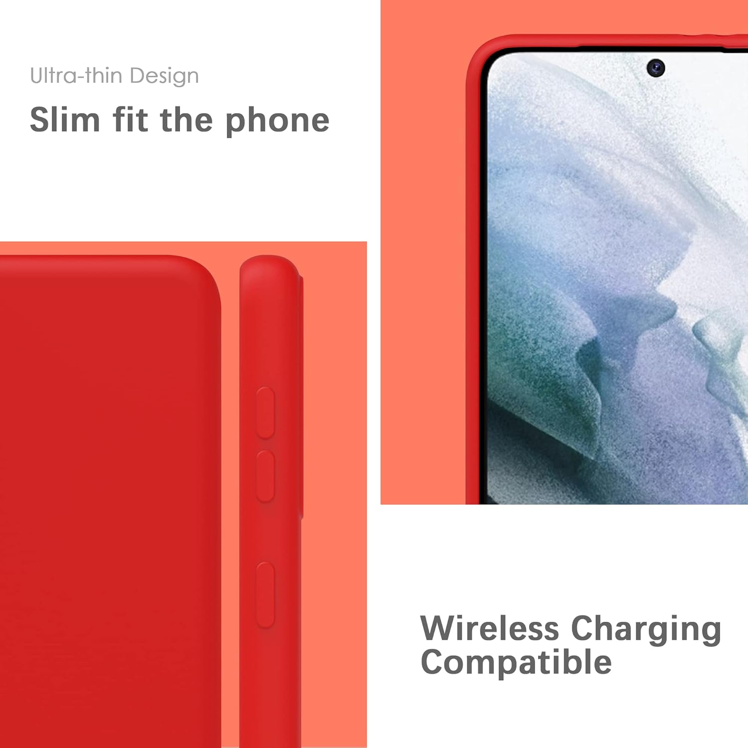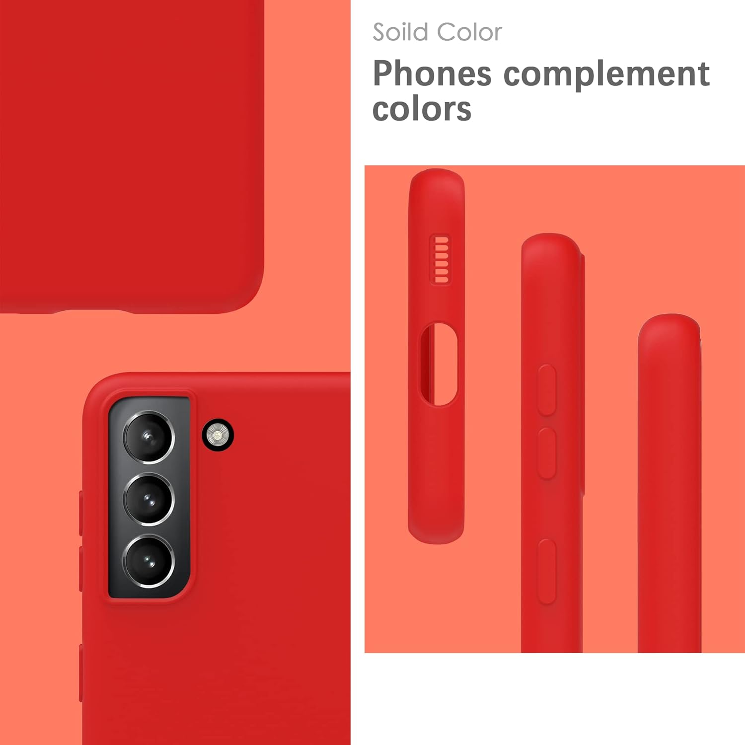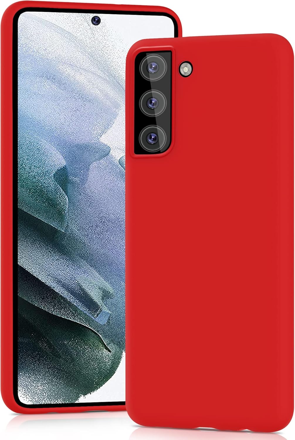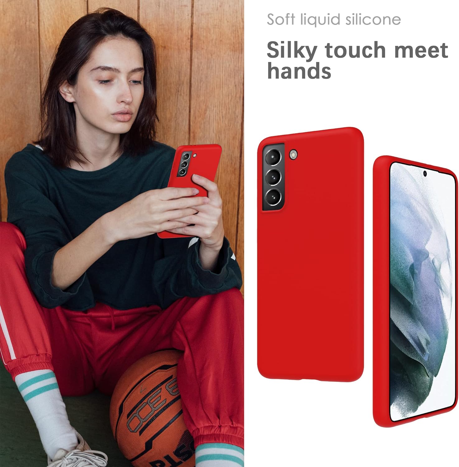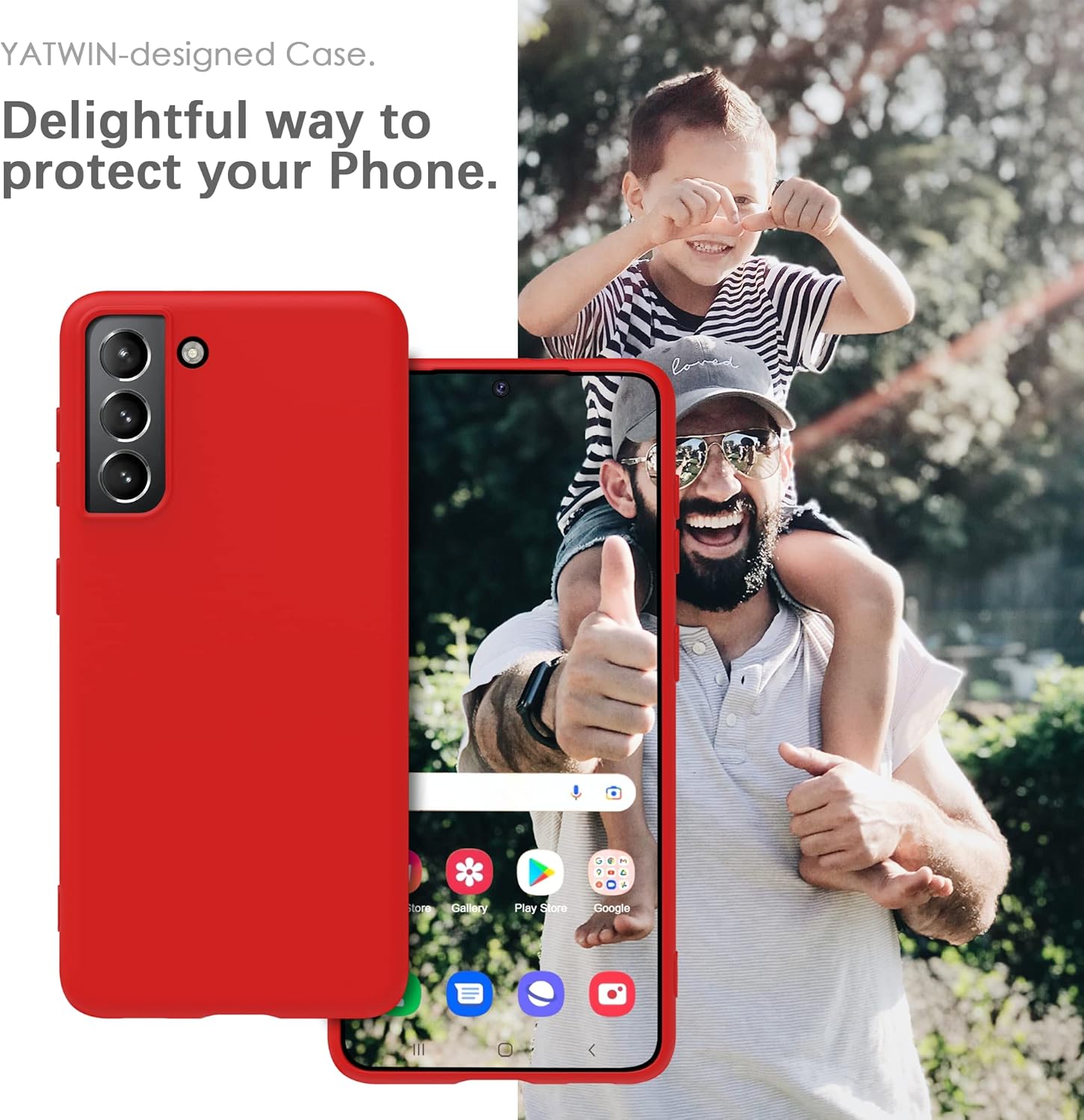 Силиконов калъф YATWIN за Samsung Galaxy S21 5G, Soft Touch, Удароустойчив, Прахоустойчив, Защитен калъф за цялото тяло, Червен