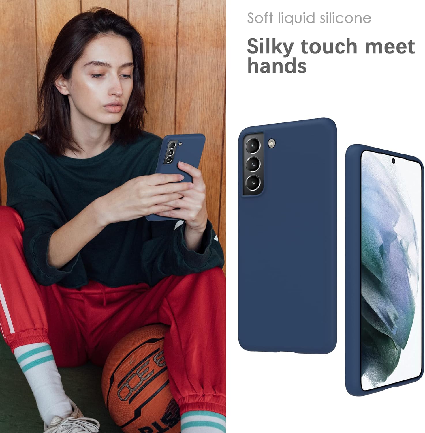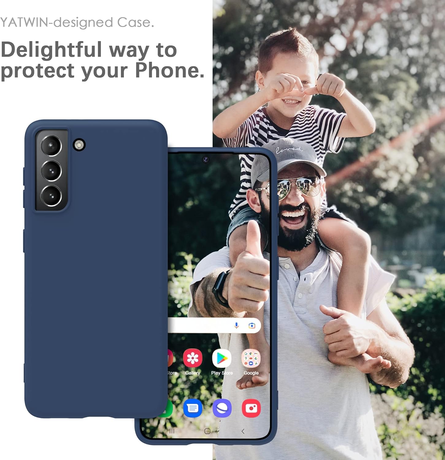 Силиконов калъф YATWIN за Samsung Galaxy S21 5G, Soft Touch, Удароустойчив, Прахоустойчив, Защитен калъф за цялото тяло, Син