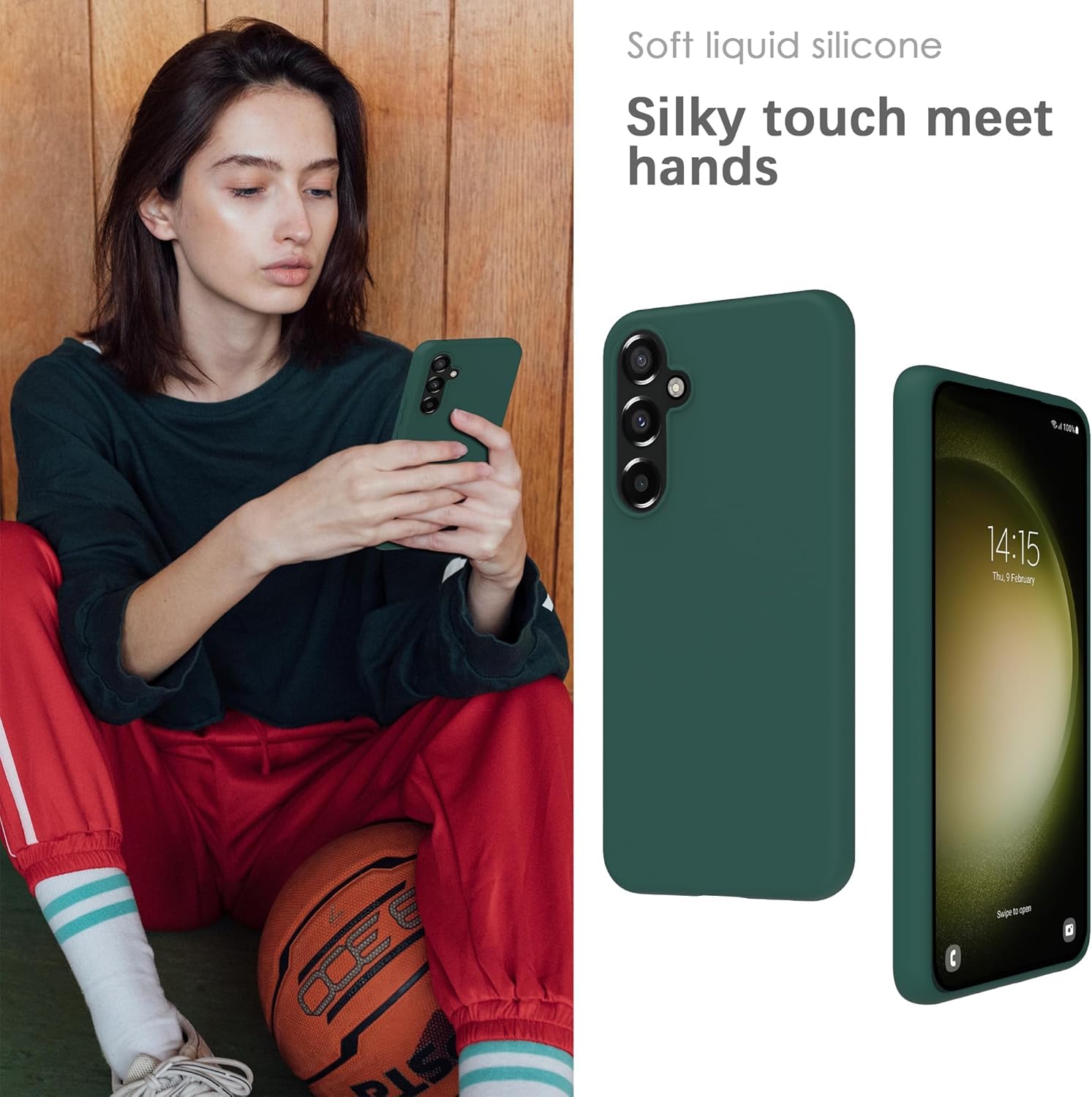 Силиконов калъф YATWIN за Samsung Galaxy S23 FE, Soft Touch, Удароустойчив, Прахоустойчив, Защитен калъф за цялото тяло, Зелен