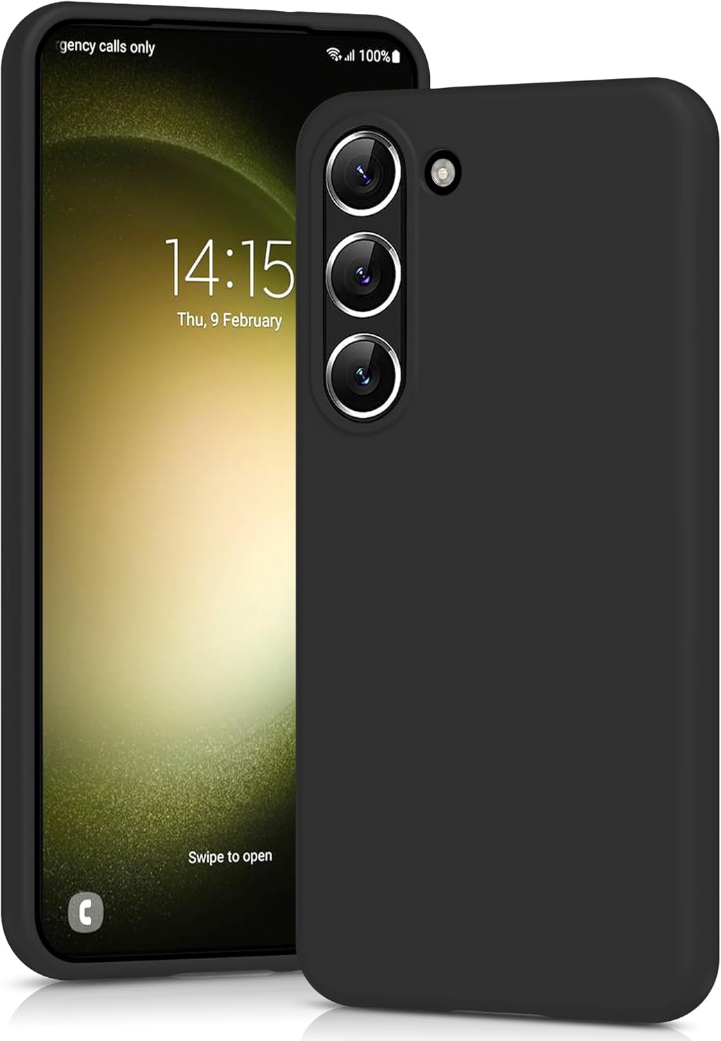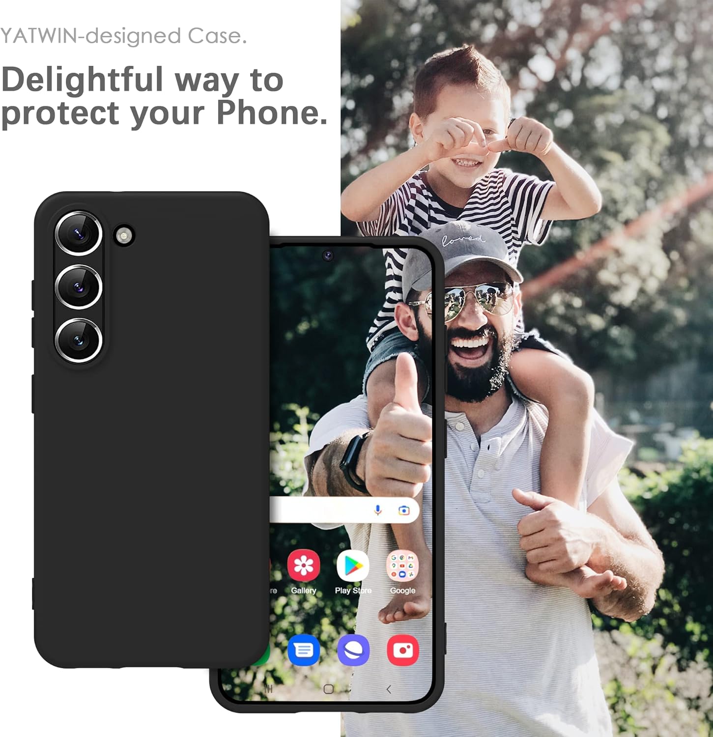 Силиконов калъф YATWIN за Samsung Galaxy S23, мек на допир, удароустойчив, прахоустойчив, защитен калъф за цялото тяло, черен
