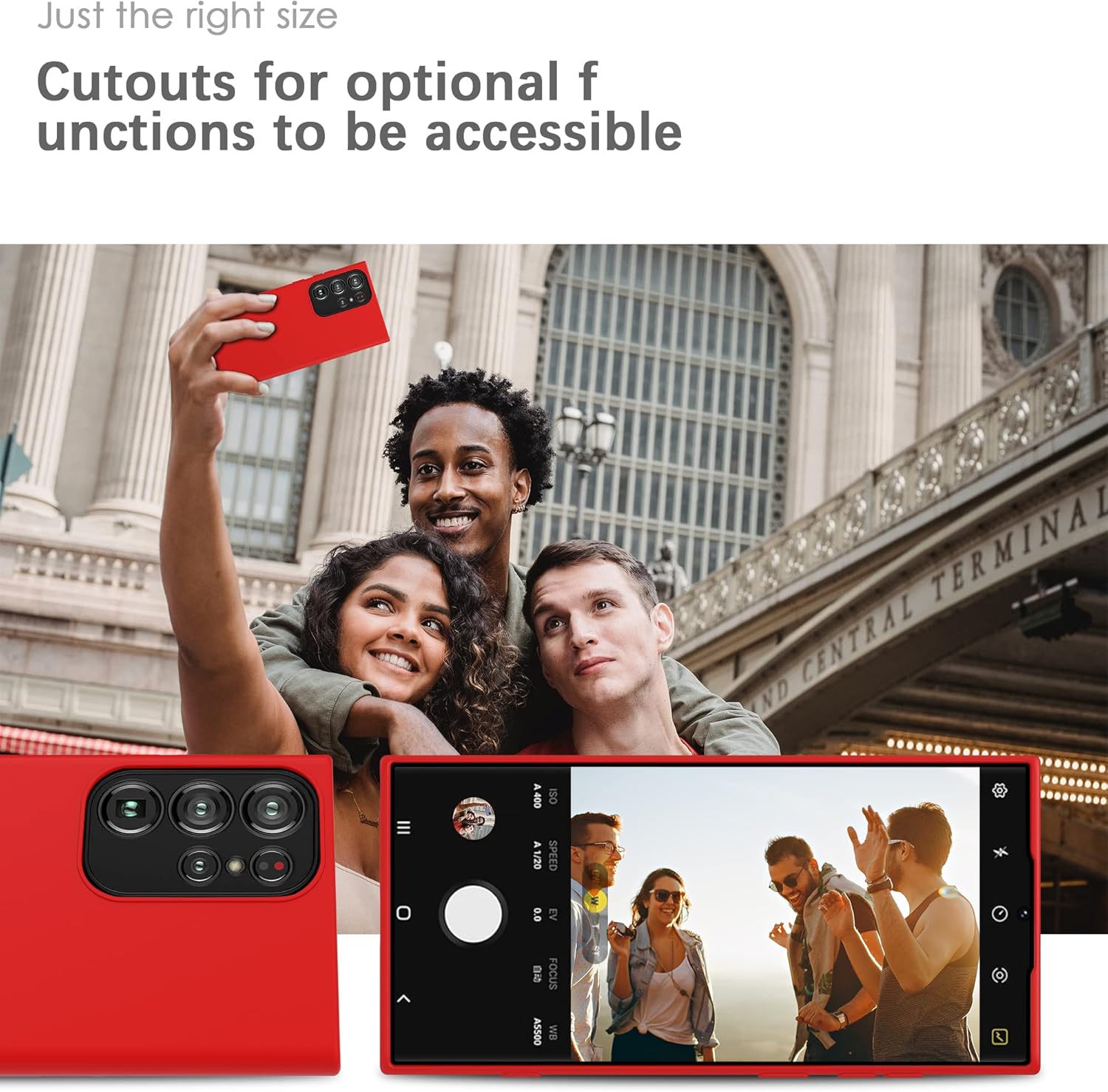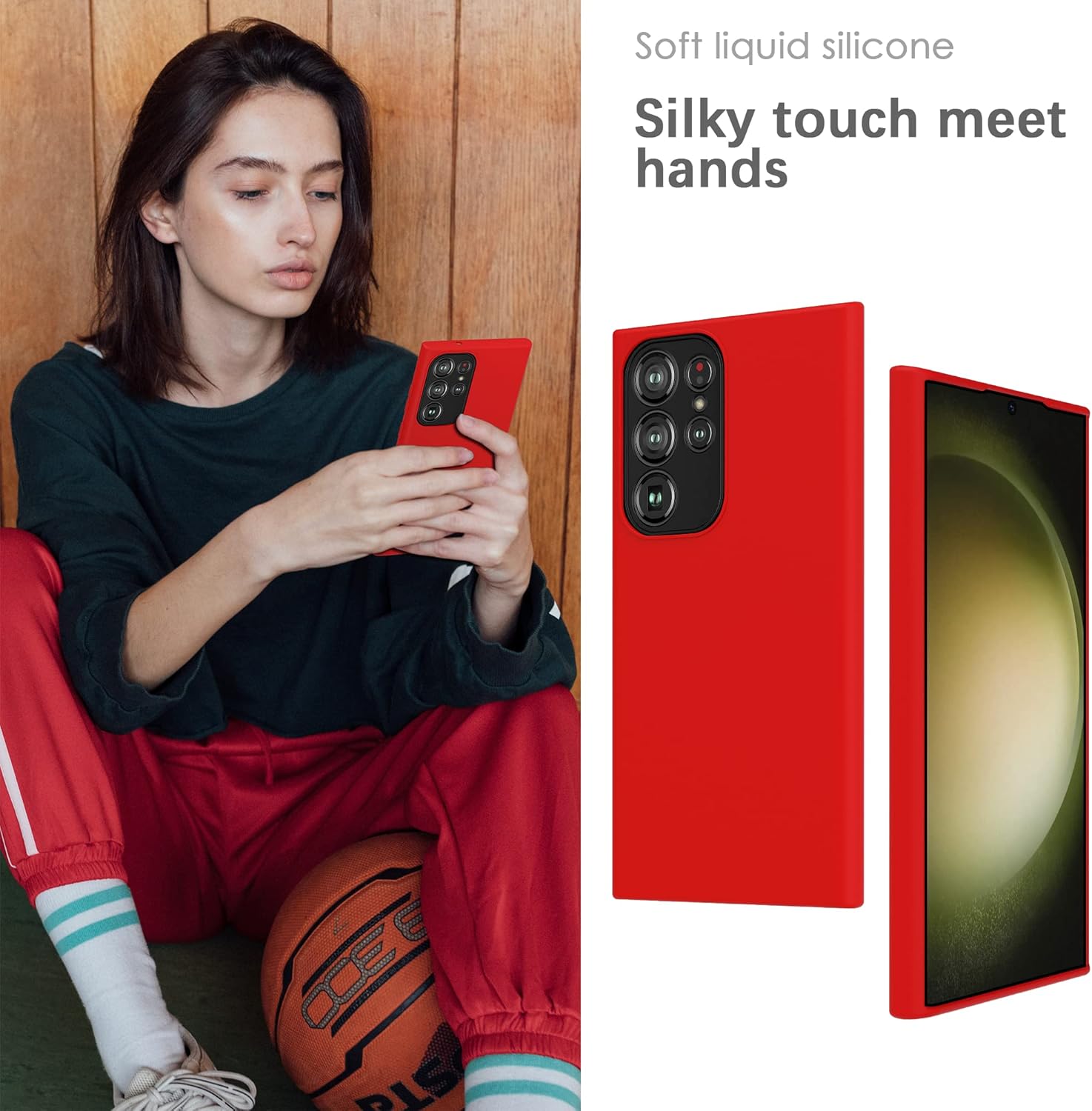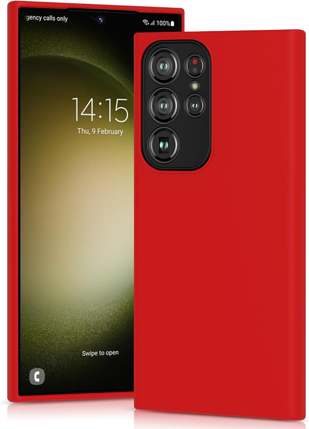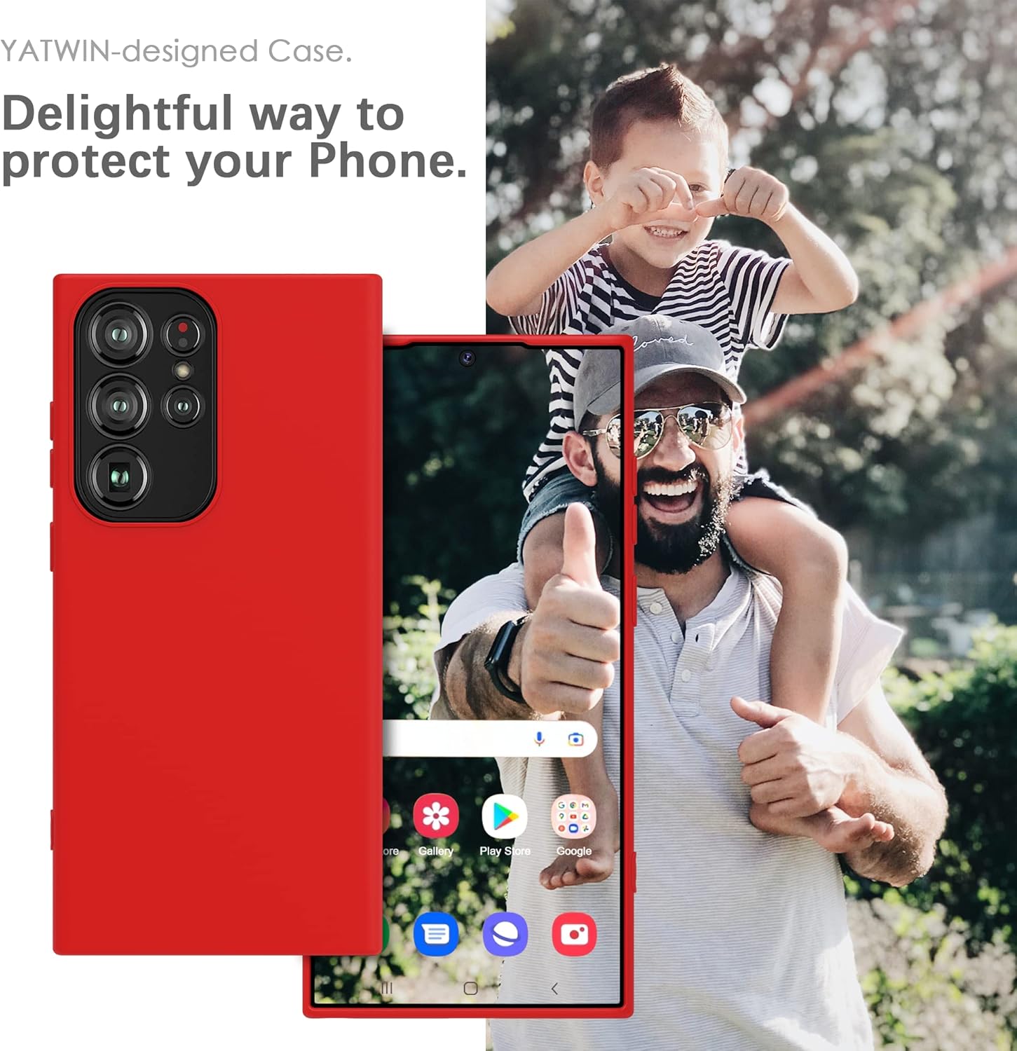 Силиконов калъф YATWIN за Samsung Galaxy S23 Ultra, Soft Touch, Удароустойчив, Прахоустойчив, Защитен калъф за цялото тяло, Червен