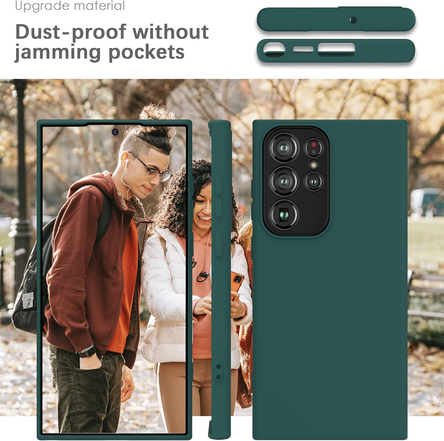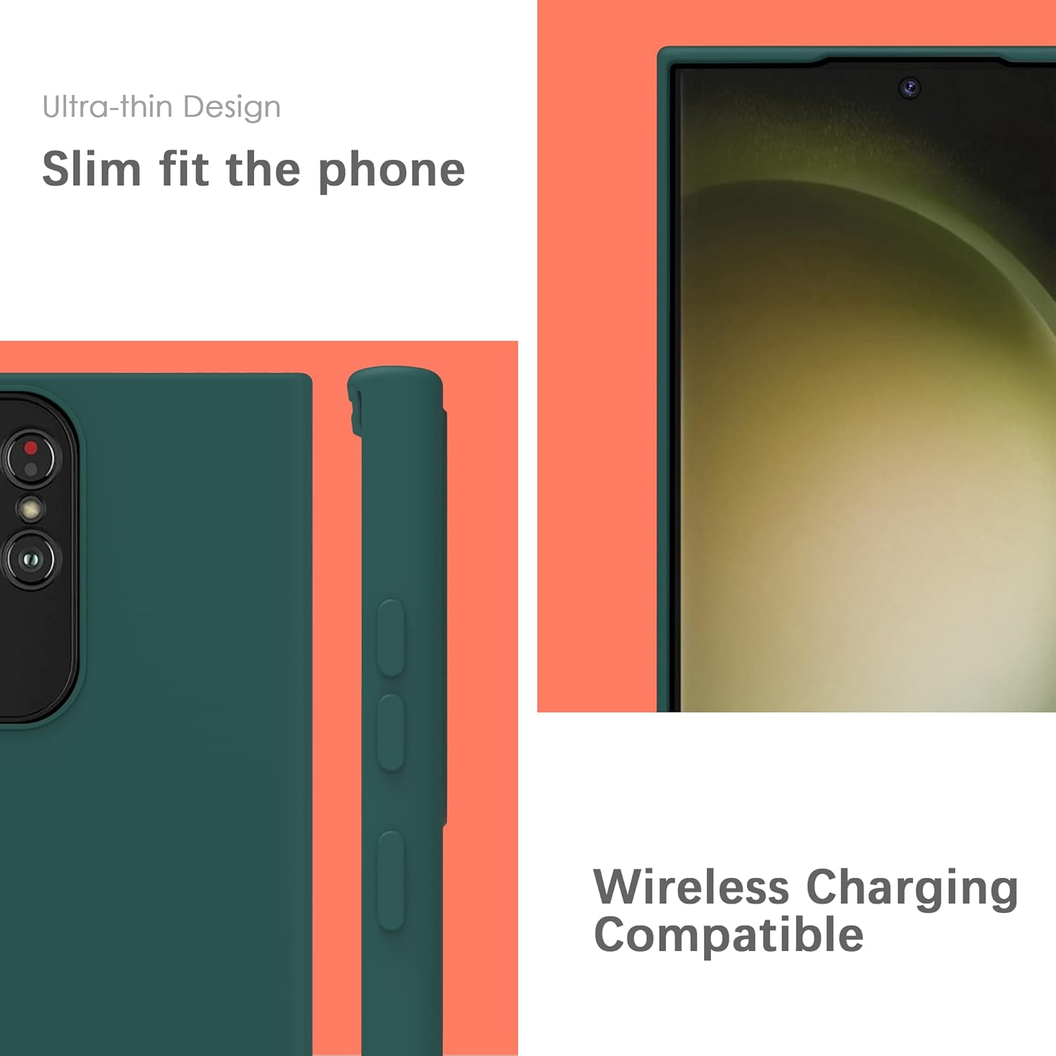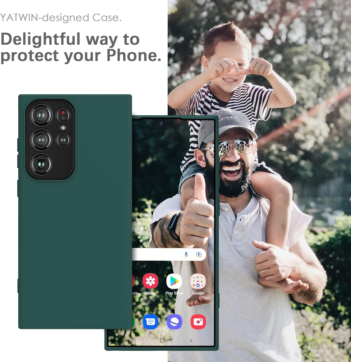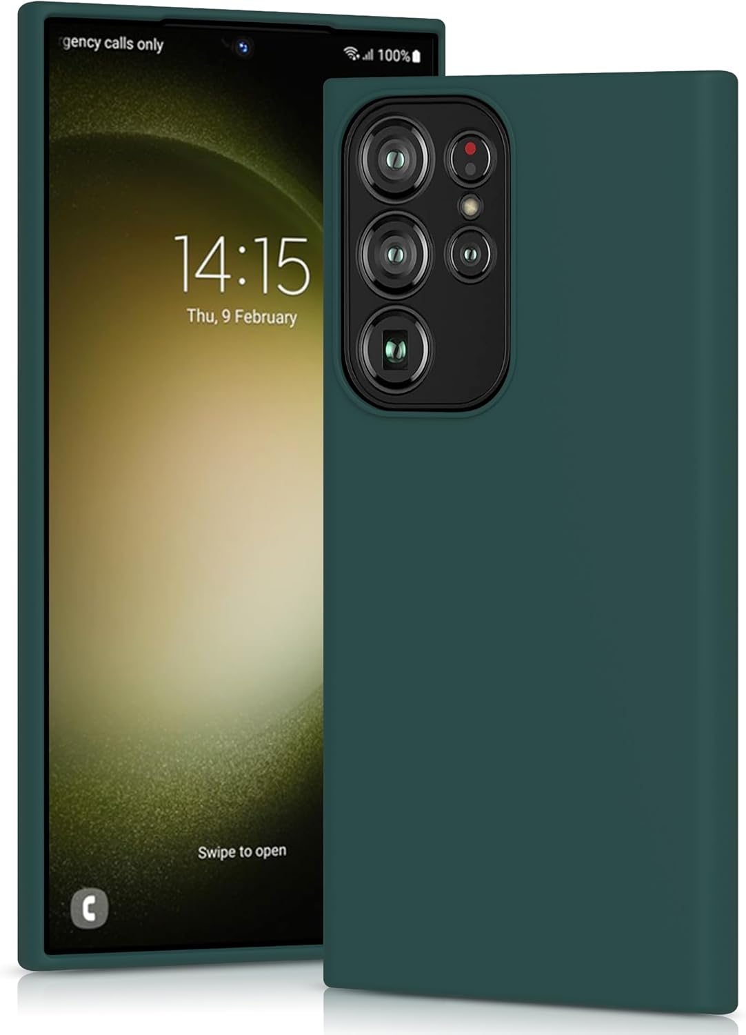 Силиконов калъф YATWIN за Samsung Galaxy S23 Ultra, Soft Touch, Удароустойчив, Прахоустойчив, Защитен калъф за цялото тяло, Тъмнозелен