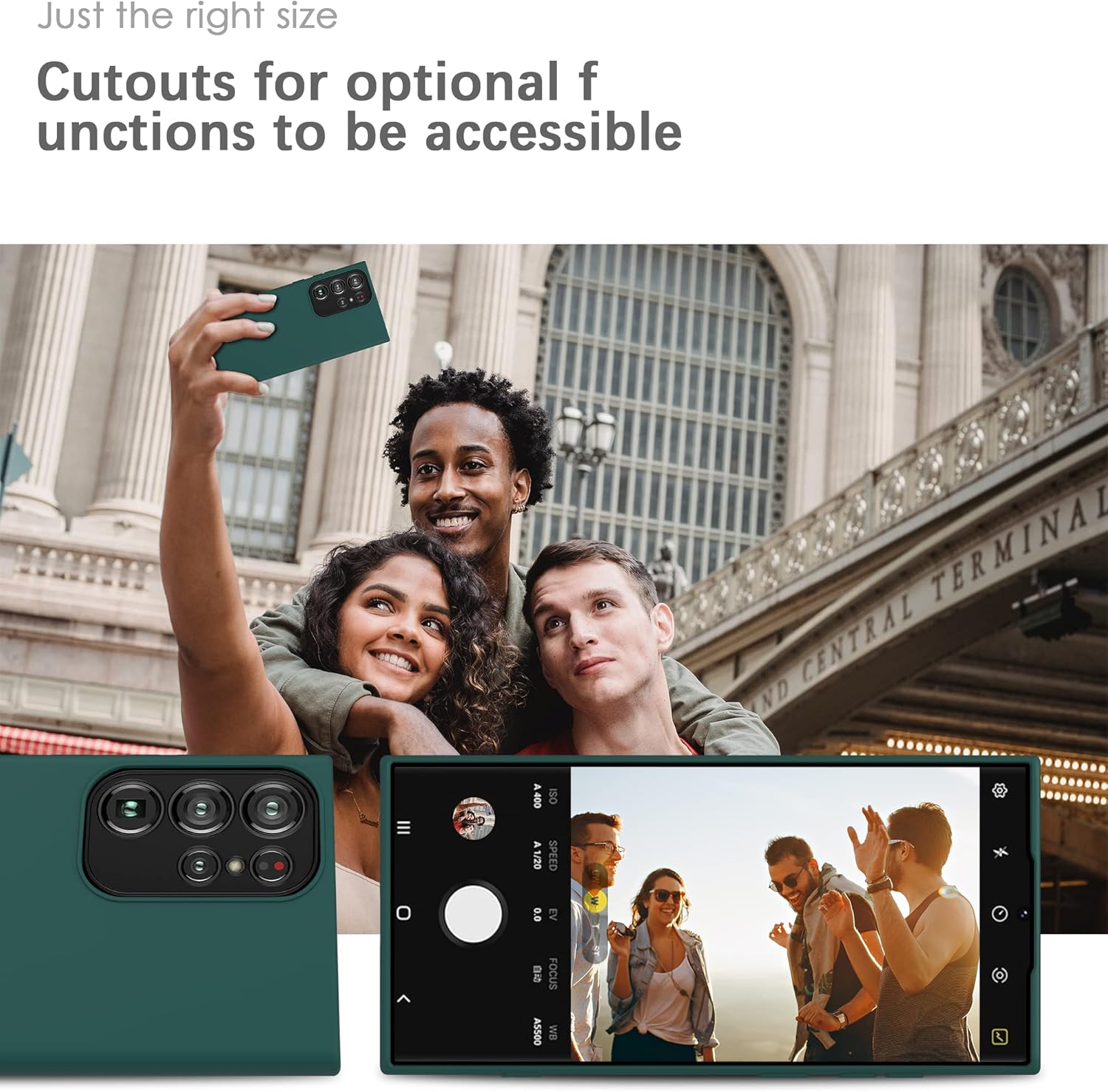 • Перфектно подравнените изрези улесняват премахването/включването на кабела за зареждане, не пречат на камерата и запазват качеството на звука на високоговорителите.