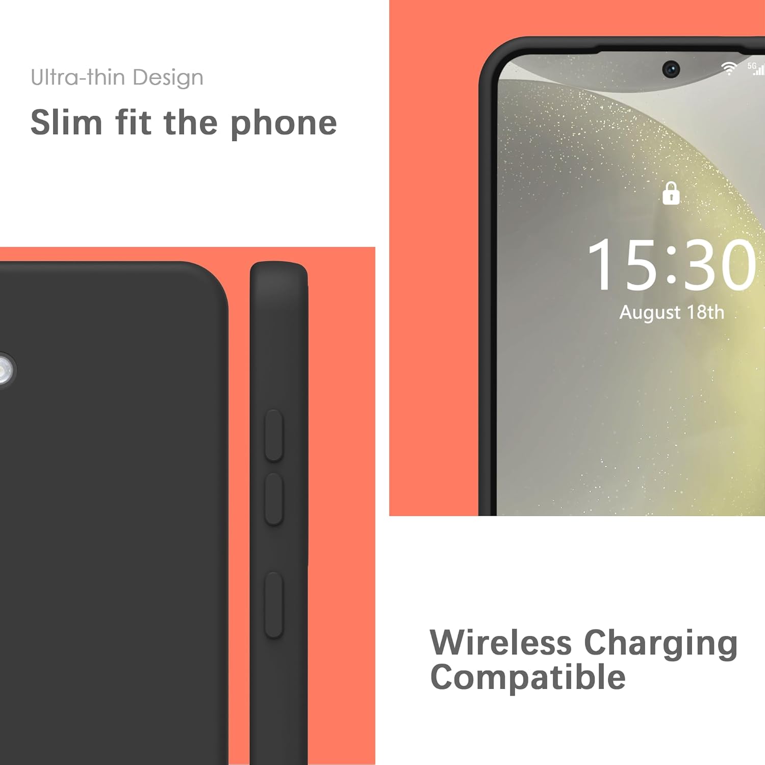 Силиконов калъф YATWIN за Samsung Galaxy S24, мек на допир, удароустойчив, прахоустойчив, защитен калъф за цялото тяло, черен
