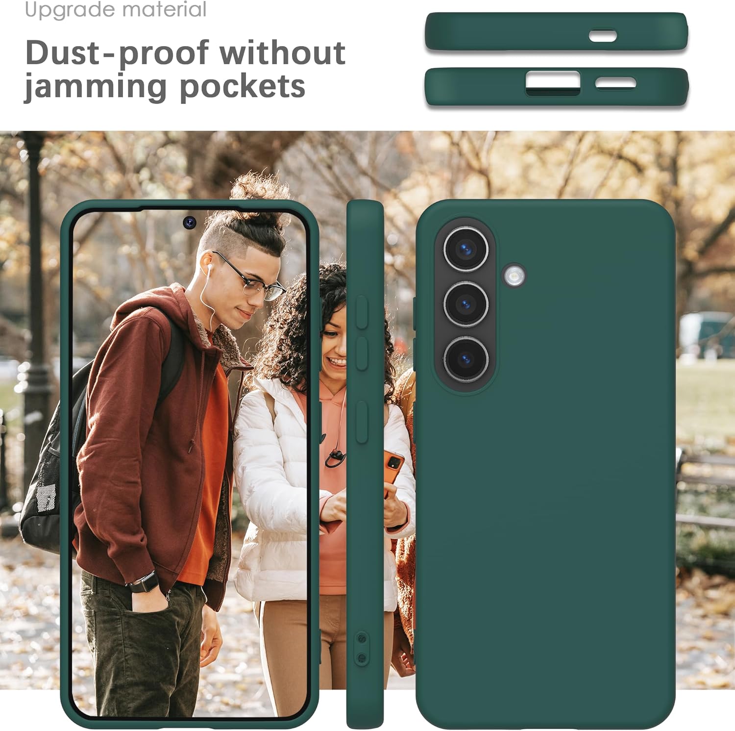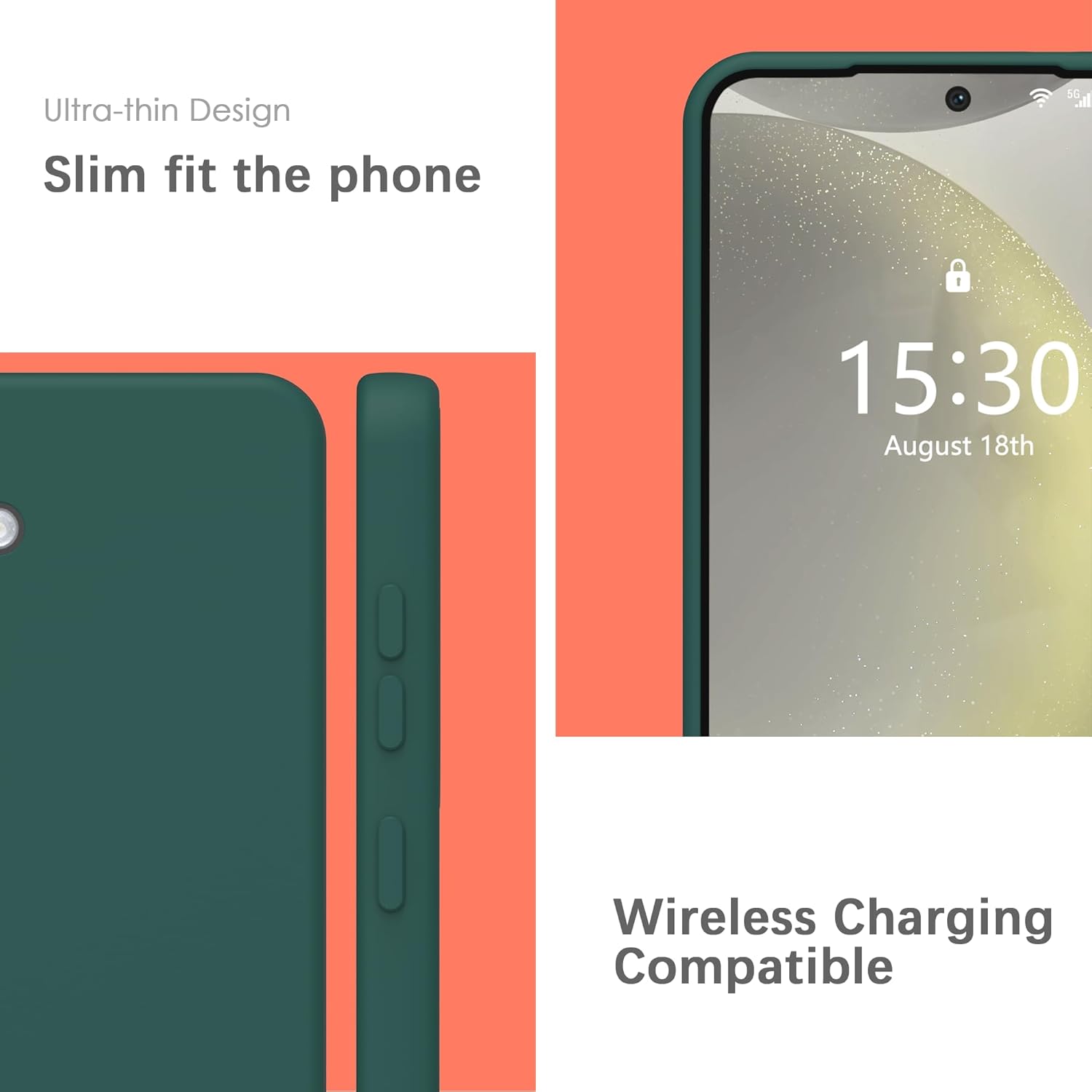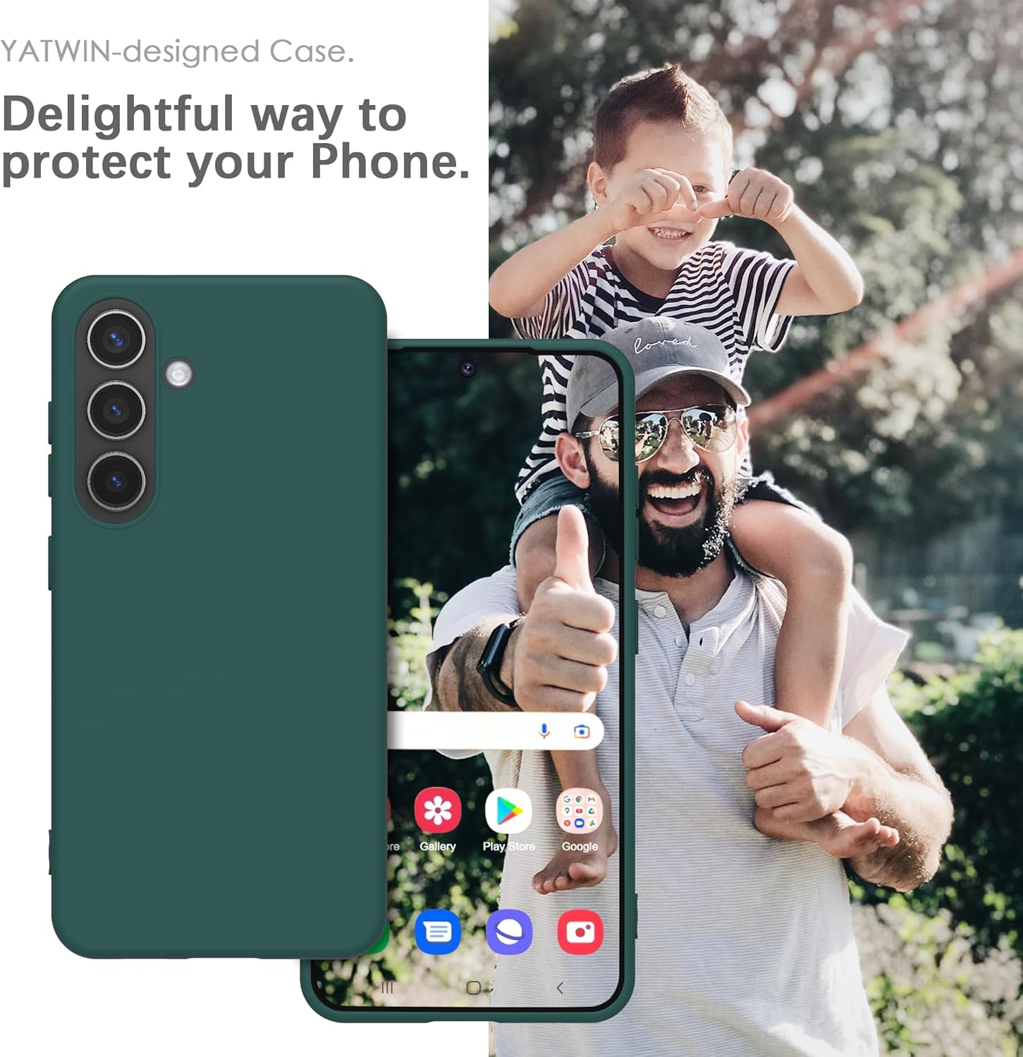Силиконов калъф YATWIN за Samsung Galaxy S24, мек на допир, удароустойчив, прахоустойчив, защитен калъф за цялото тяло, зелен
